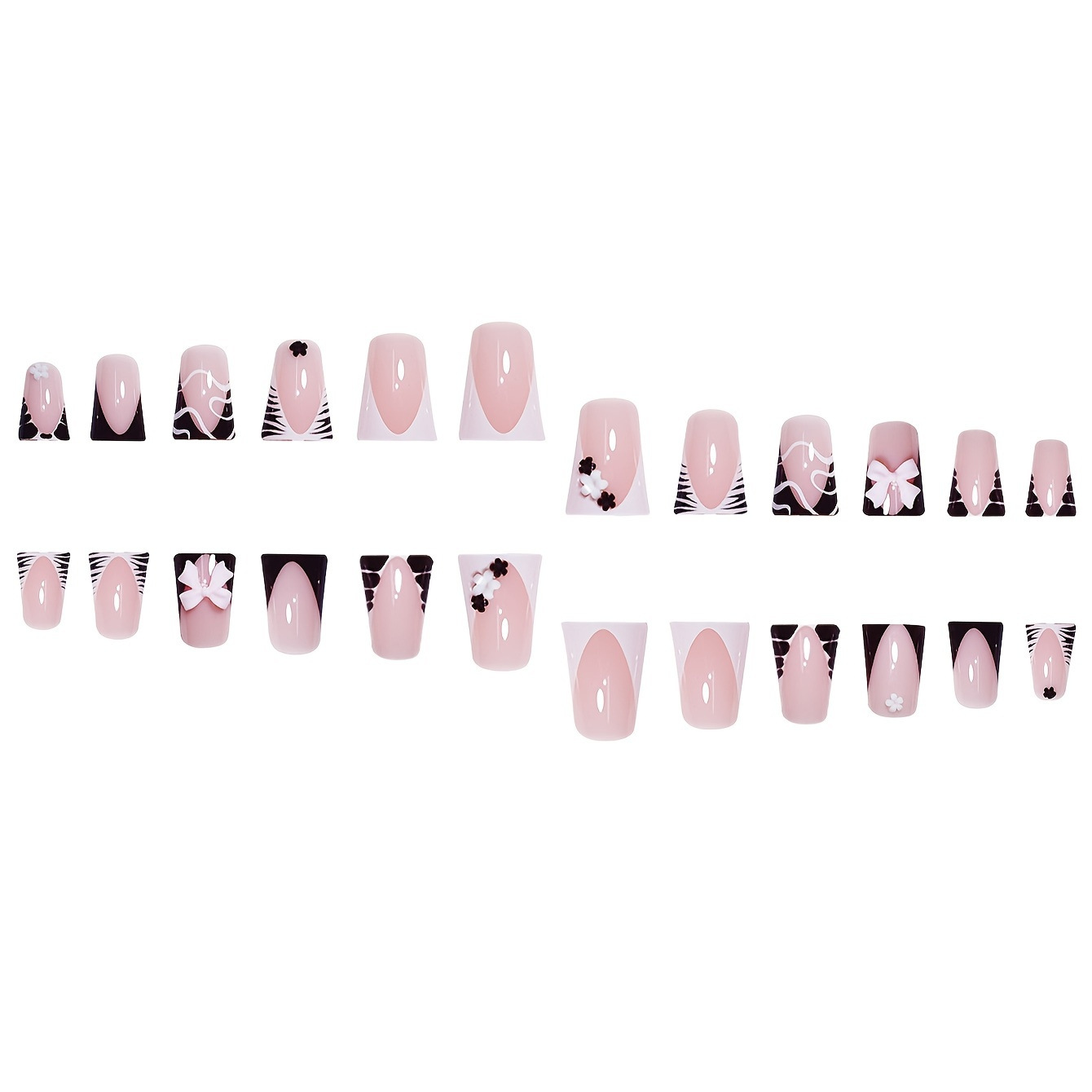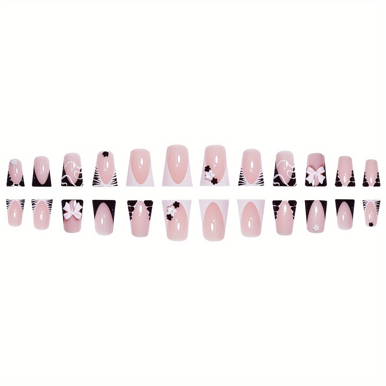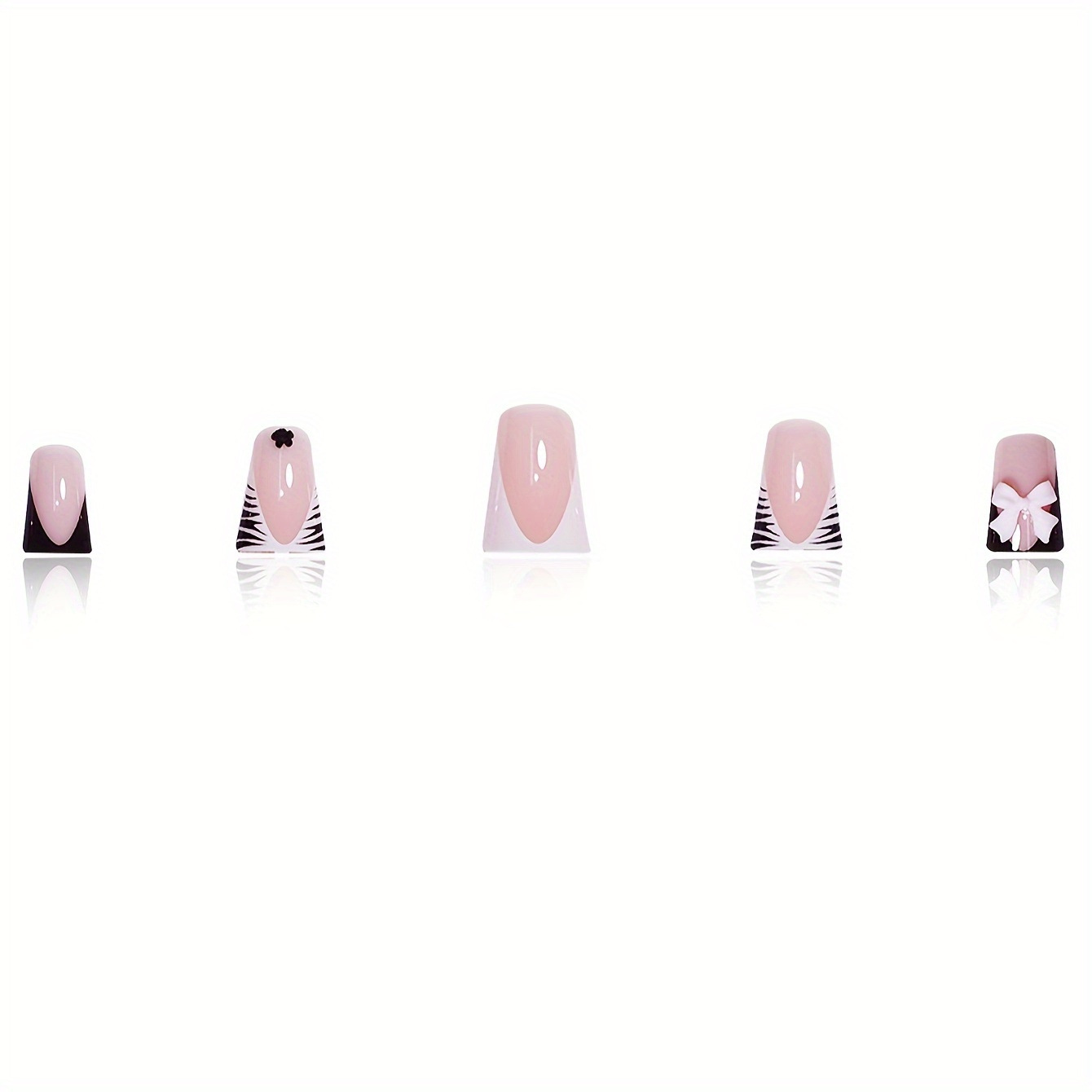 跨境热售鸭嘴款假指甲甜美蝴蝶结花朵条纹设计青春甜美穿戴甲批发