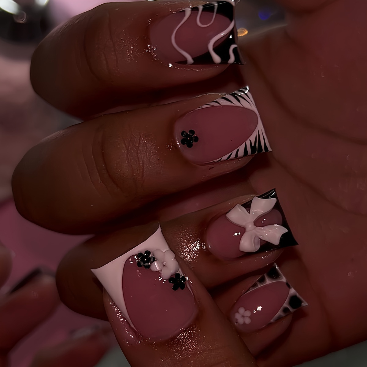 跨境热售鸭嘴款假指甲甜美蝴蝶结花朵条纹设计青春甜美穿戴甲批发 English | 投诉
