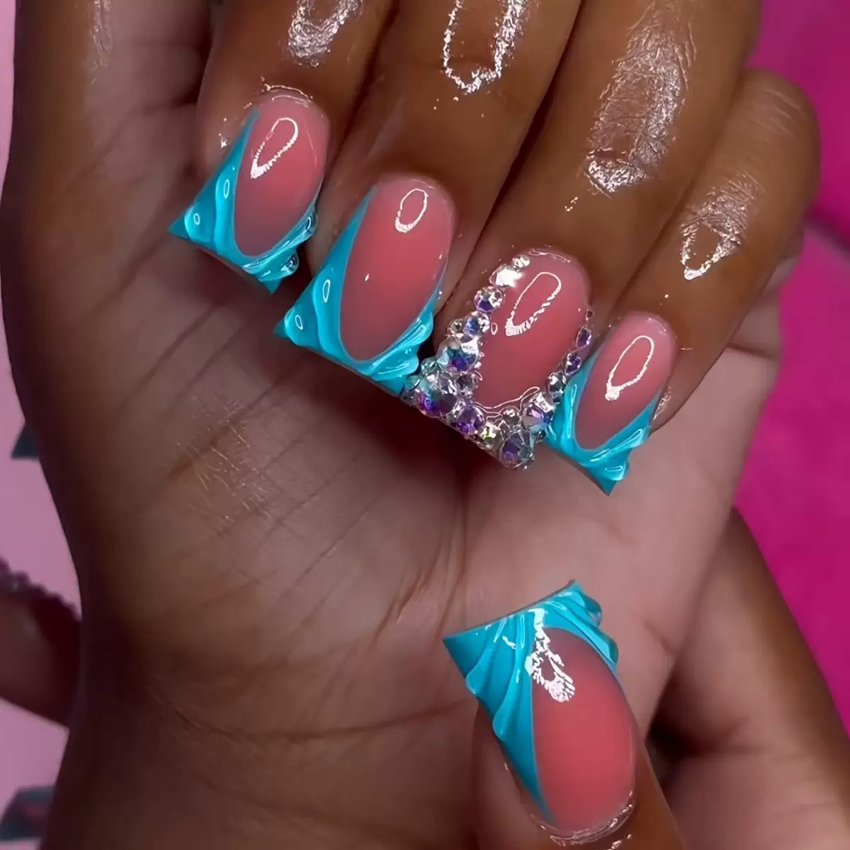 跨境热售鸭嘴型假指甲3D水波纹爆闪碎钻设计可拆卸假指甲成品批发 English | 投诉
