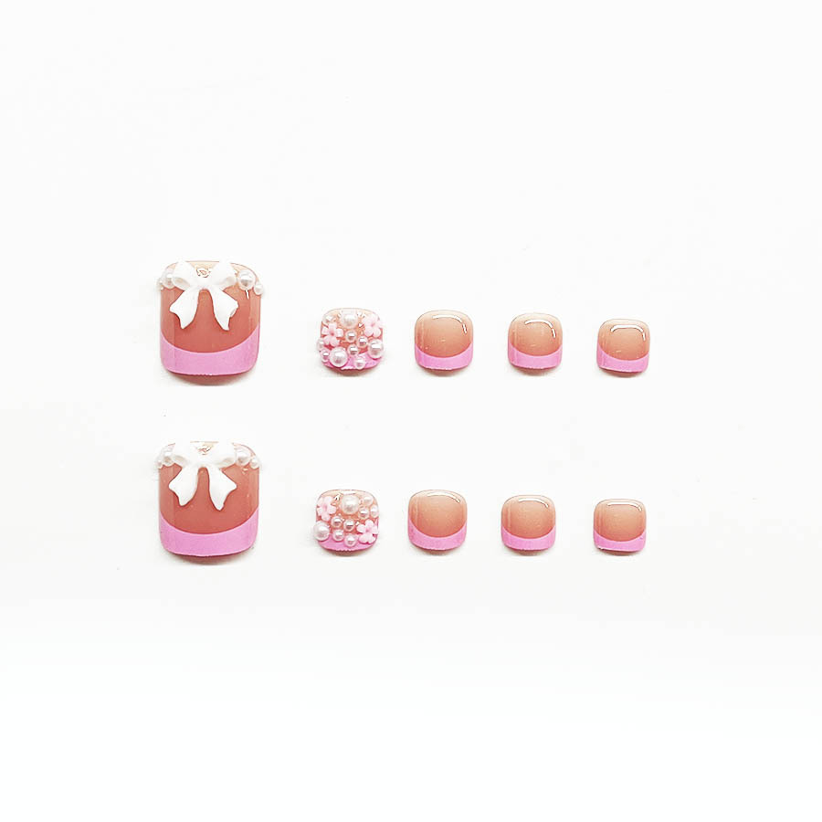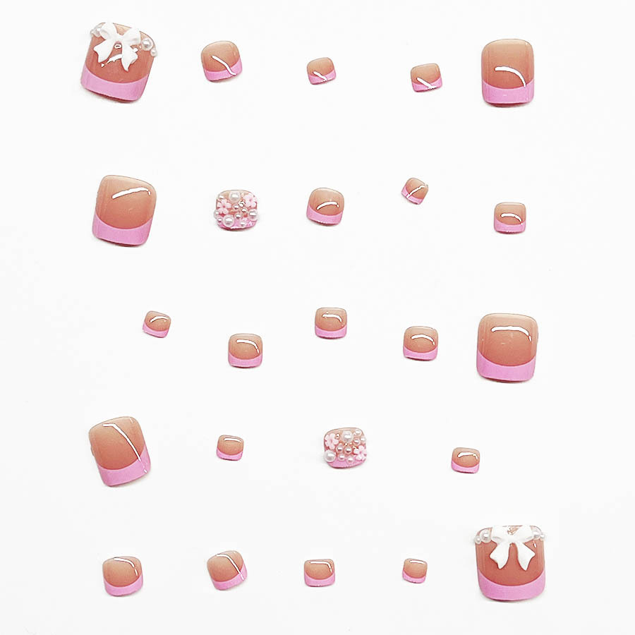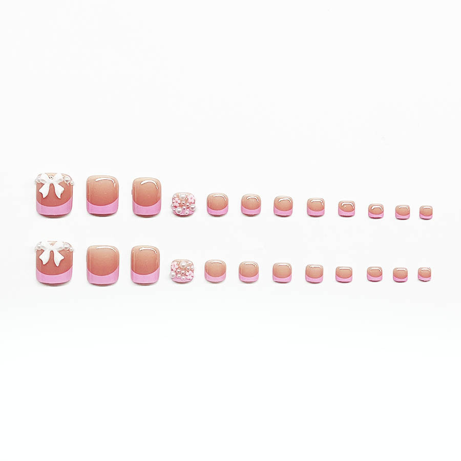 跨境热销简约时尚粉色法式美甲白色蝴蝶结可拆卸穿戴甲假指甲甲片