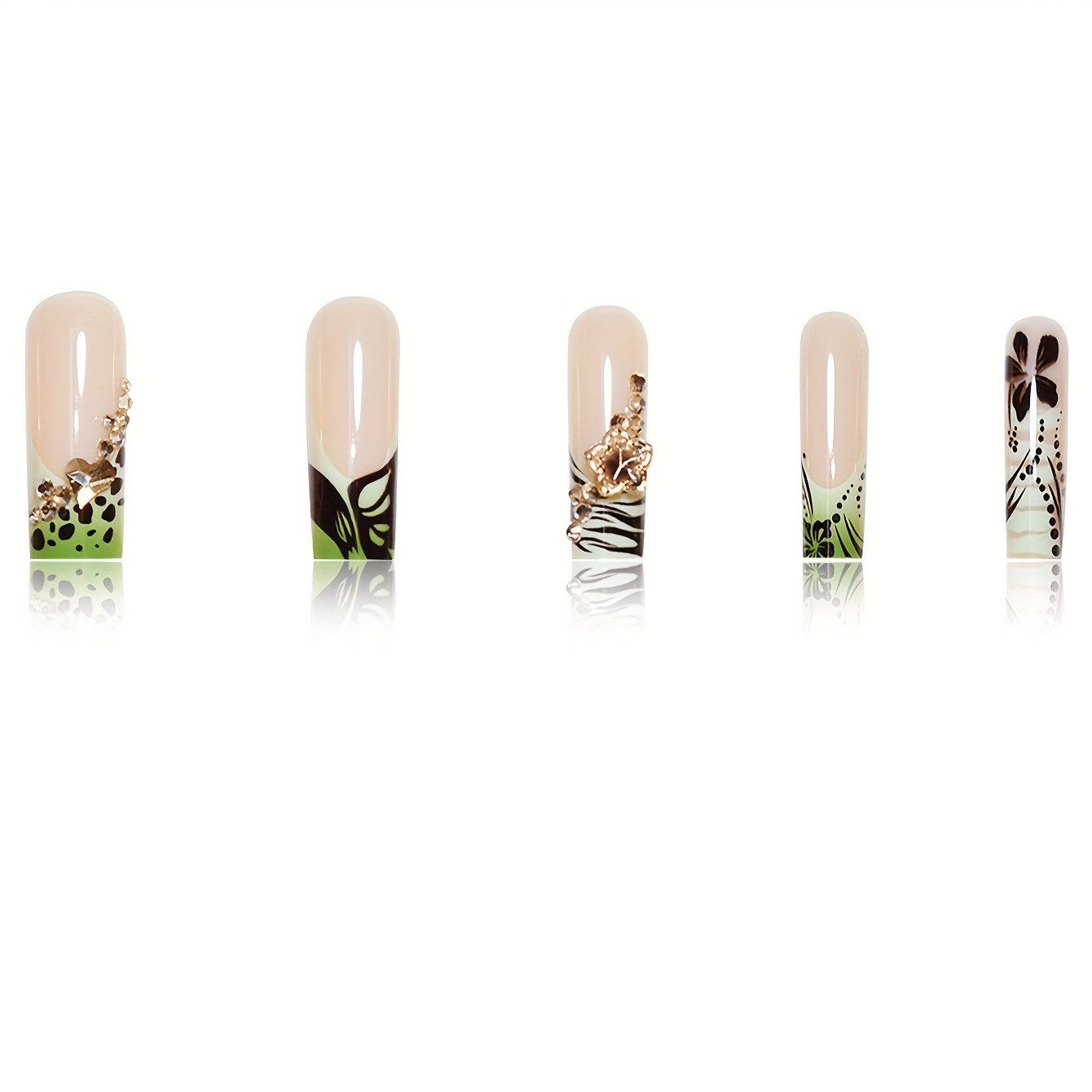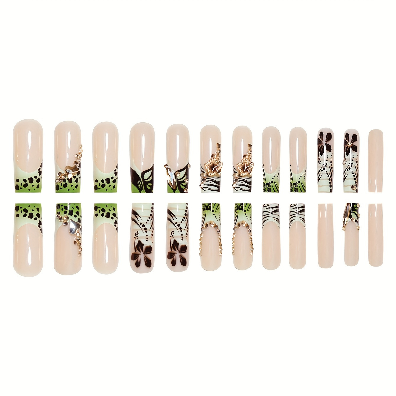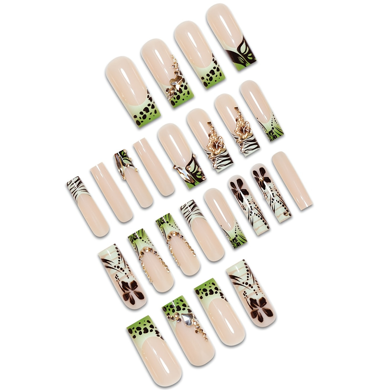 跨境热销方形假指甲优雅简约蝴蝶时尚高级条纹点缀穿戴甲成品批发 English | 投诉