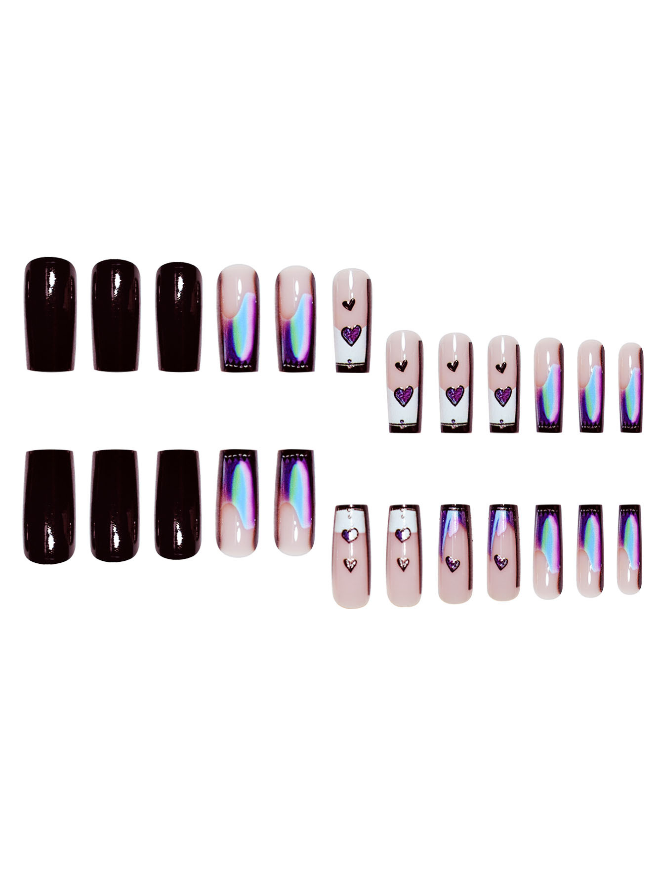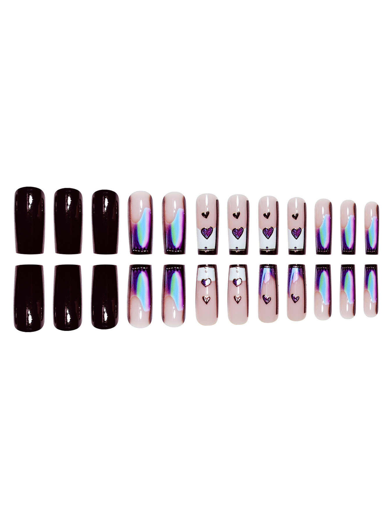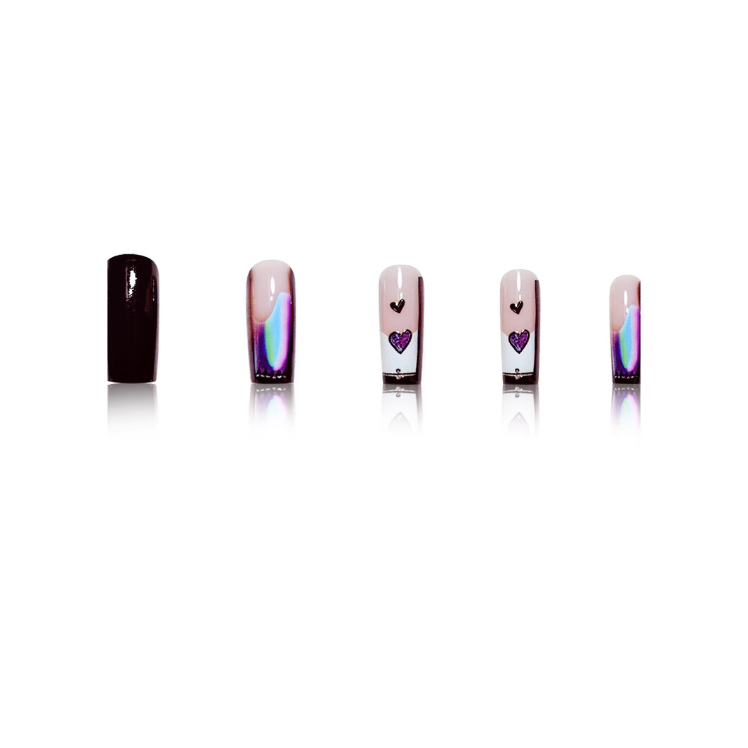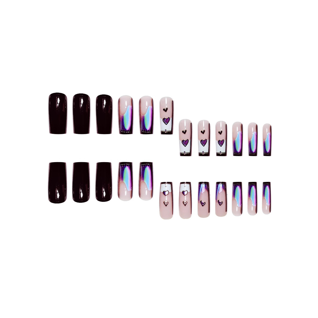 跨境热售方形假指甲黑色纯欲风爱心渐变甲片可拆卸假指甲成品批发 English | 投诉