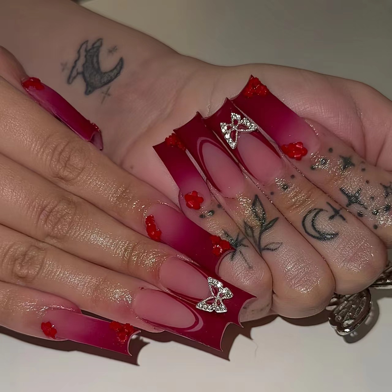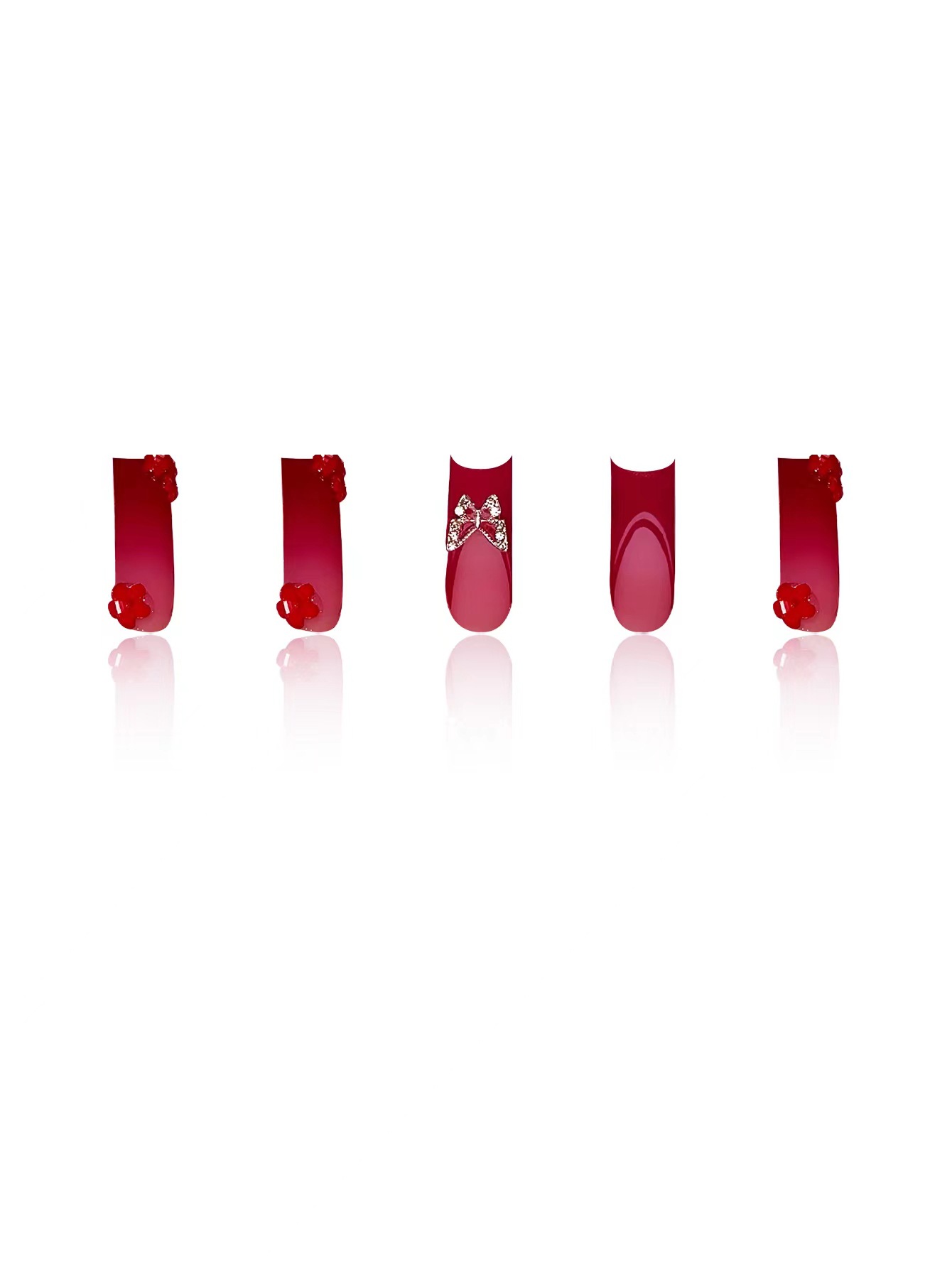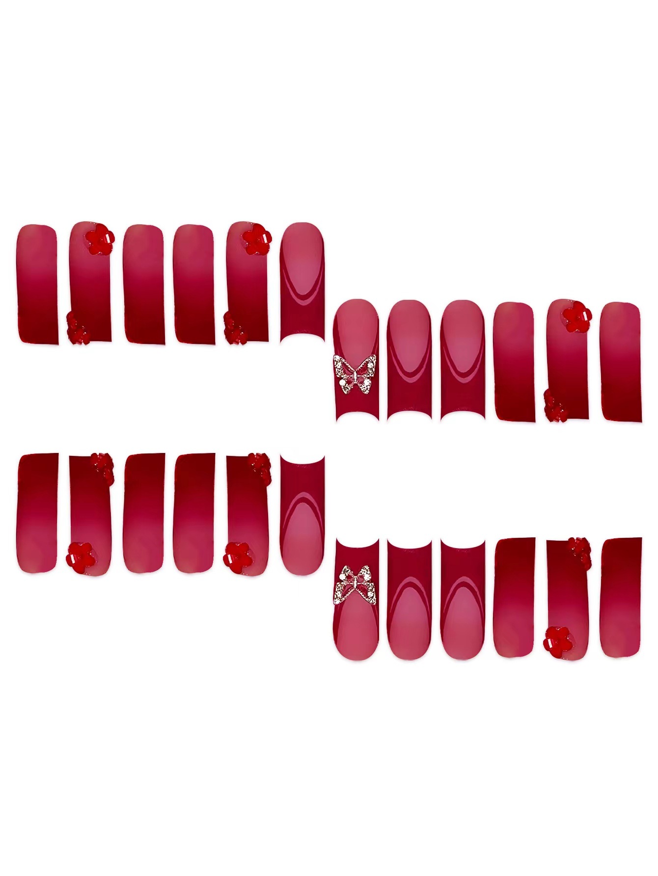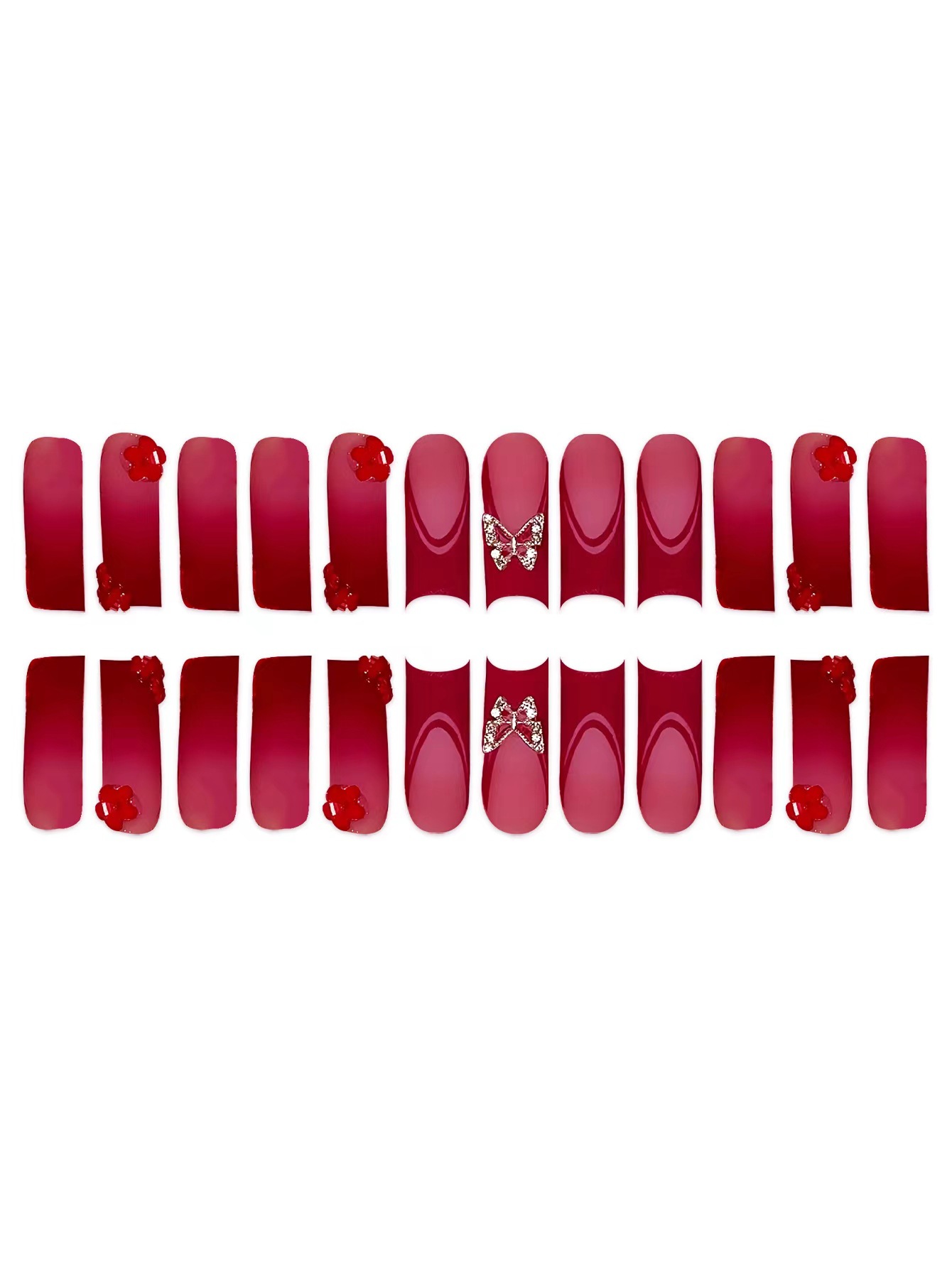 跨境热售欧美血红色法式长水管蝴蝶配饰钻饰可拆卸穿戴甲成品批发 English | 投诉