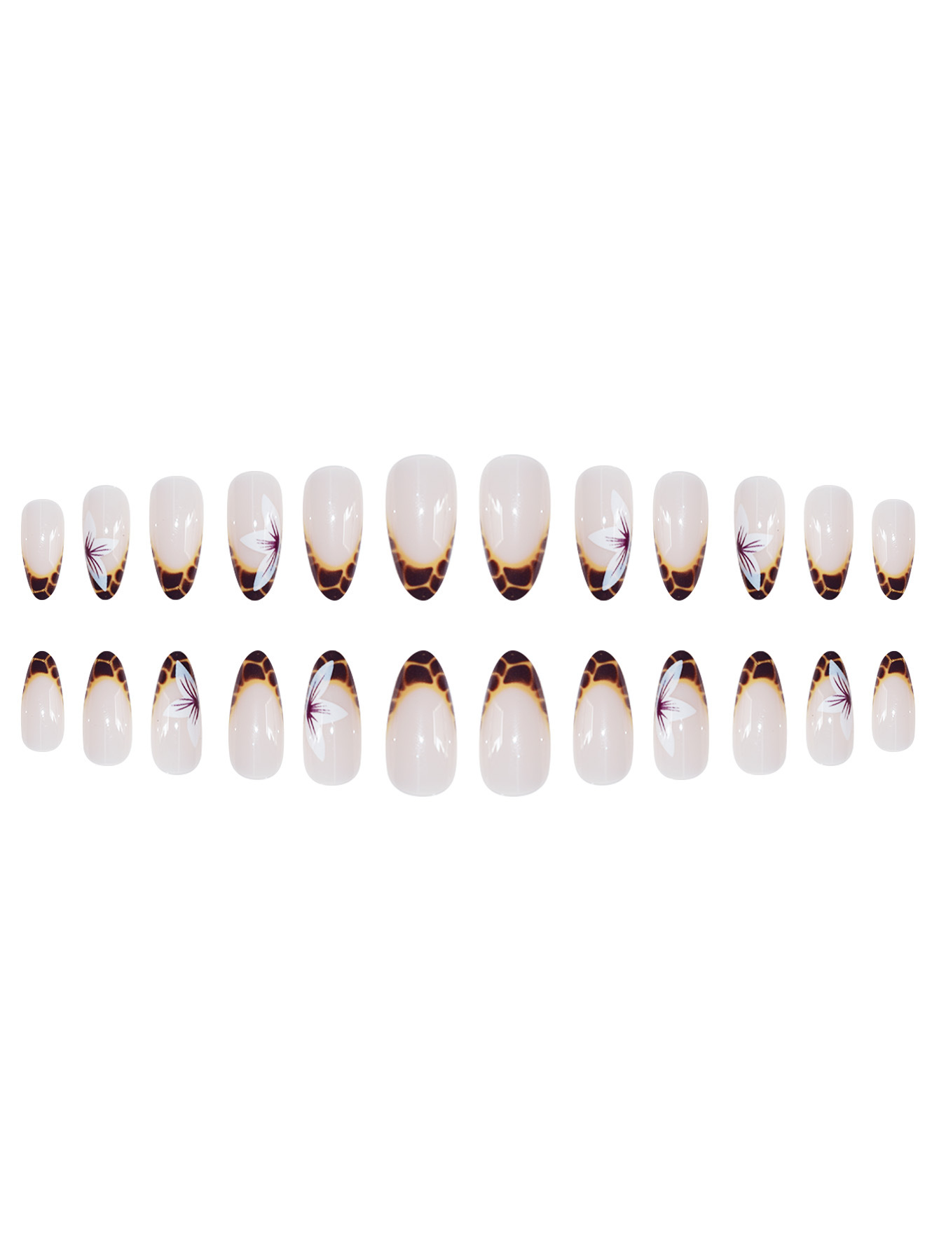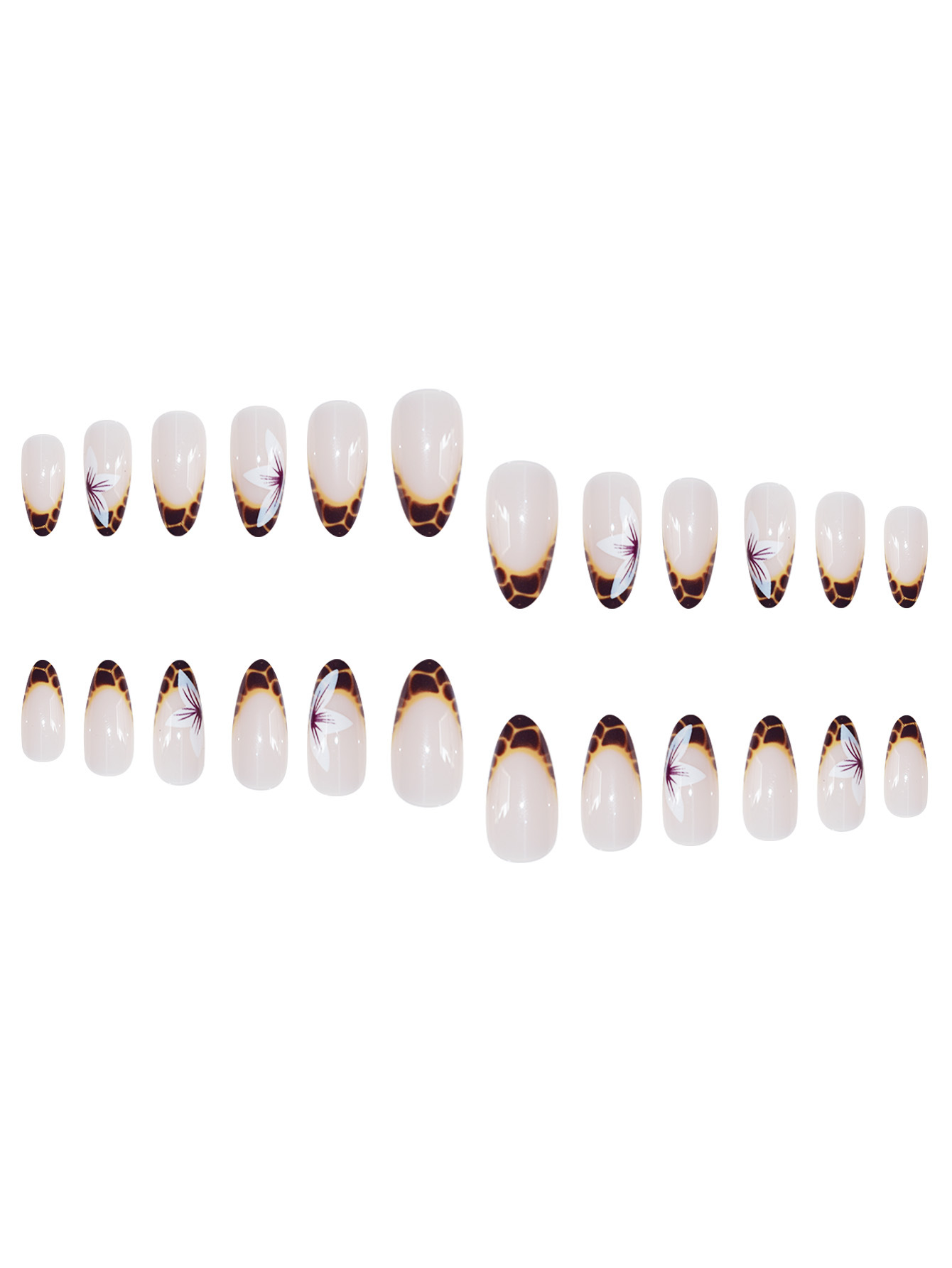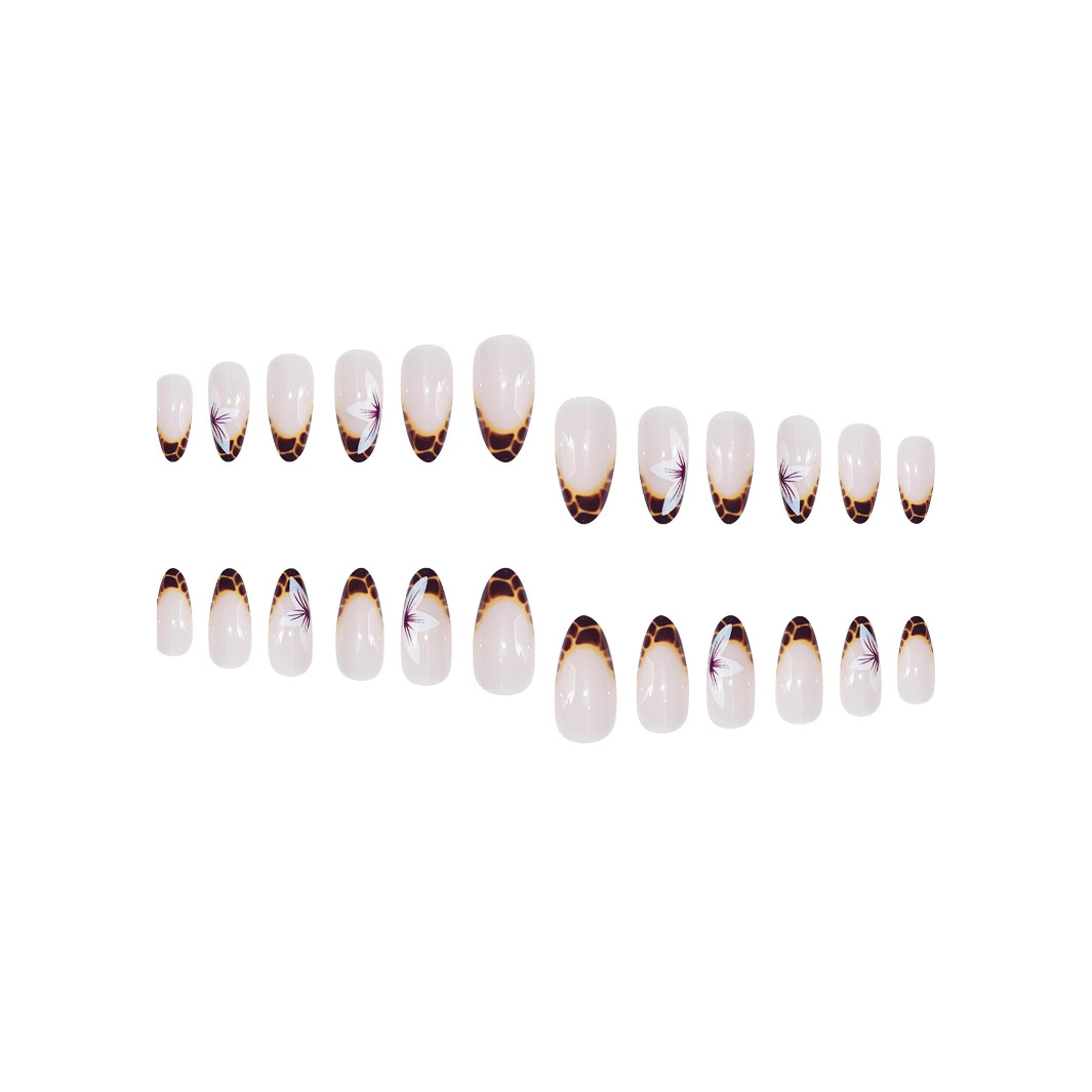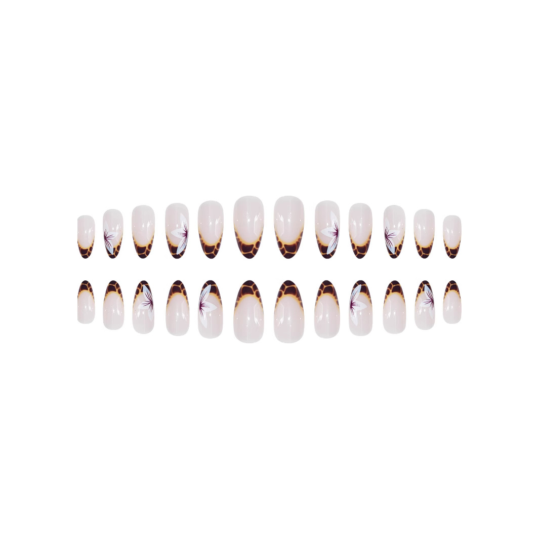 跨境热销欧美穿戴甲甜酷花朵豹纹可拆卸杏仁型短款假指甲成品批发 English | 投诉