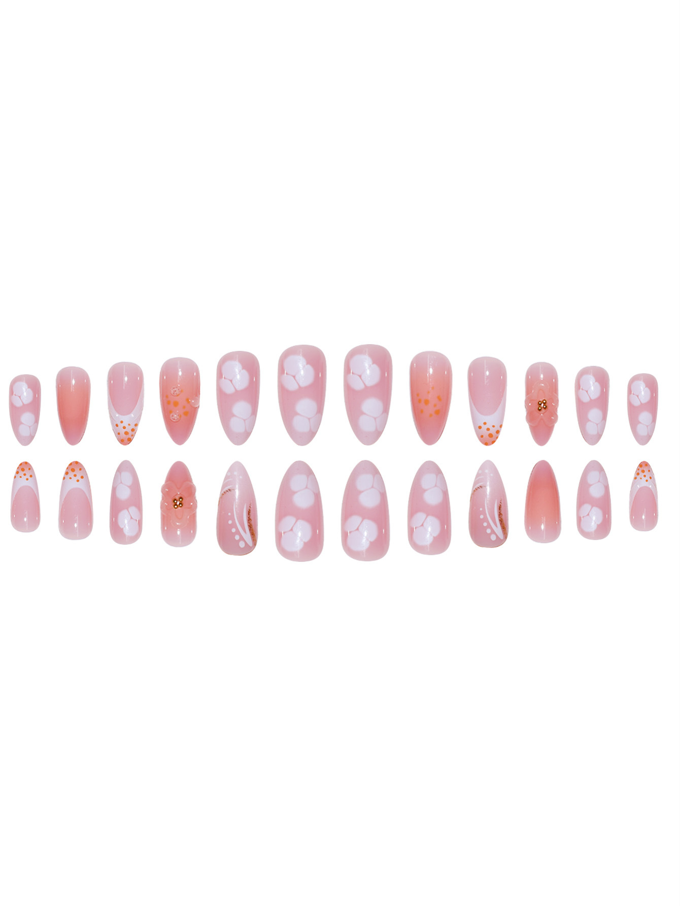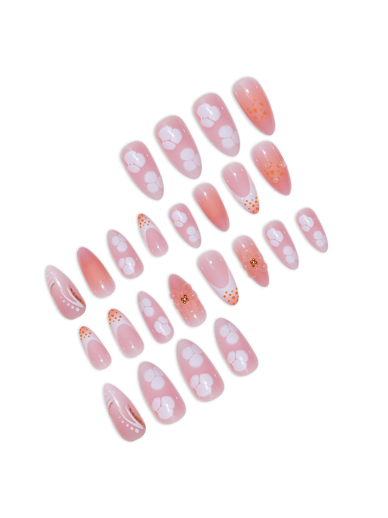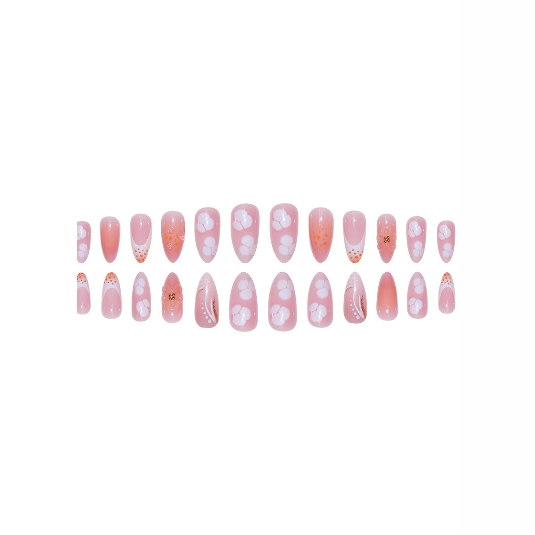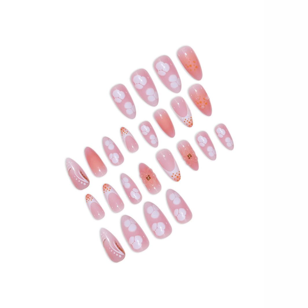 跨境热售杏仁型假指甲3D立体甜美花朵穿戴甲可拆卸假指甲成品批发
