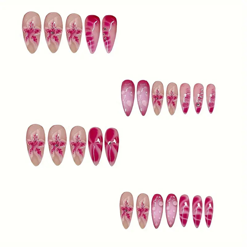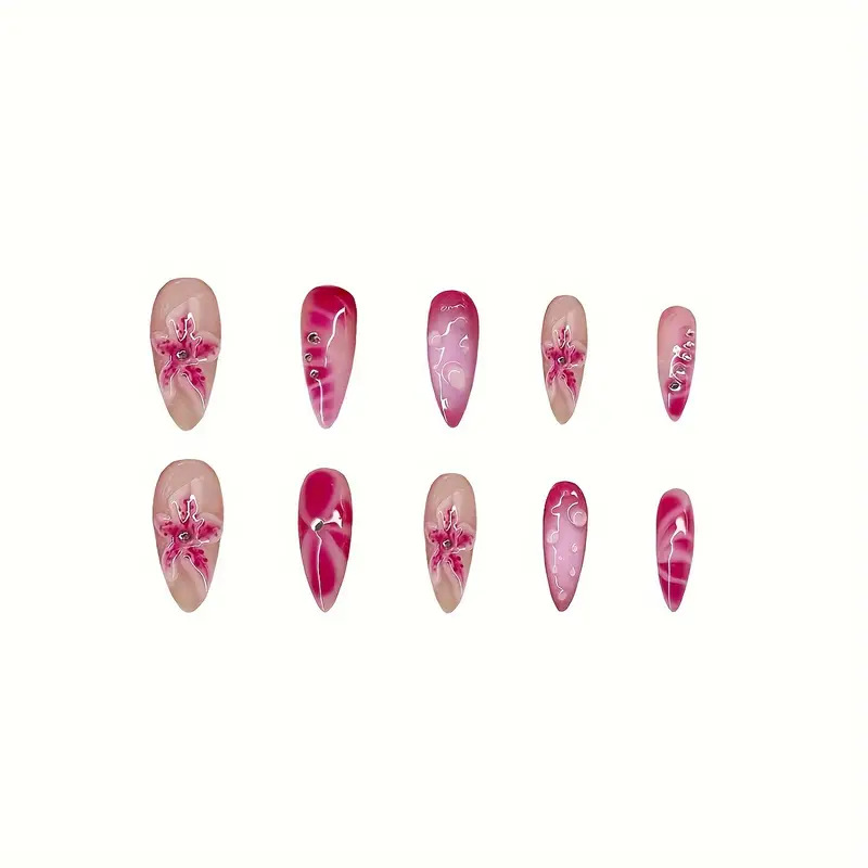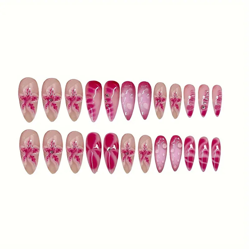跨境热售时尚杏仁型穿戴甲时尚3D水滴甜美星星可拆卸假指甲可批发