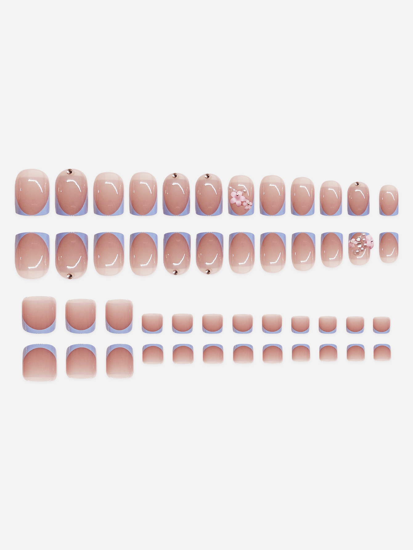 跨境热售手脚两件套法式描边甜美花朵穿戴甲可拆卸假指甲成品批发 English | 投诉