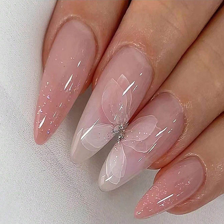 跨境热销长款杏仁甲纯欲蝴蝶爆闪假指甲美甲可拆卸穿戴甲假指甲 English | 投诉