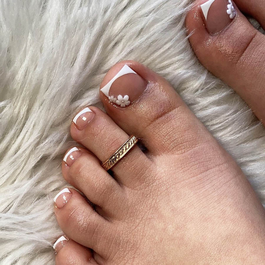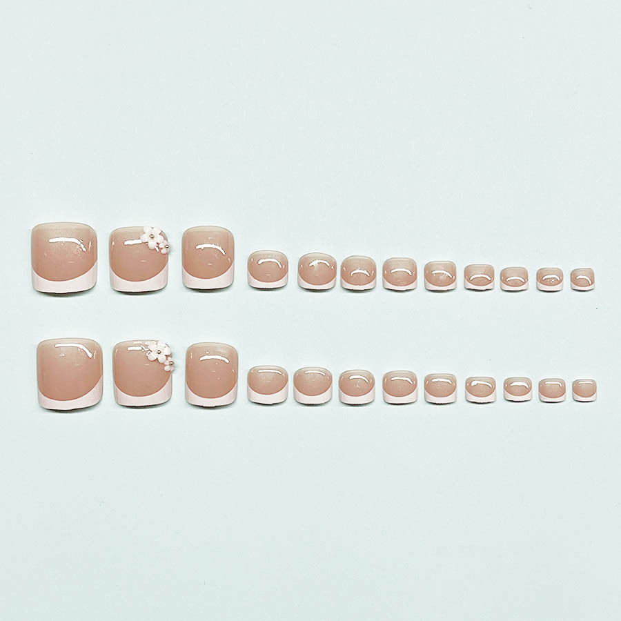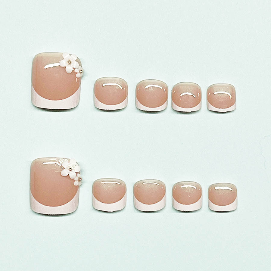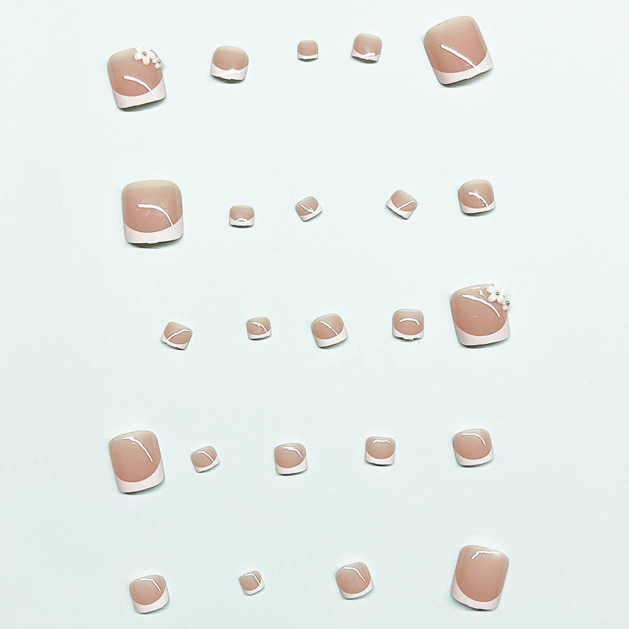 跨境时尚白法式脚甲美甲经典百搭甜美小花可拆卸穿戴甲假指甲甲片