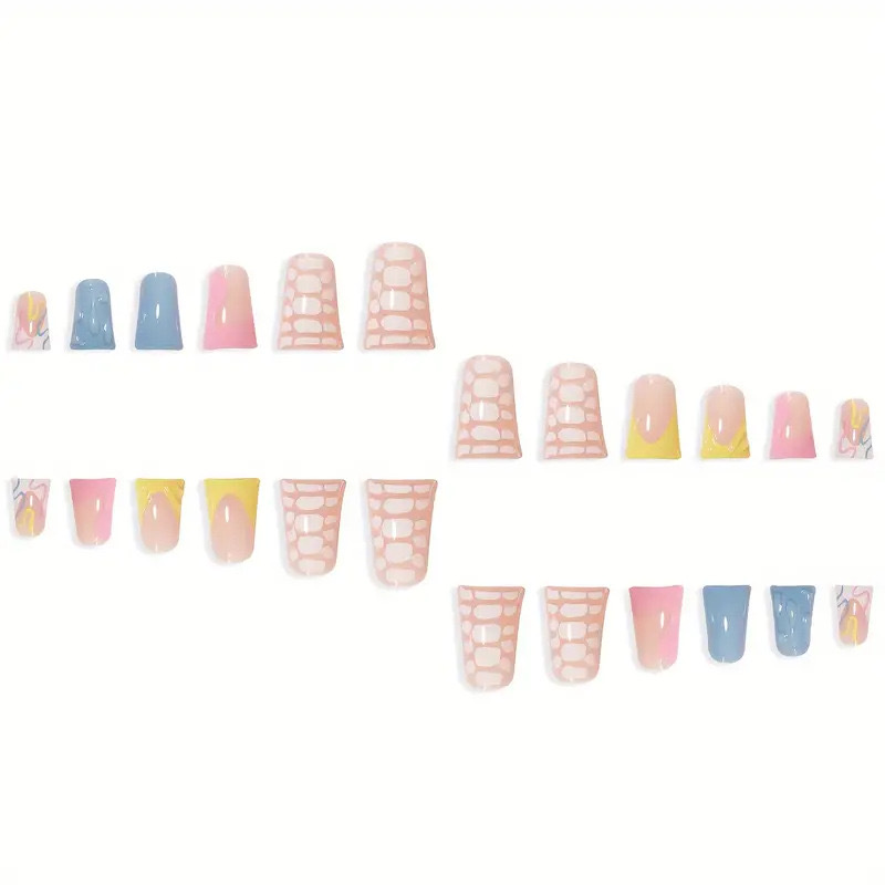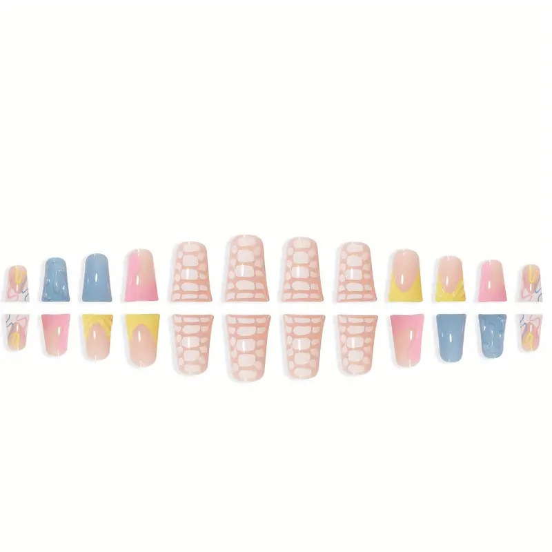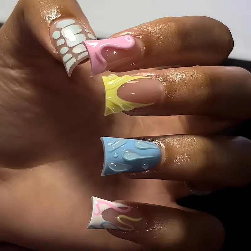 跨境热售鸭嘴型假指甲3D立体水滴大理石彩色条纹穿戴甲成品批发 English | 投诉
