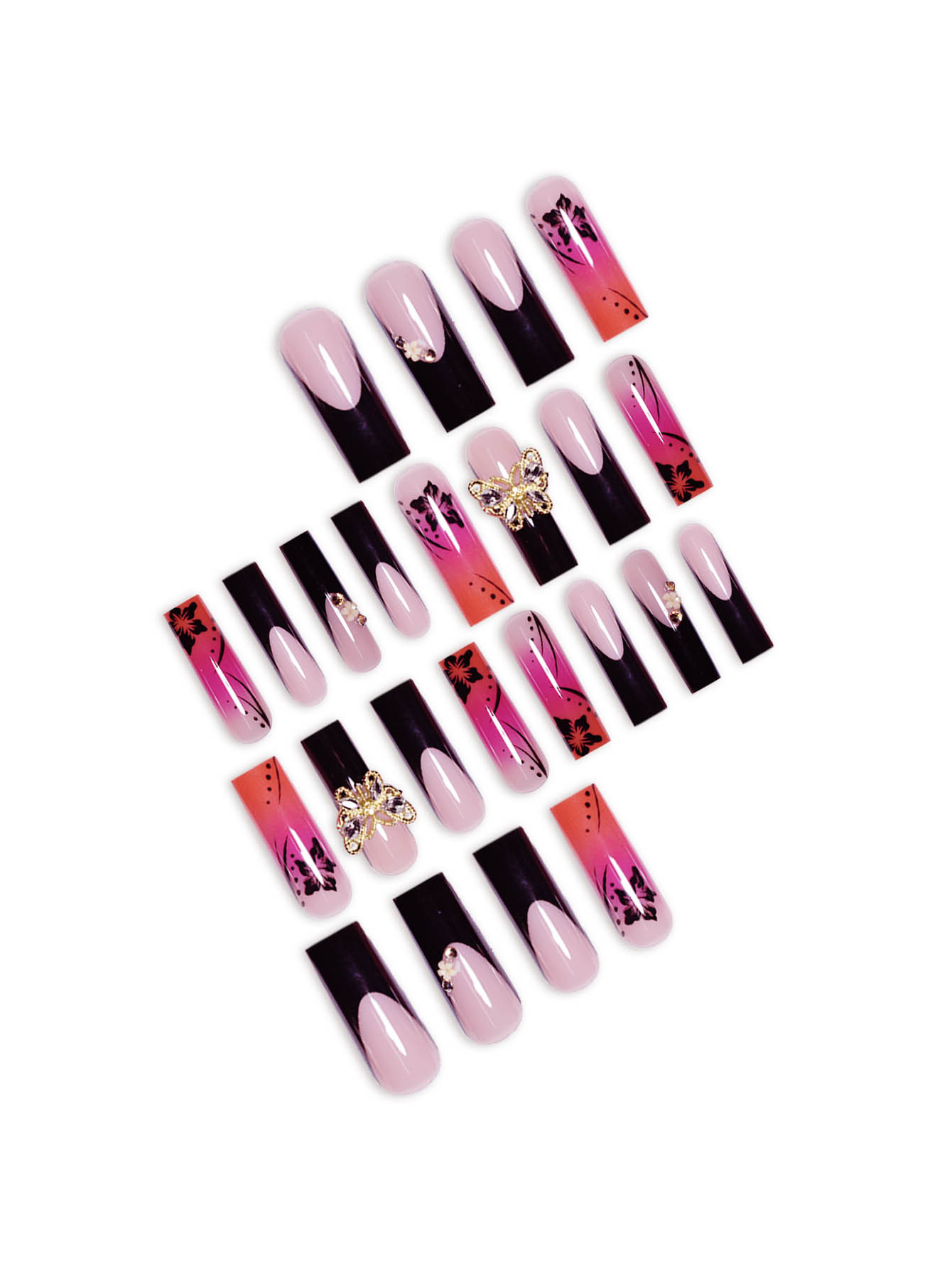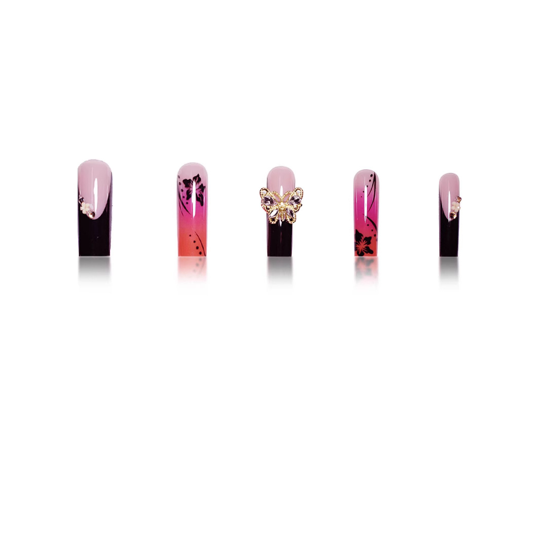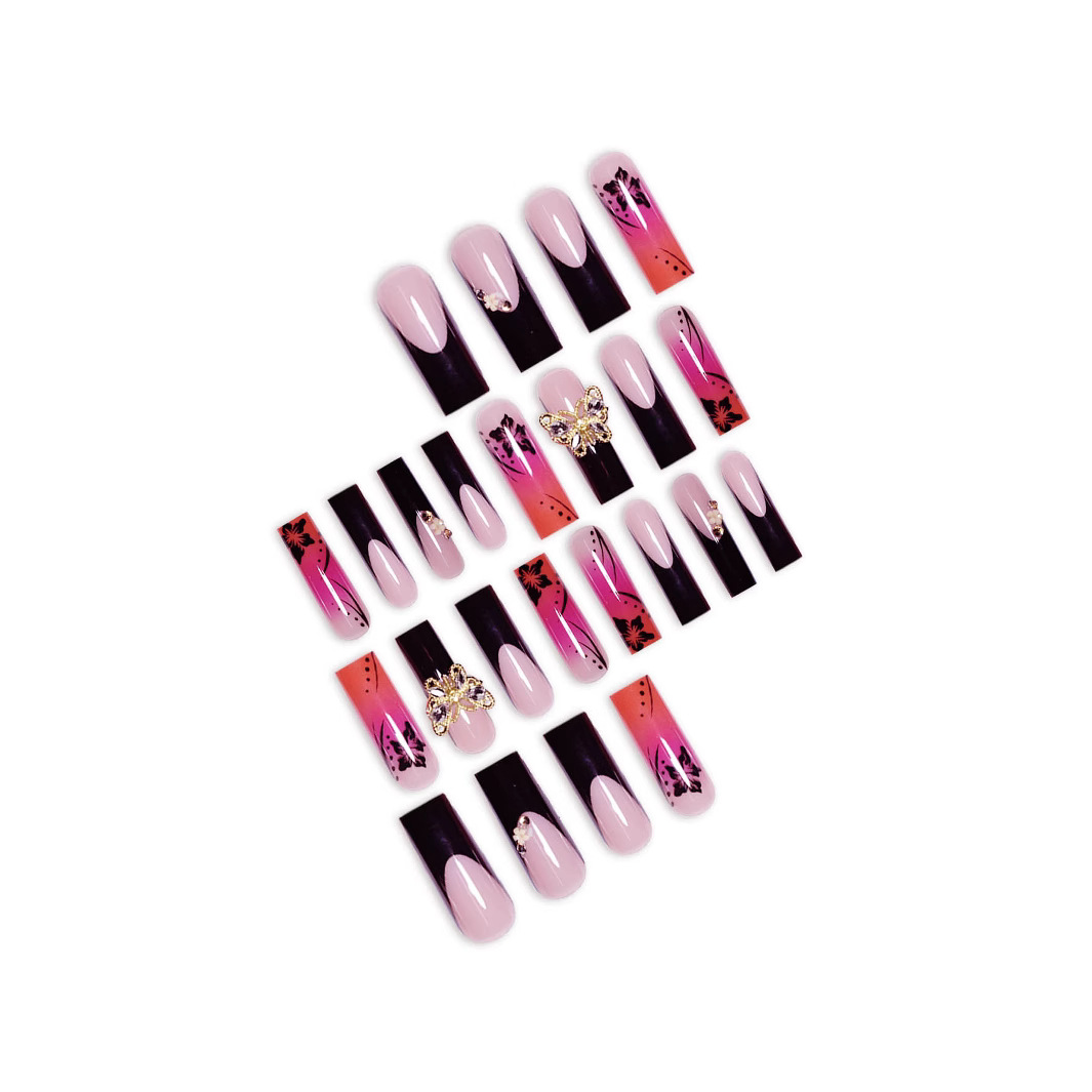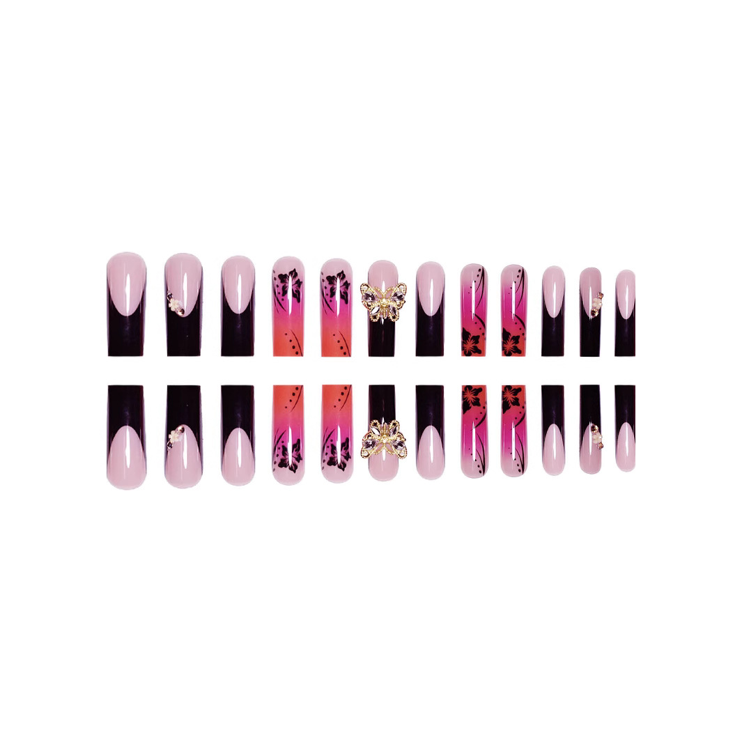 跨境热销欧美穿戴甲渲染甲片甜酷蝴蝶长款欧方型型假指甲成品批发 English | 投诉