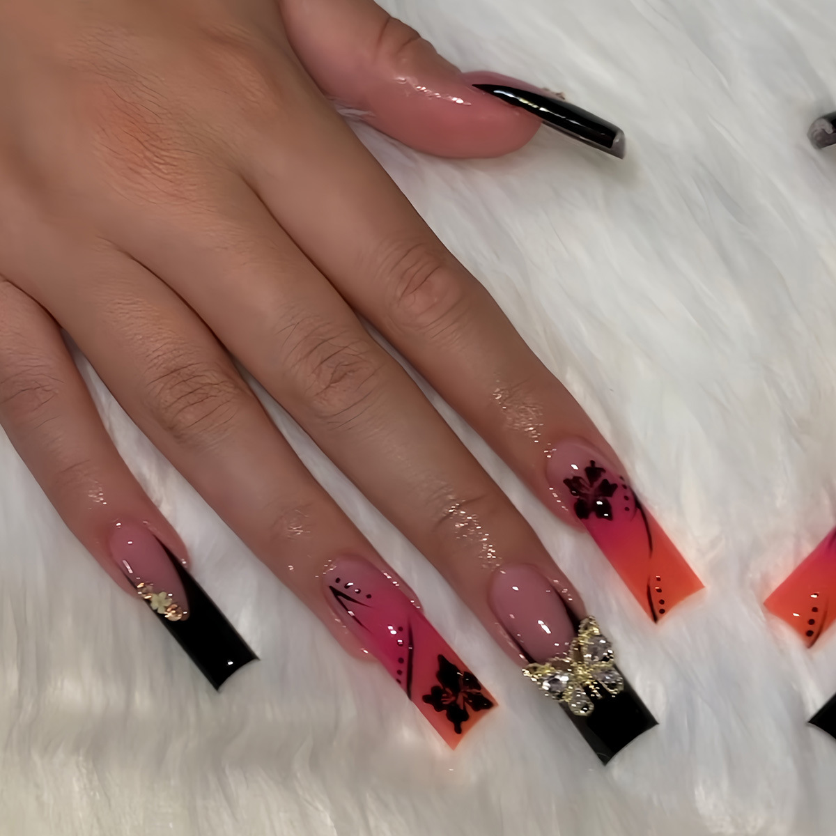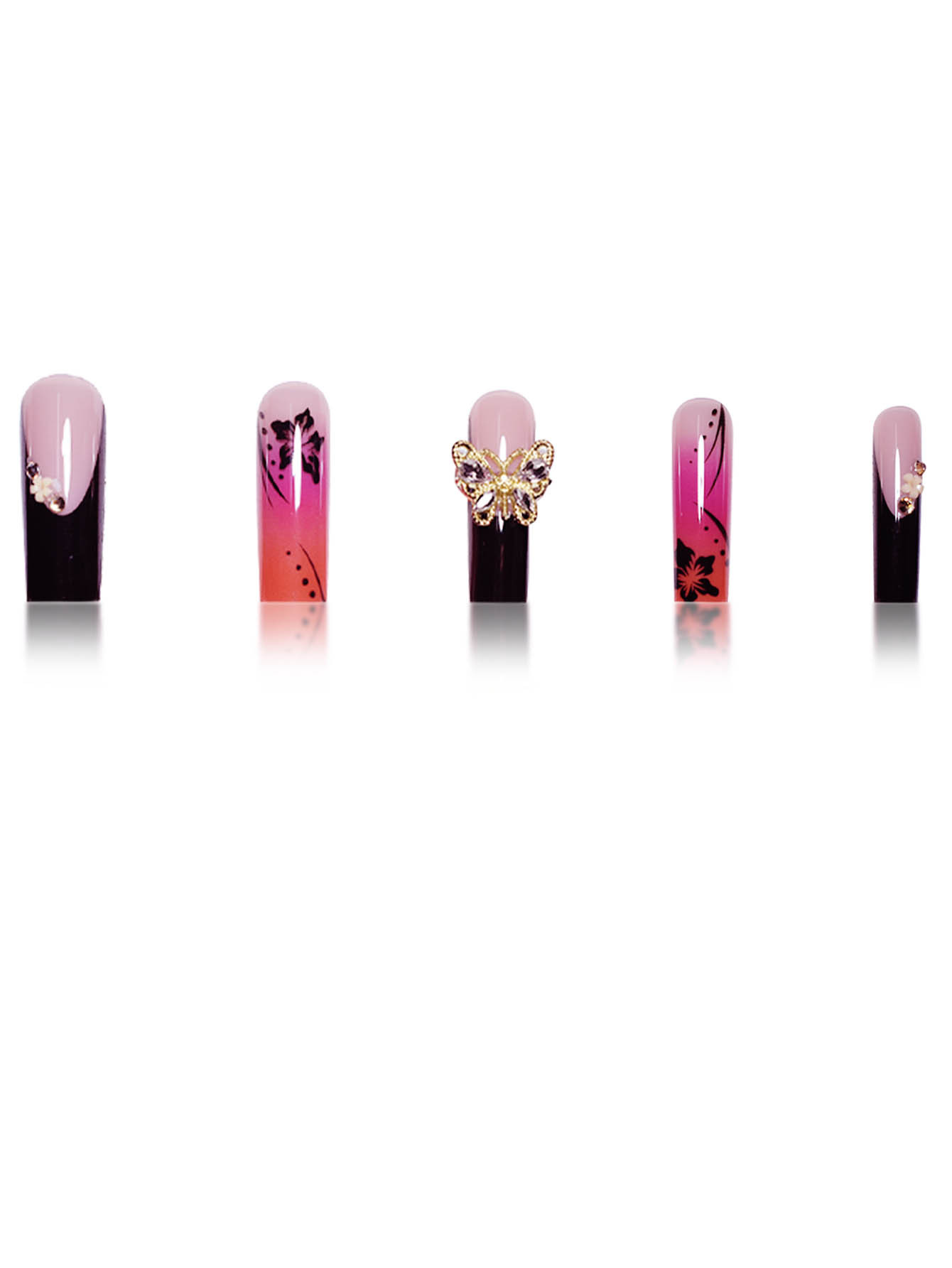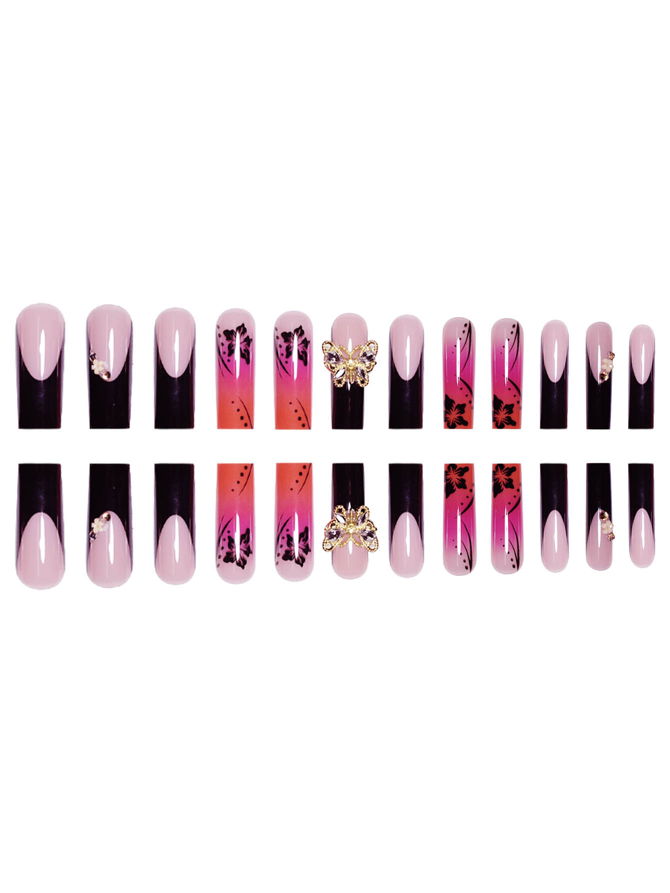 跨境热销欧美穿戴甲渲染甲片甜酷蝴蝶长款欧方型型假指甲成品批发 English | 投诉