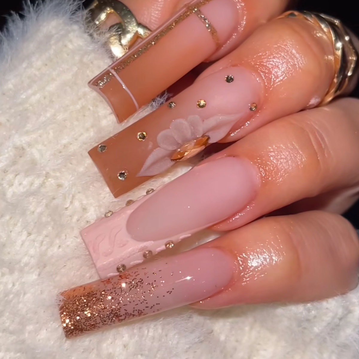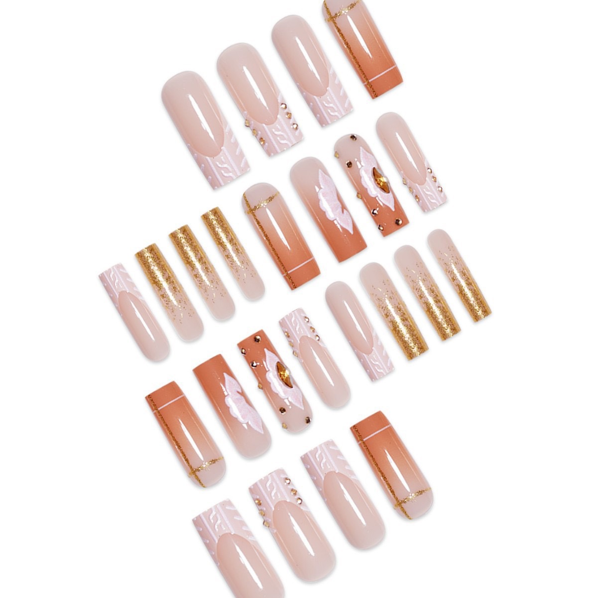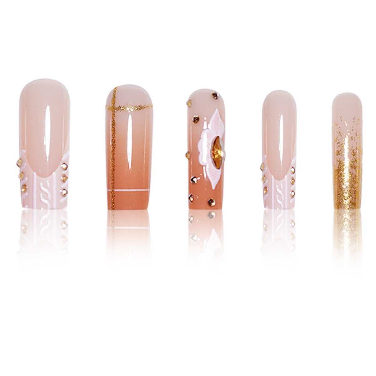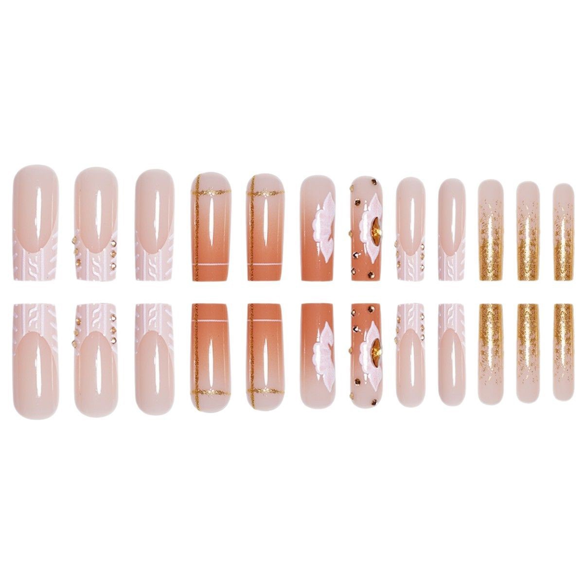 跨境热售长款方形假指甲日韩风格纹花朵碎钻设计穿戴甲片成品批发 English | 投诉
