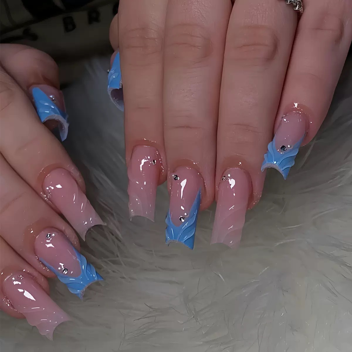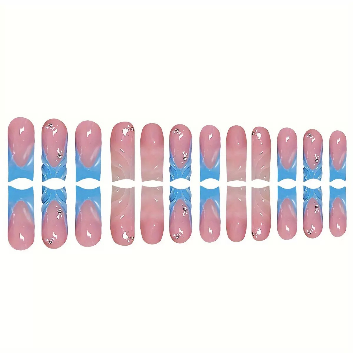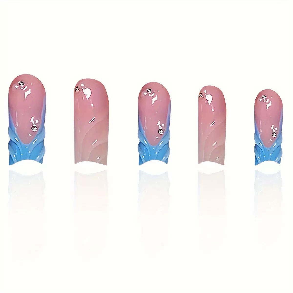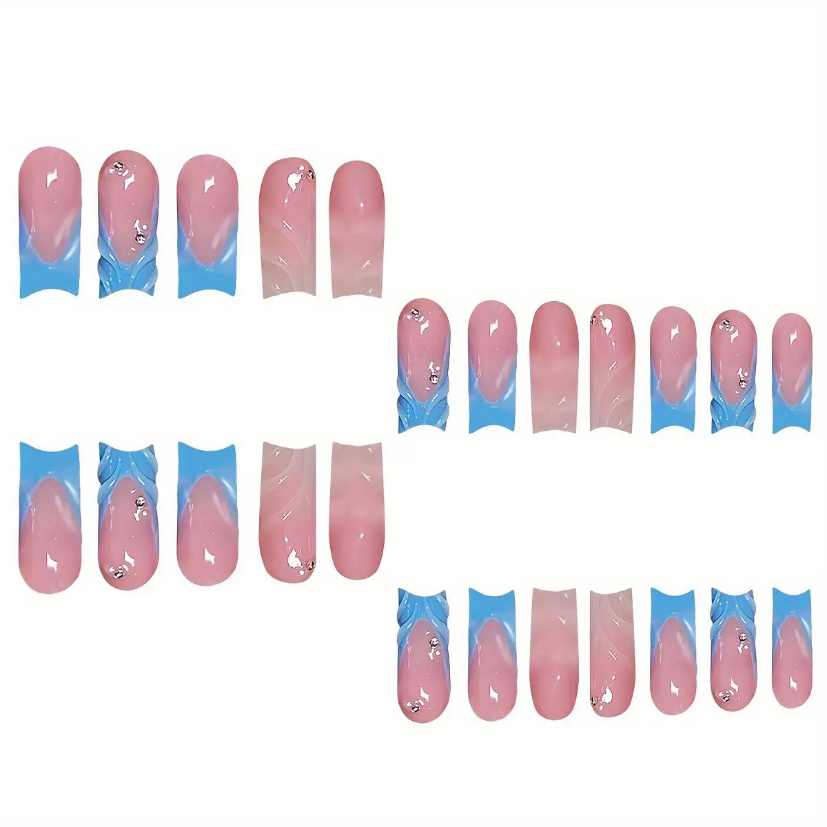 跨境热售方形假指甲纯色3D立体波纹闪钻点缀可拆卸假指甲成品批发 English | 投诉