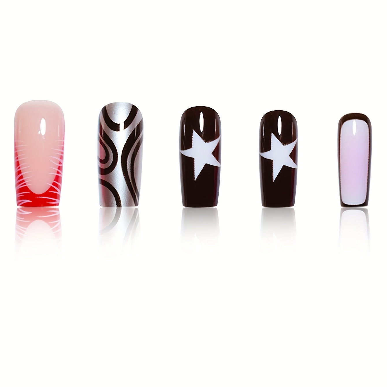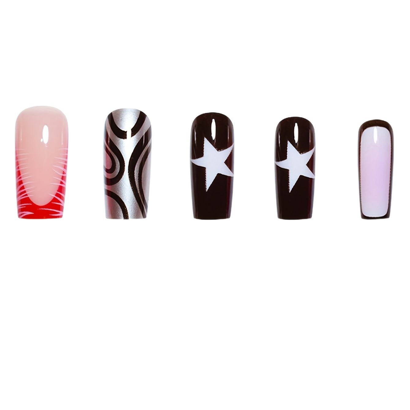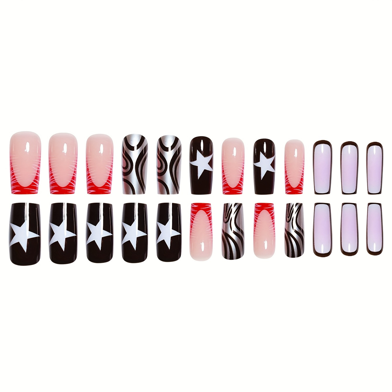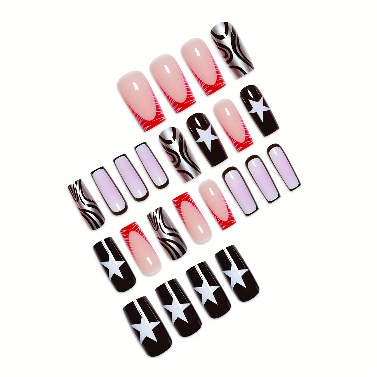 跨境热销方形假指甲时尚五角星点缀简约时尚条纹穿戴甲成品批发