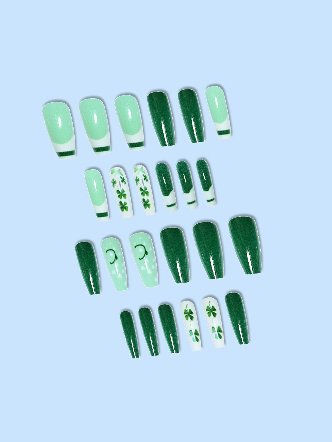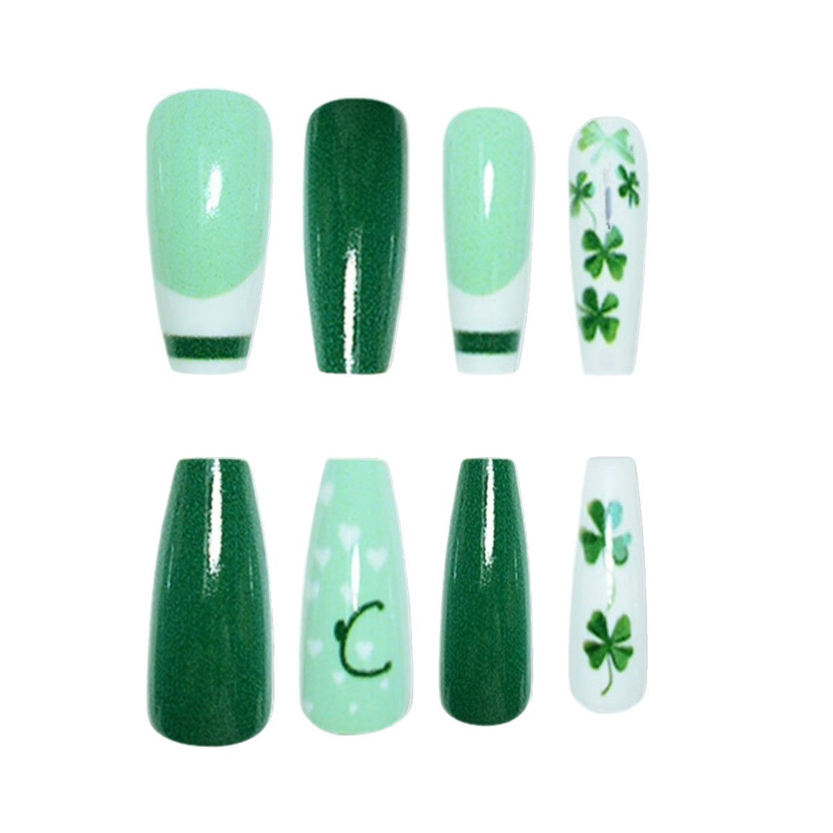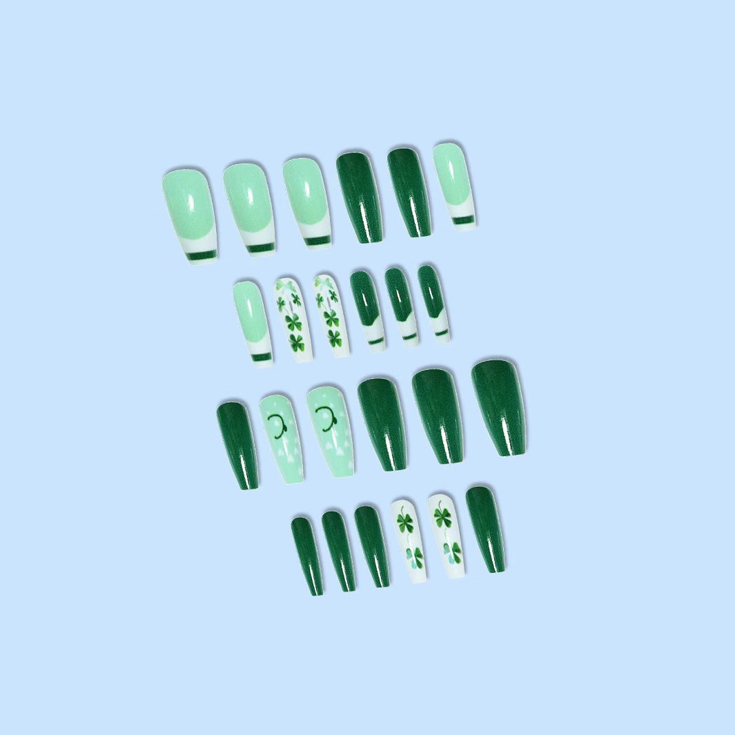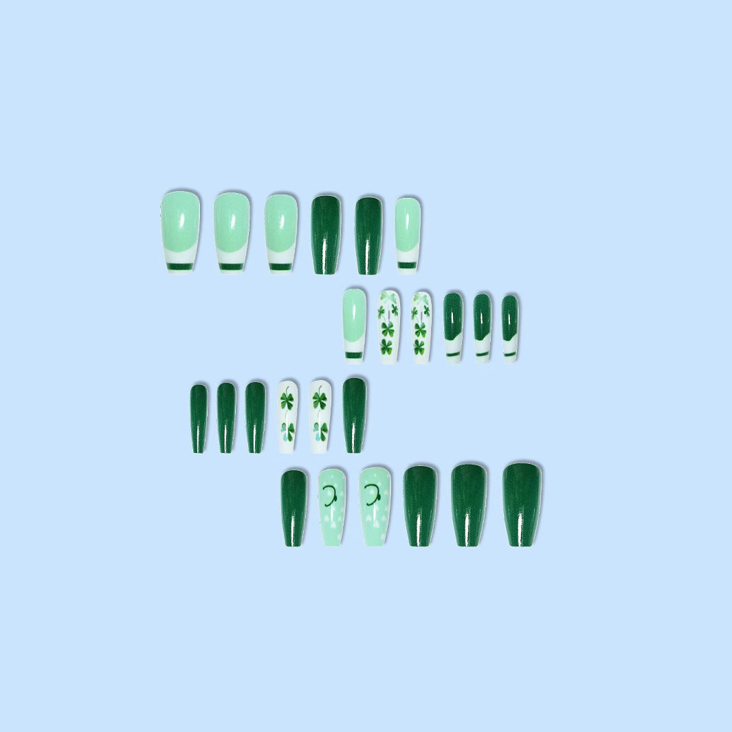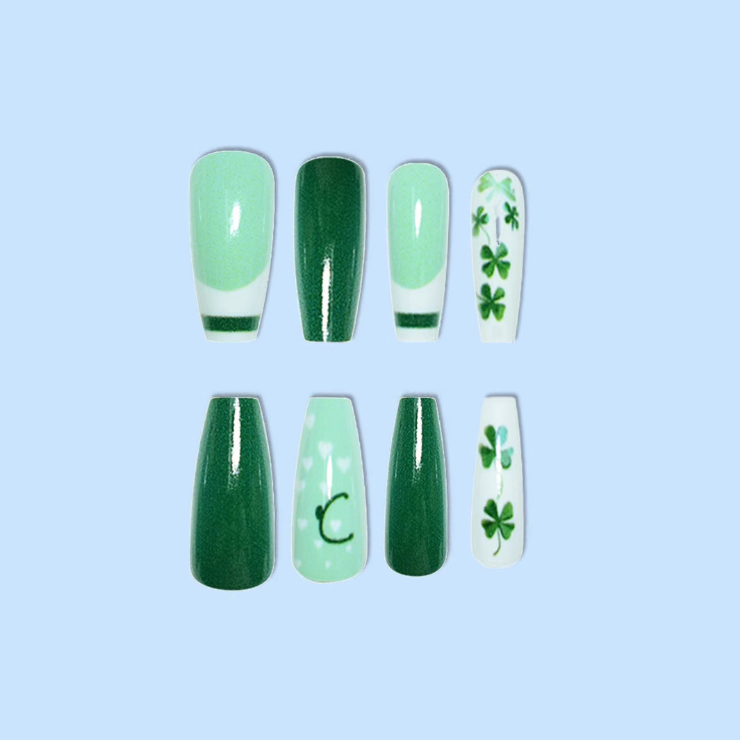 跨境热销芭蕾型假指甲四叶草爱心点缀圣帕特里克节穿戴甲成品批发 English | 投诉