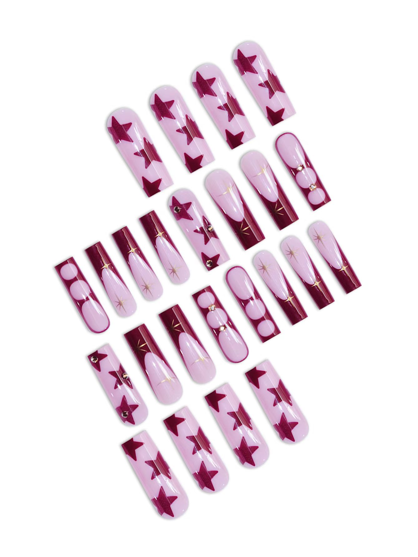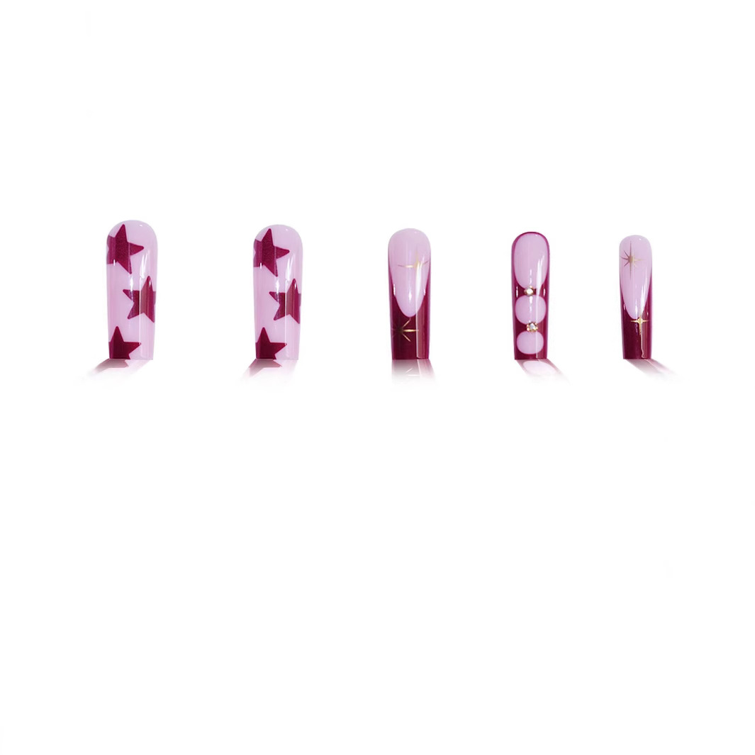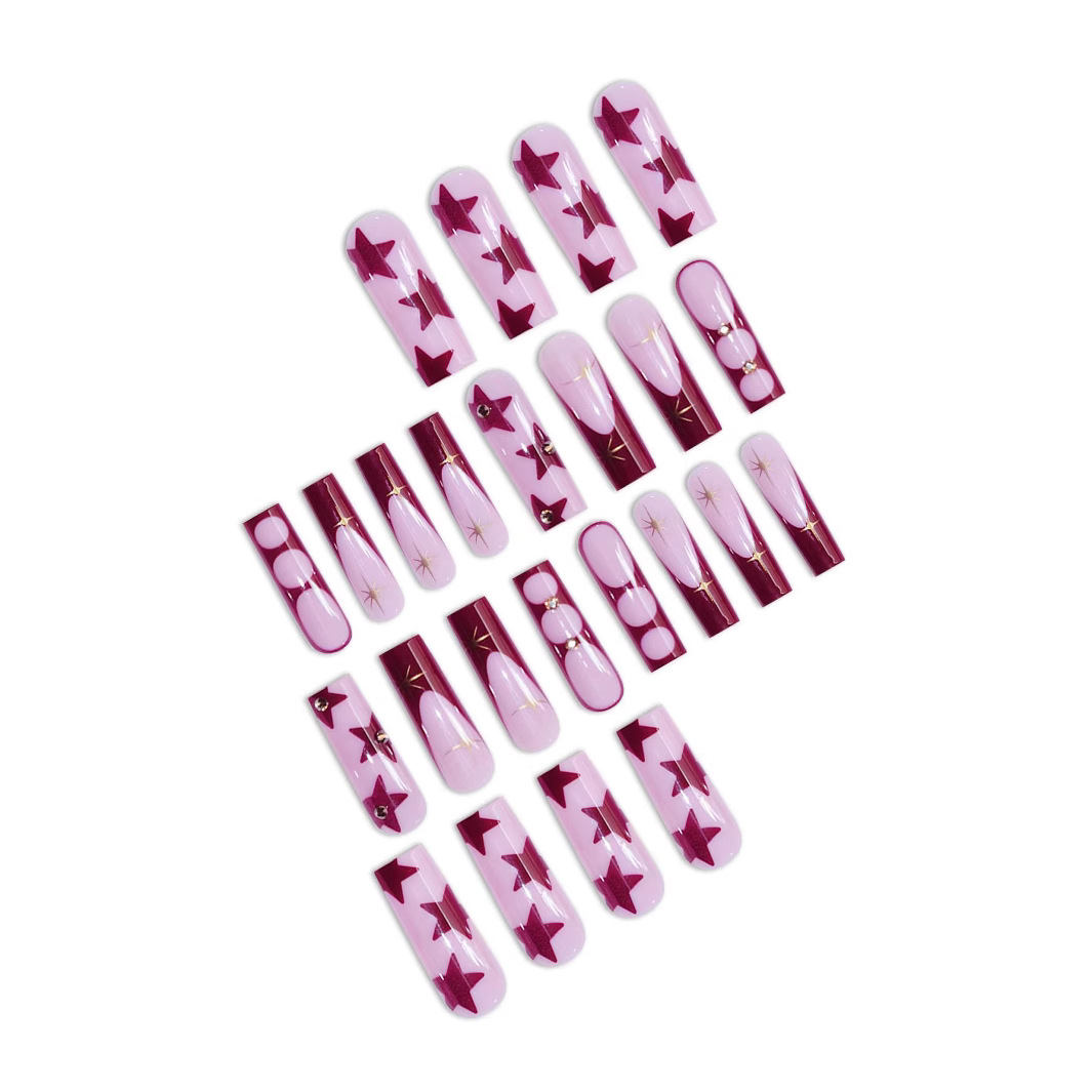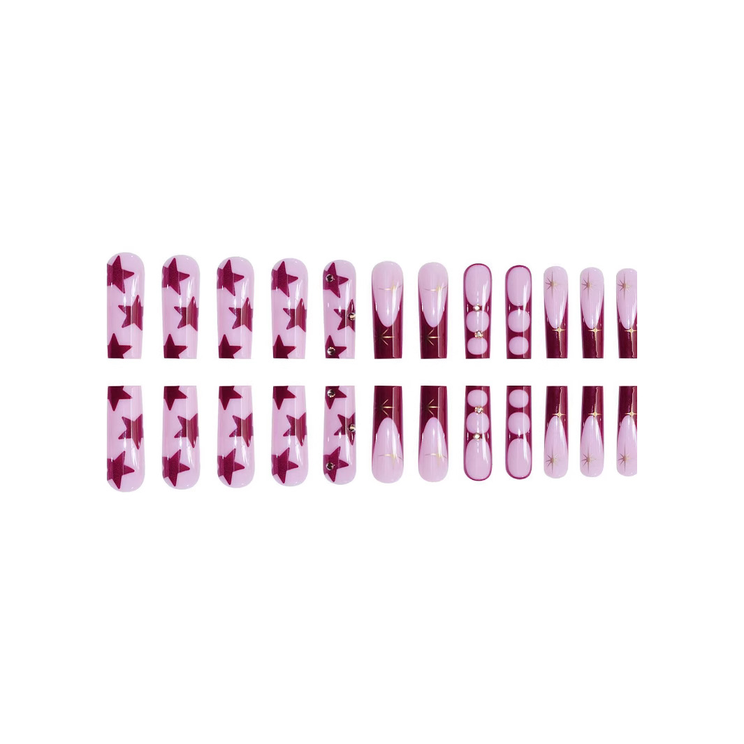 欧美跨境穿戴甲长水管粉棕色法式星芒星星可拆卸美甲片假指甲批发 English | 投诉