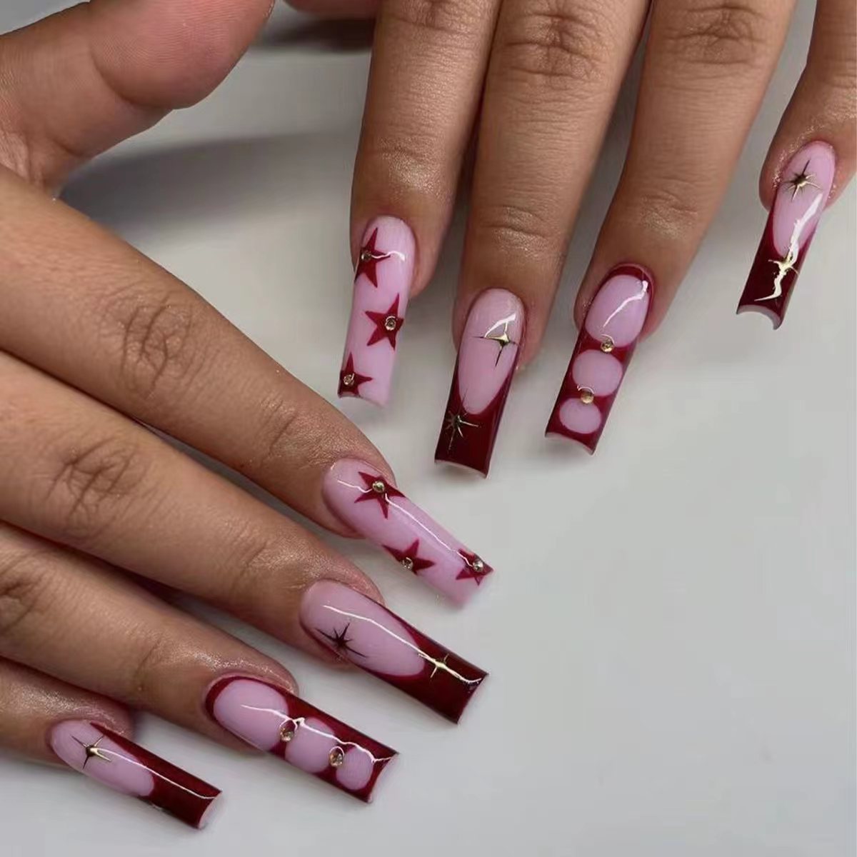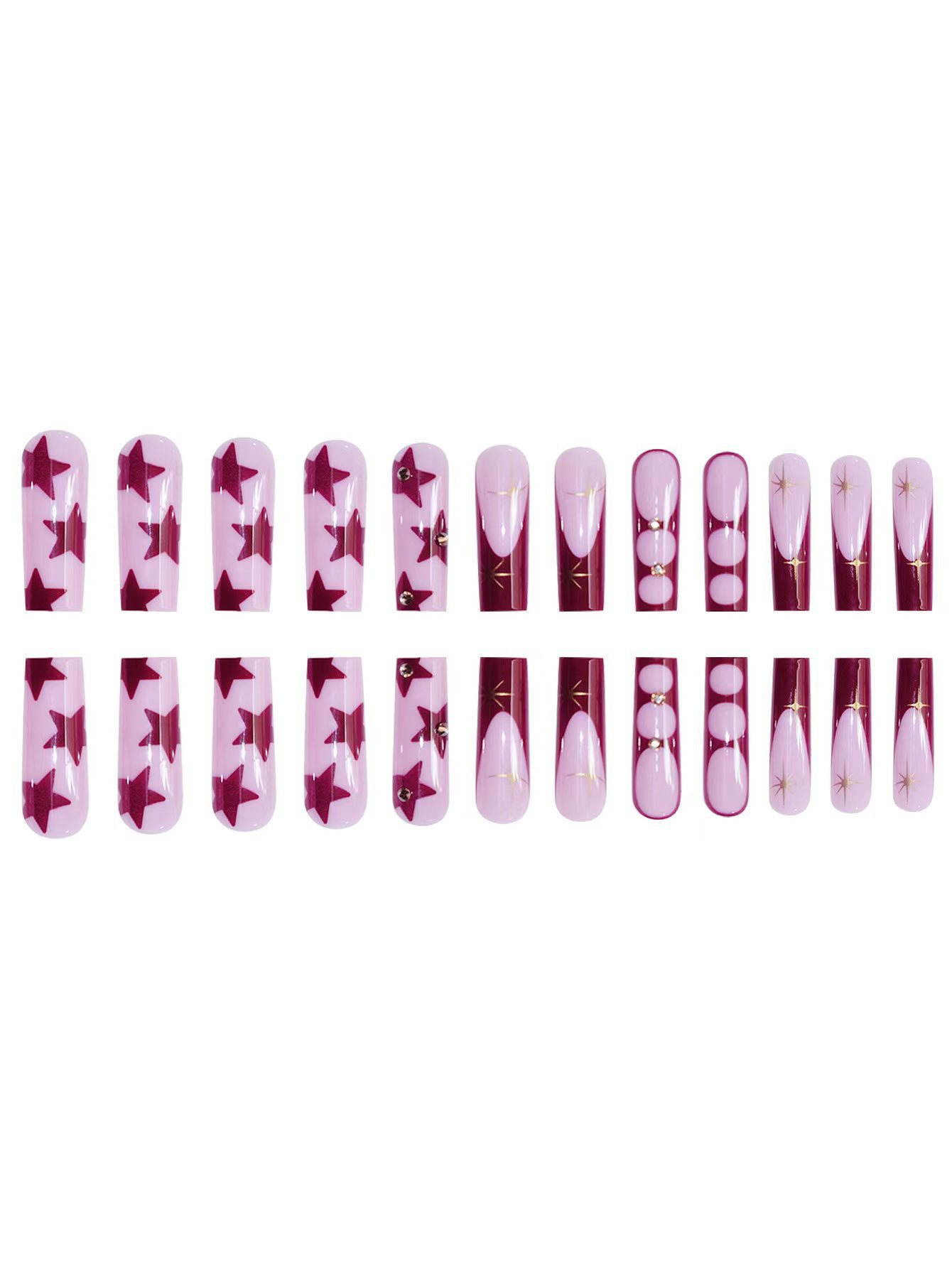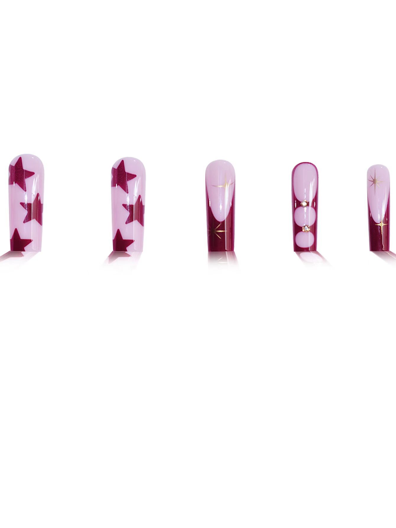 欧美跨境穿戴甲长水管粉棕色法式星芒星星可拆卸美甲片假指甲批发 English | 投诉
