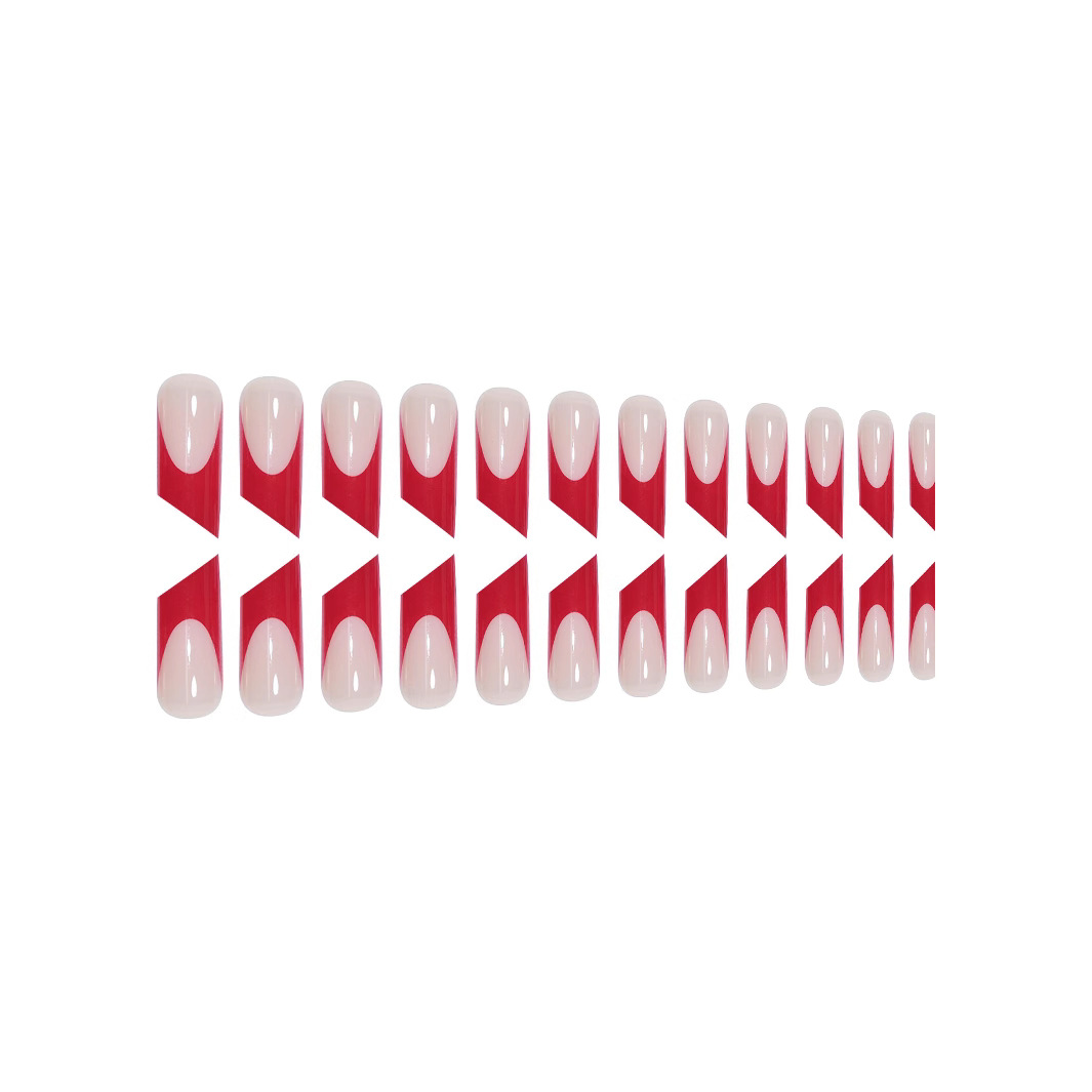 跨境欧美热销红色边高级感设计可拆卸美甲口红型长款成品批发 English | 投诉