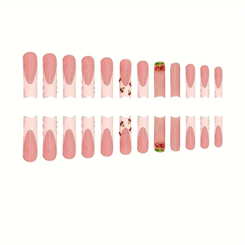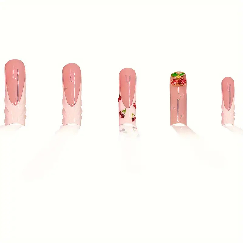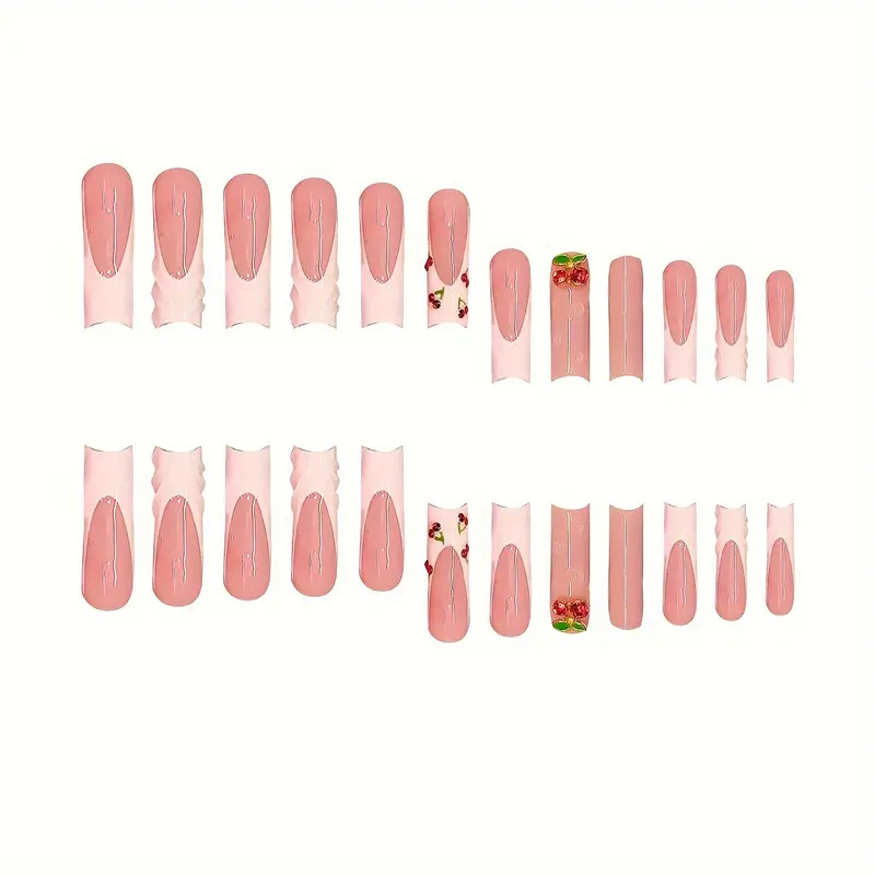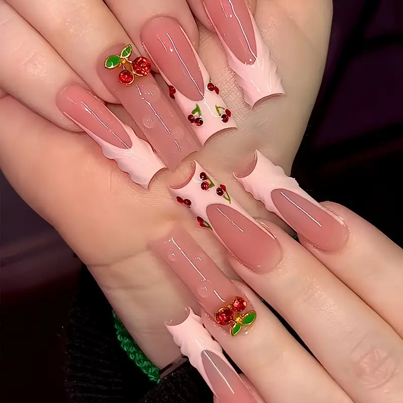 跨境热售方形美甲贴片3D立体纹理甜美可爱樱桃闪钻穿戴甲成品批发 English | 投诉