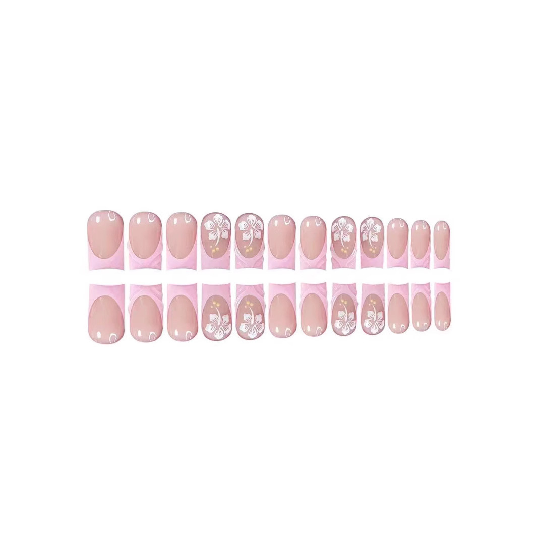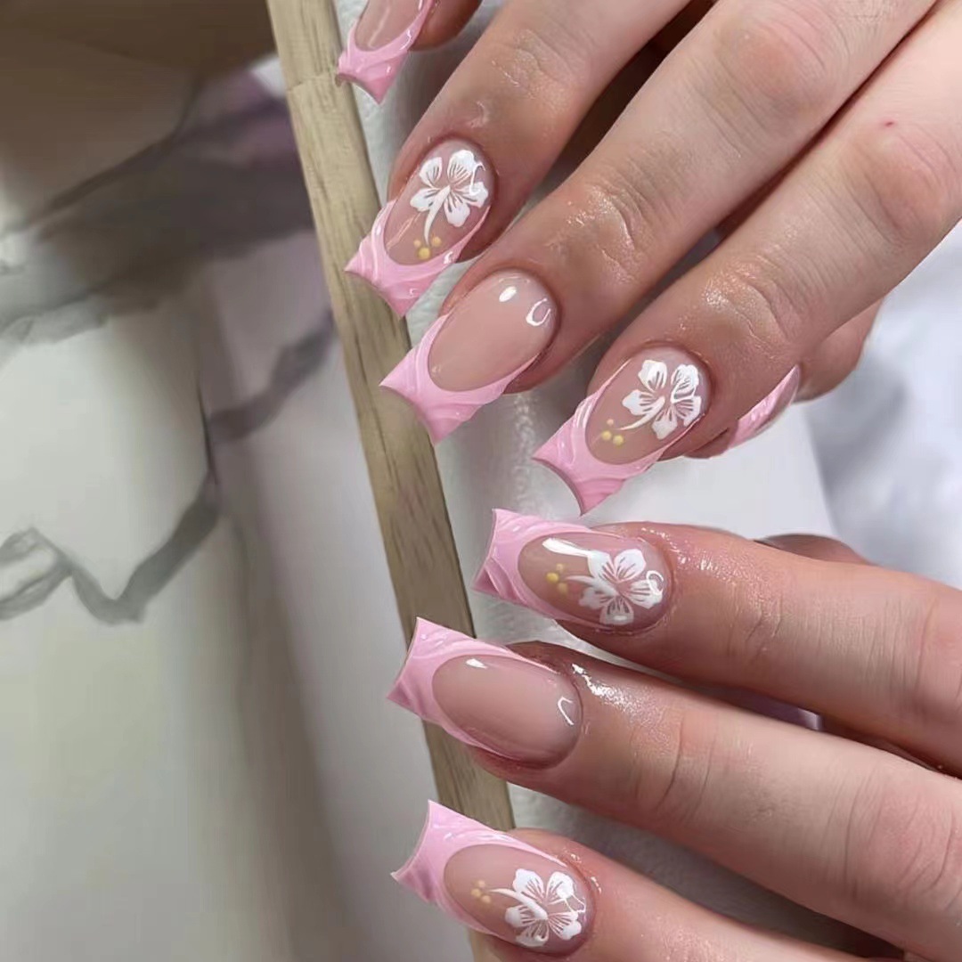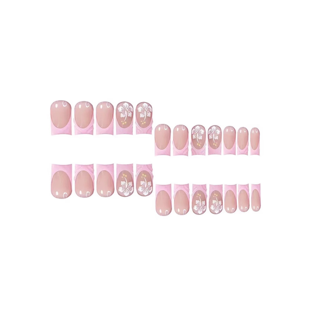 跨境热售中款方型甲片3D花朵粉色法式甜美穿戴甲可拆卸假指甲批发 English | 投诉