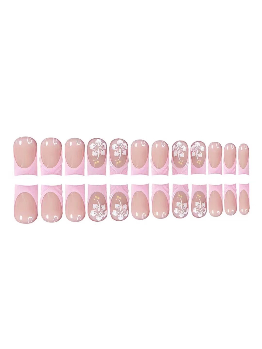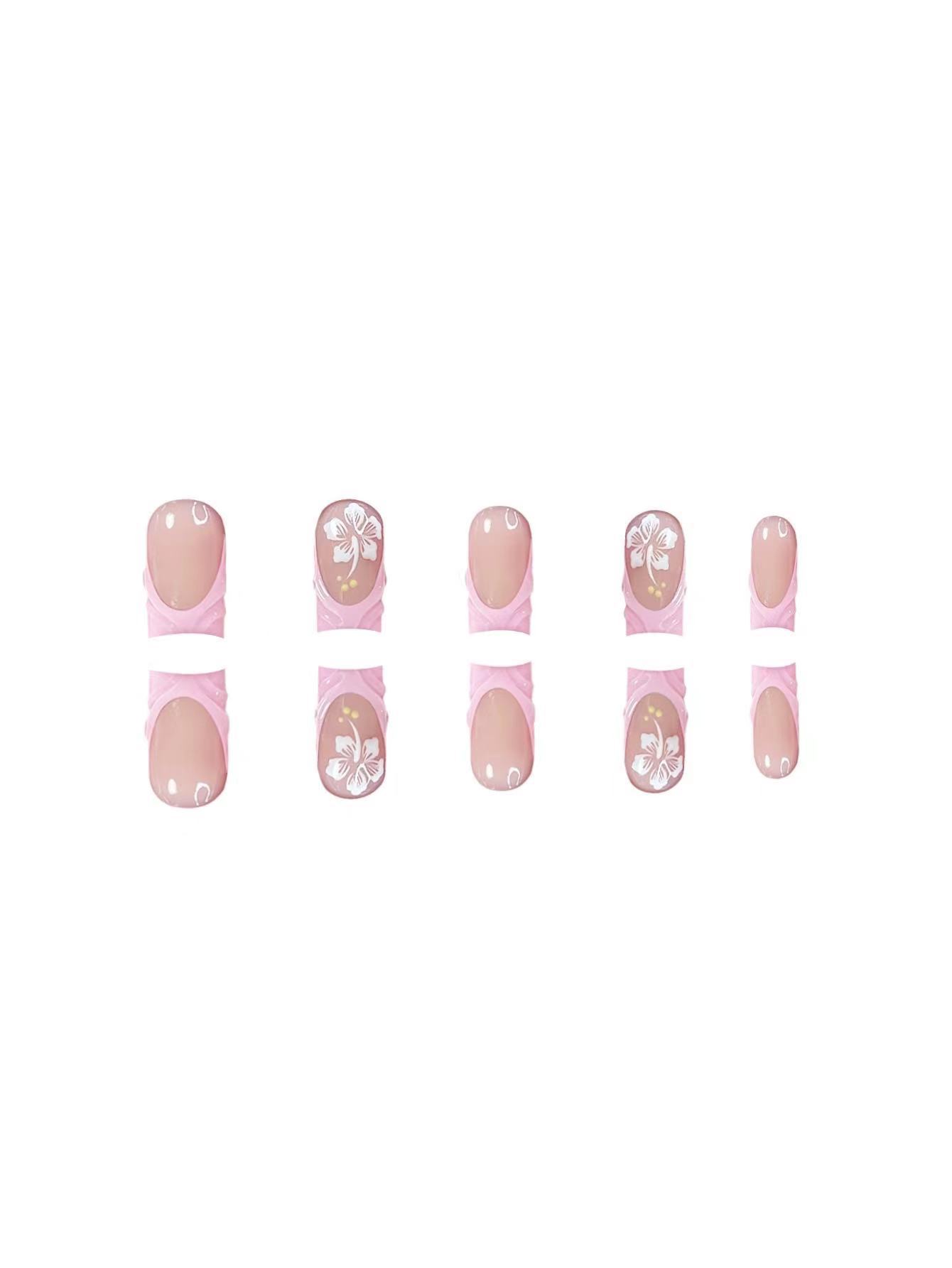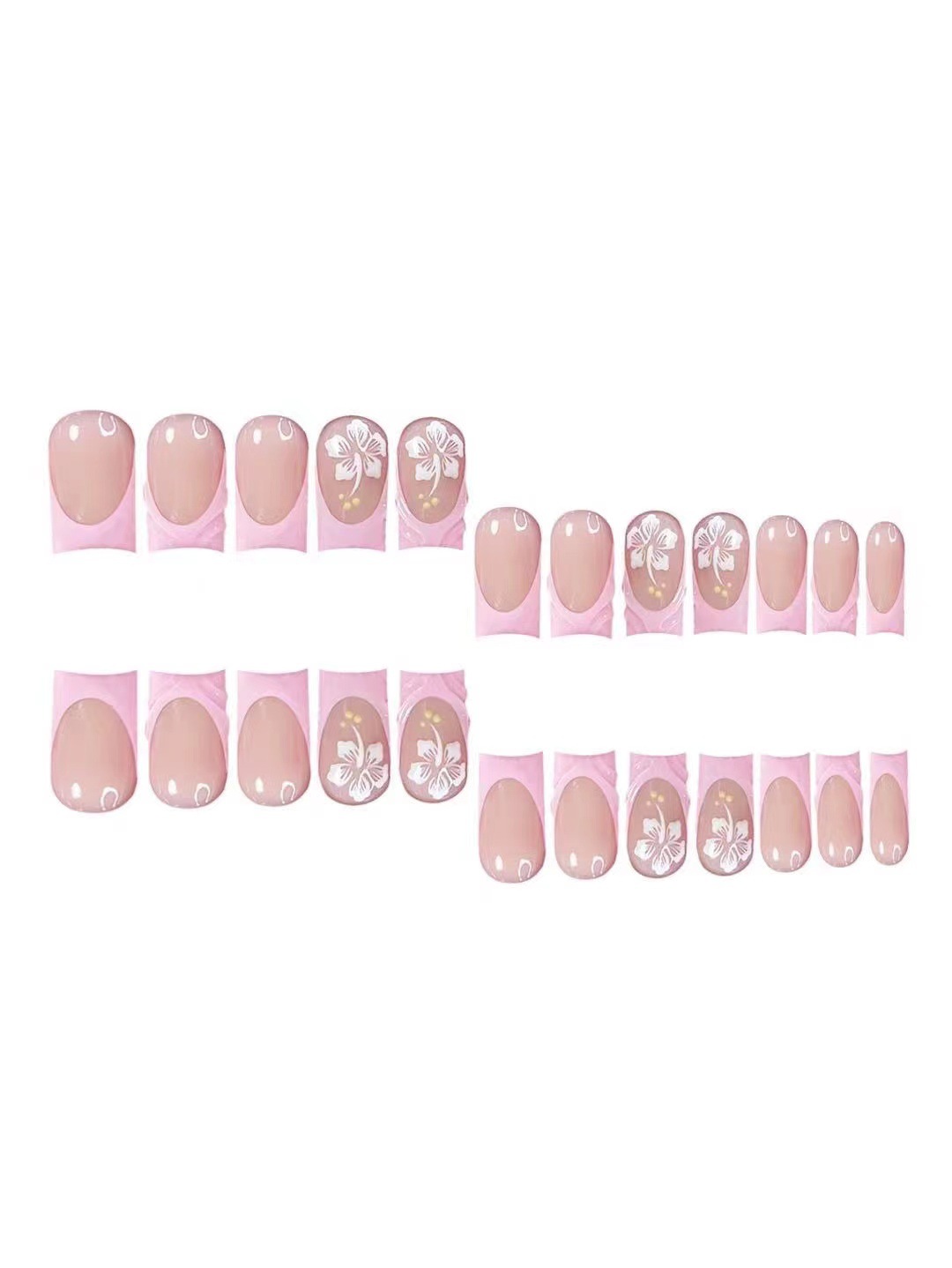 跨境热售中款方型甲片3D花朵粉色法式甜美穿戴甲可拆卸假指甲批发 English | 投诉
