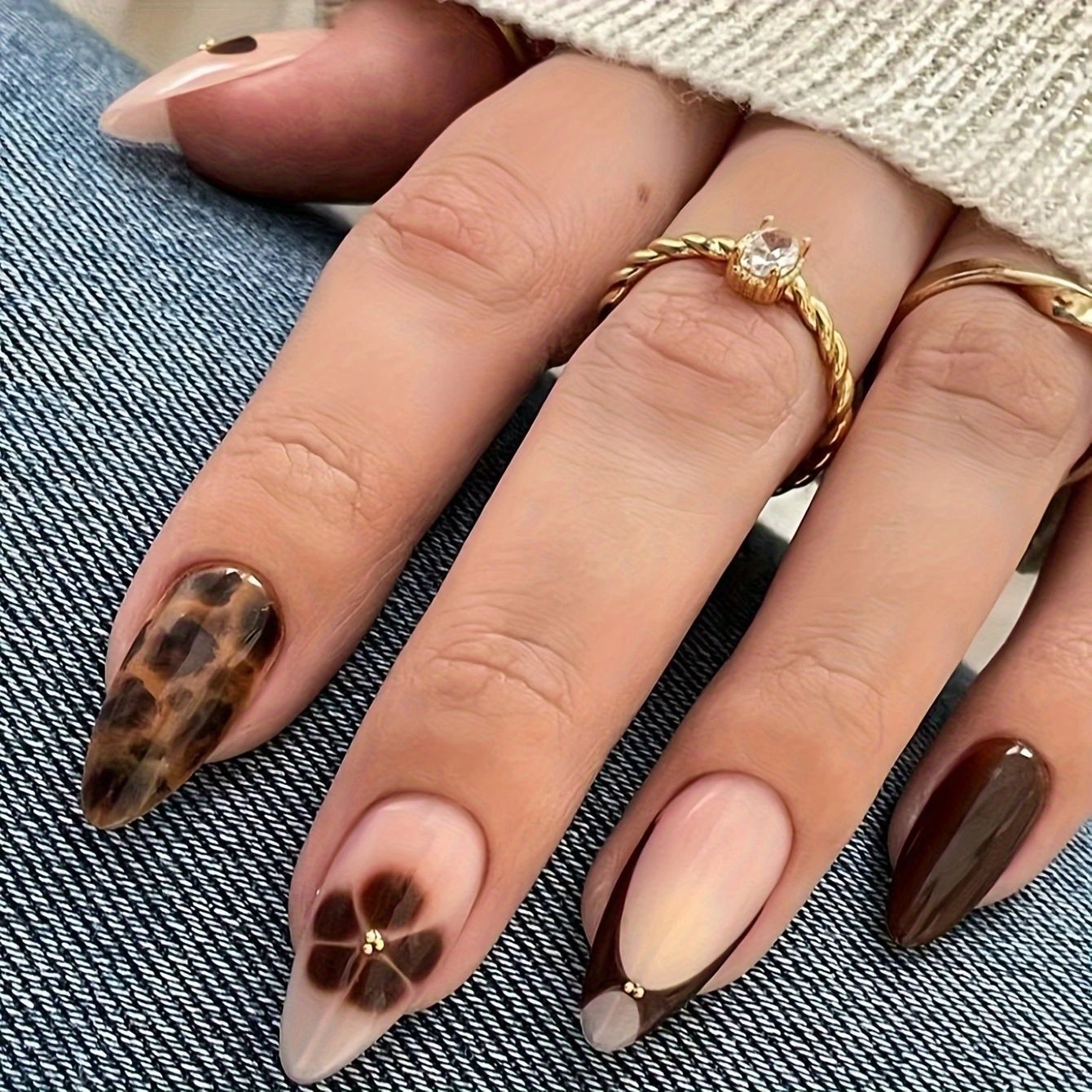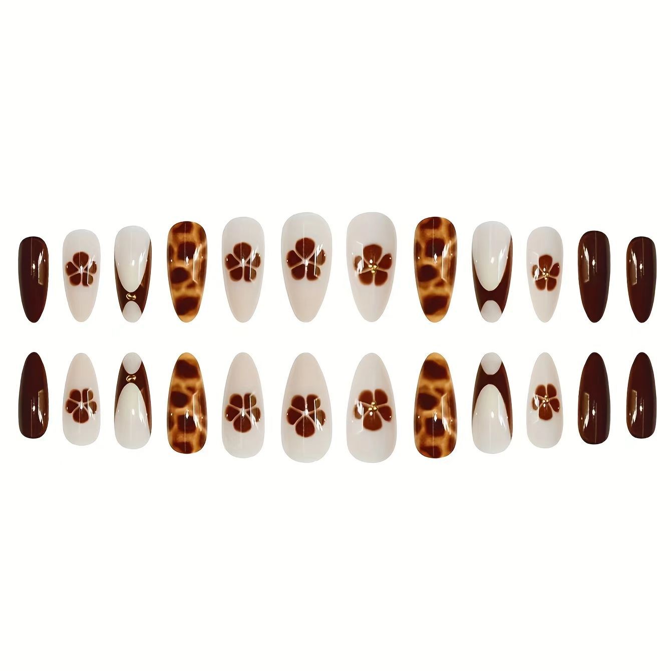 跨境热售杏仁甲法式大理石纯欲系花朵穿戴甲可拆卸假指甲成品批发
