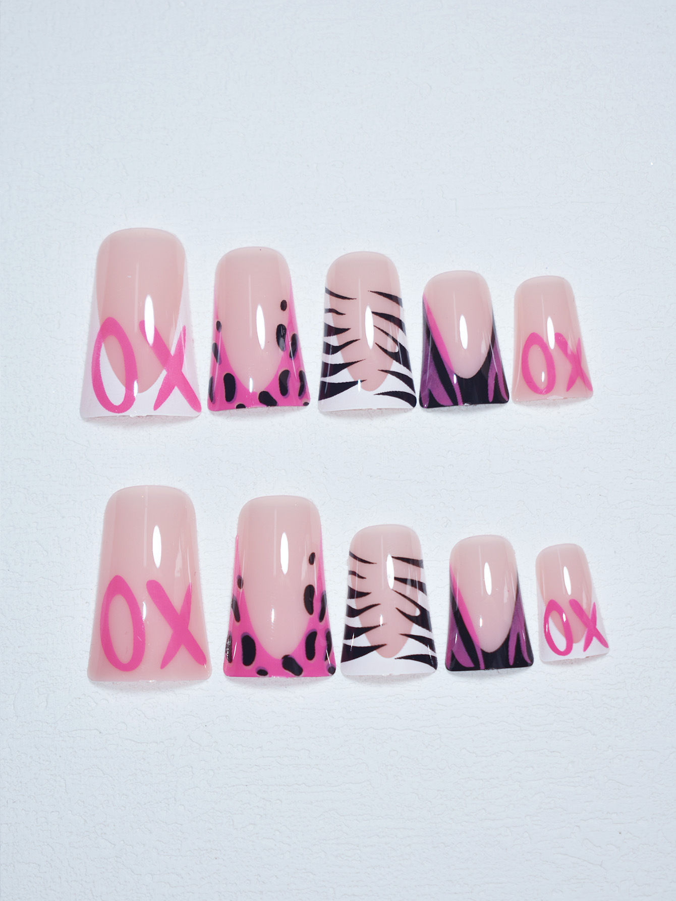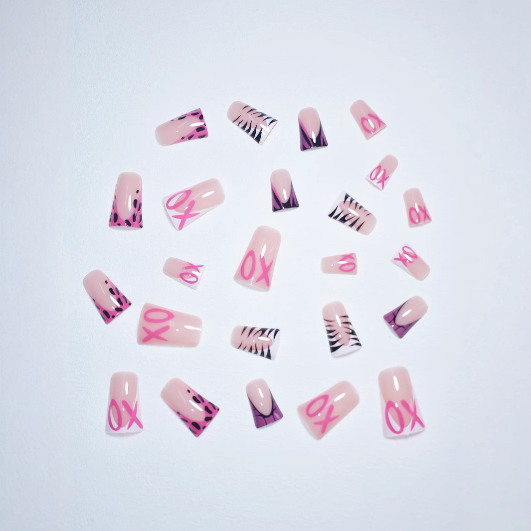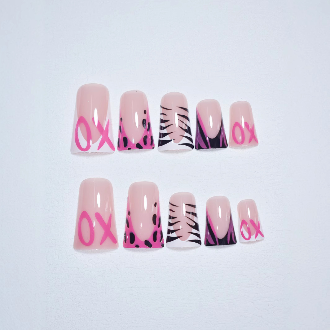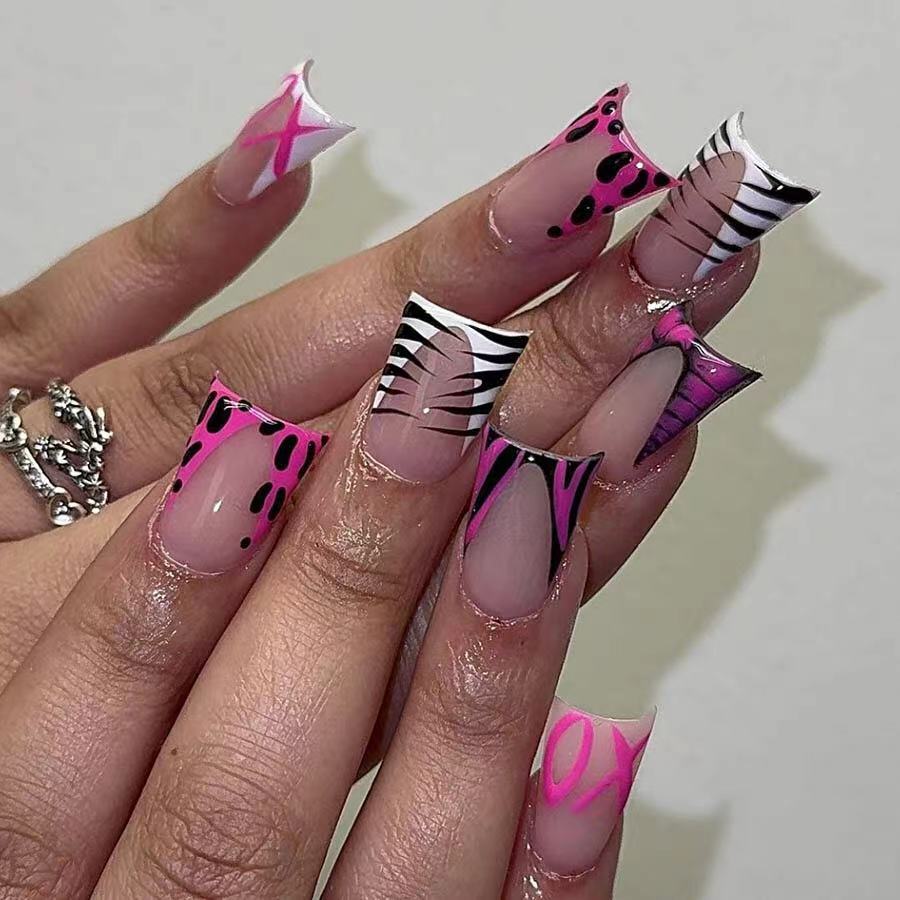 跨境热销穿戴甲华丽甜酷豹纹高级感可拆卸假指甲鸭嘴型成品批发