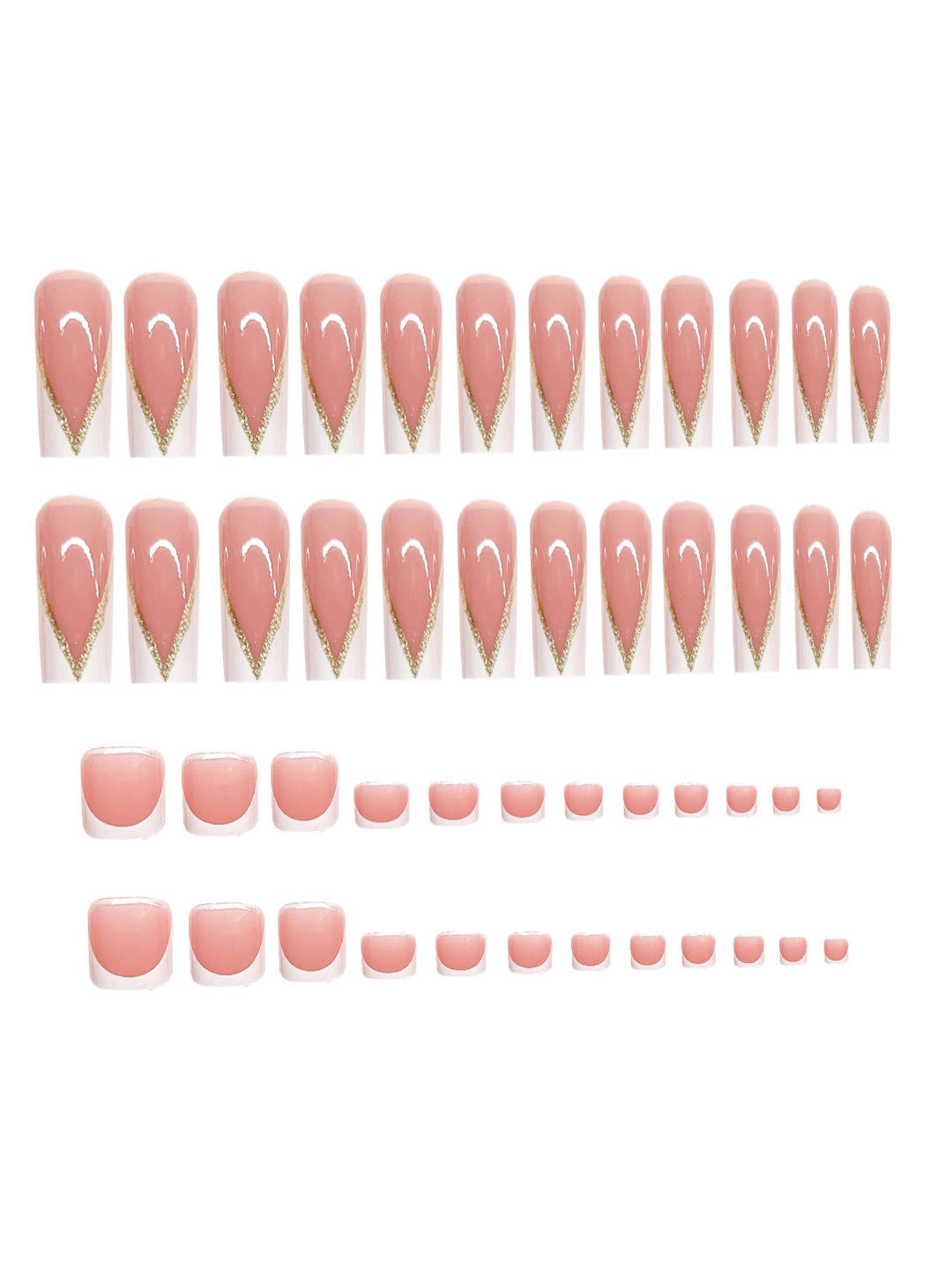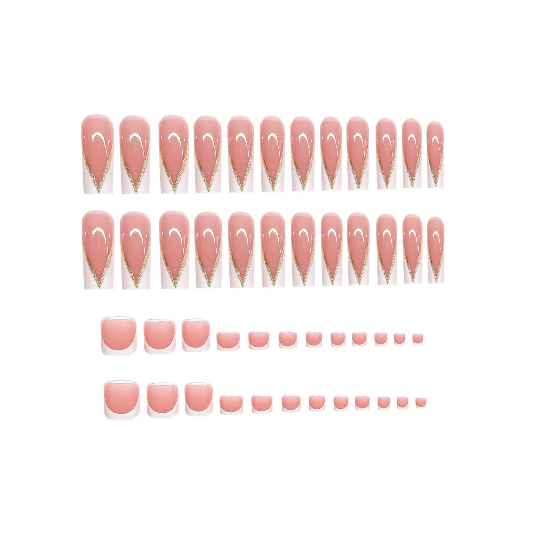 跨境热售手甲套装法式白边裸色长款穿戴甲可拆卸假指甲成品批发 English | 投诉