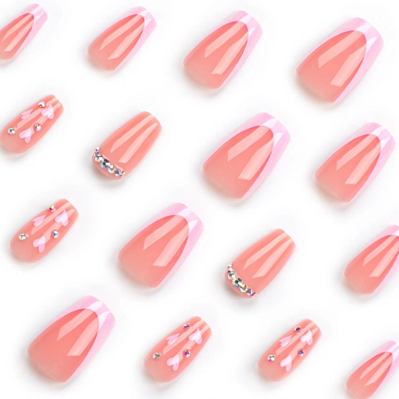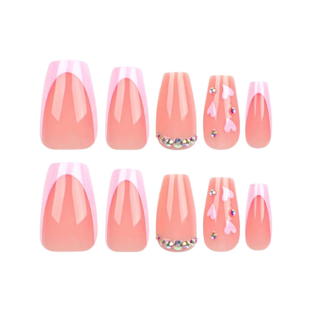 跨境热售方形假指甲甜美纯欲爱心闪钻穿戴甲可拆卸假指甲成品批发 English | 投诉