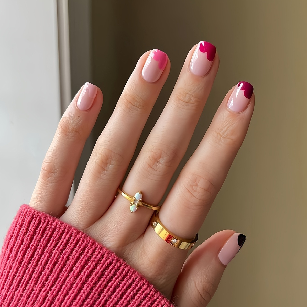 跨境热售方形小红书同款甜美时尚爱心穿戴甲可拆卸假指甲成品批发