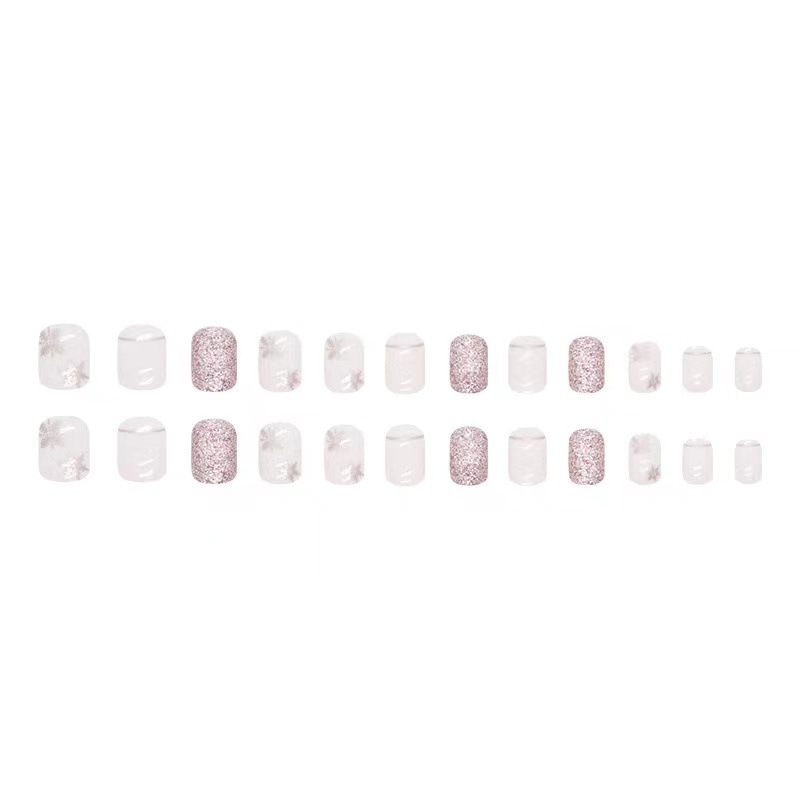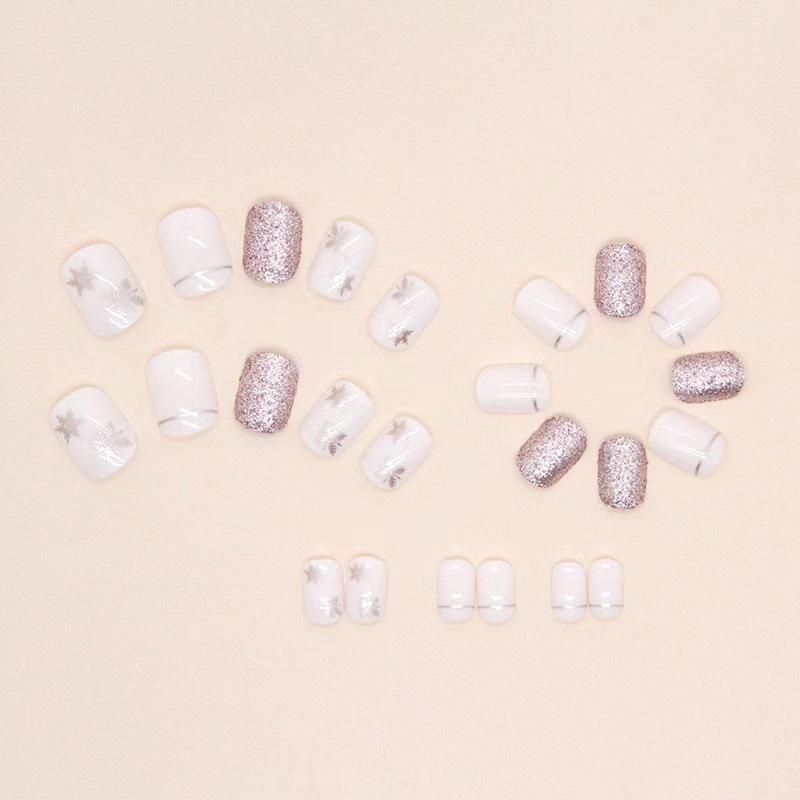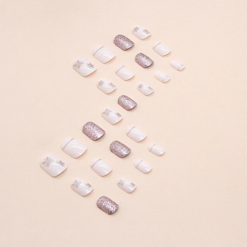 跨境热售白法式时尚气质雪花闪光亮面穿戴甲可拆卸假指甲成品批发 English | 投诉