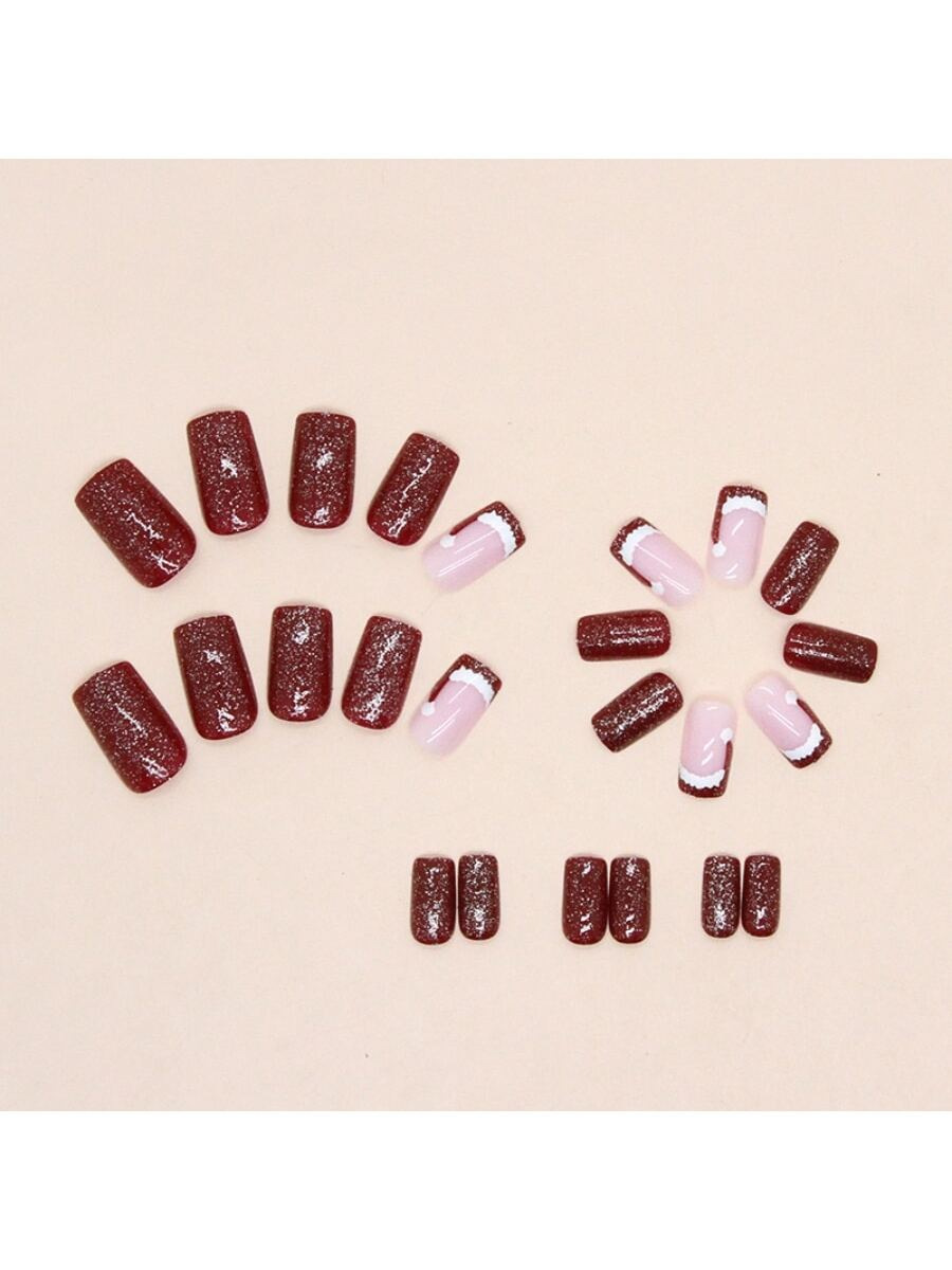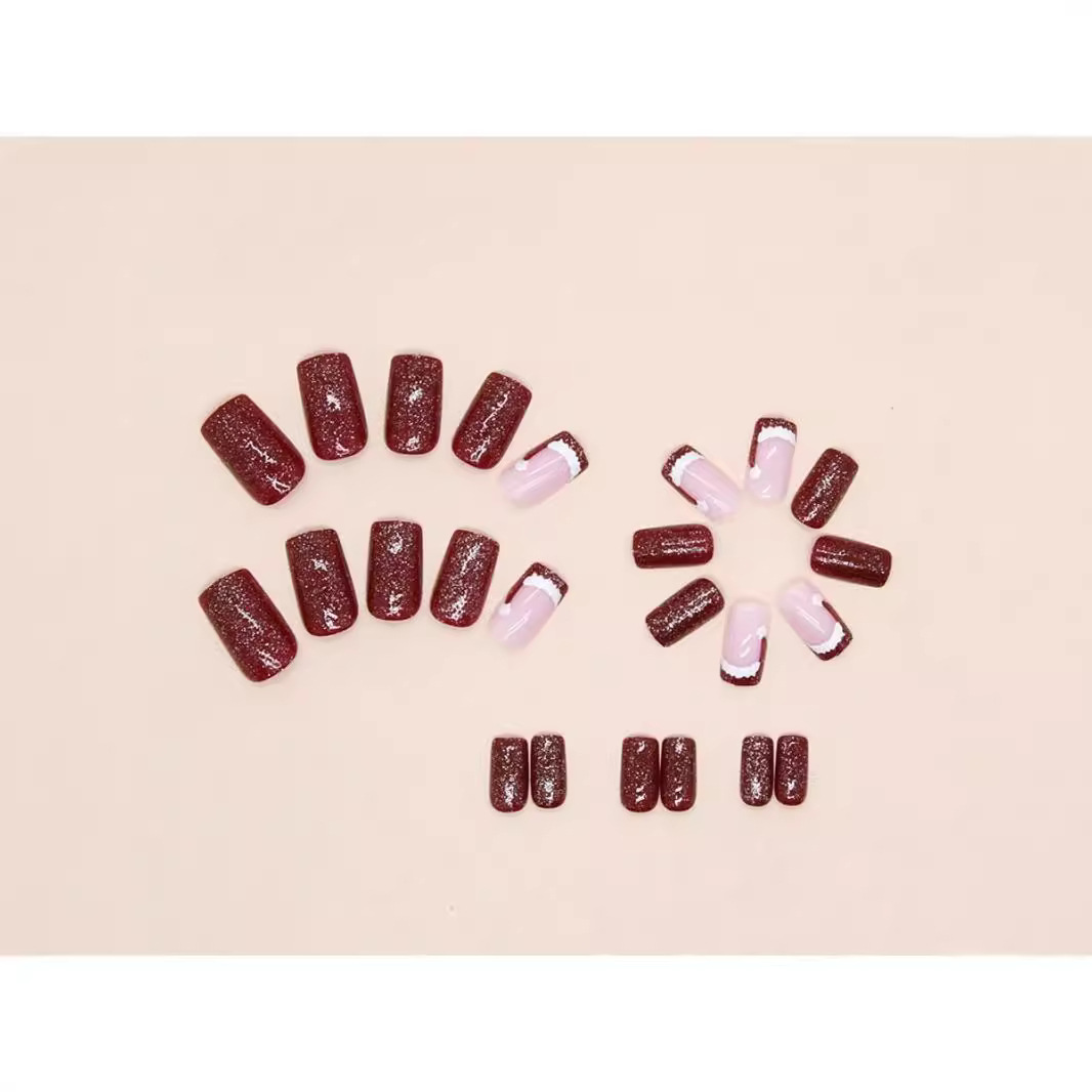 红色圣诞时尚气质秋冬显白少女美甲学生短款穿戴甲工厂穿戴甲批发 English | 投诉