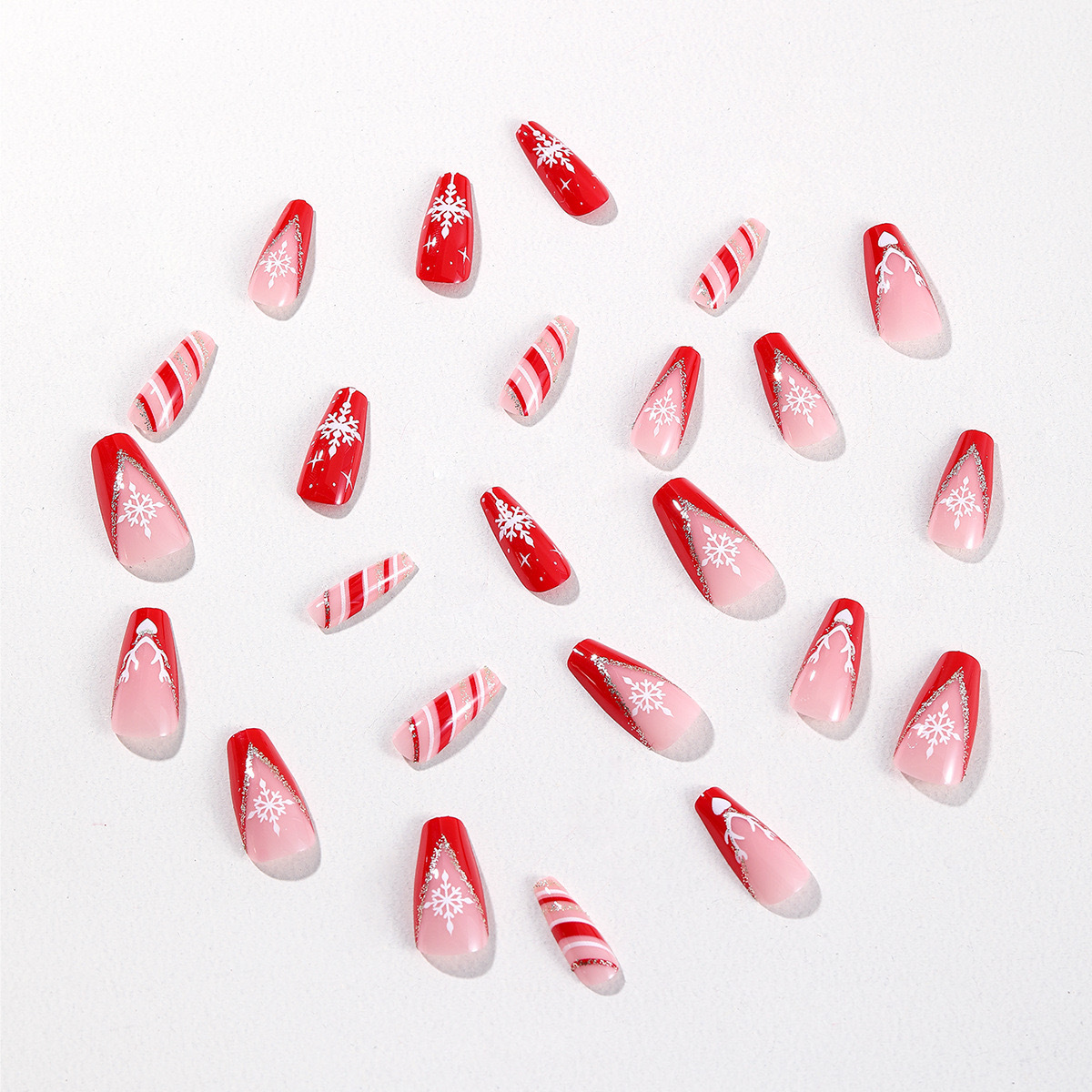 跨境圣诞节穿戴甲长梯雪花条纹红色可拆卸假指甲贴片24片成品批发 English | 投诉