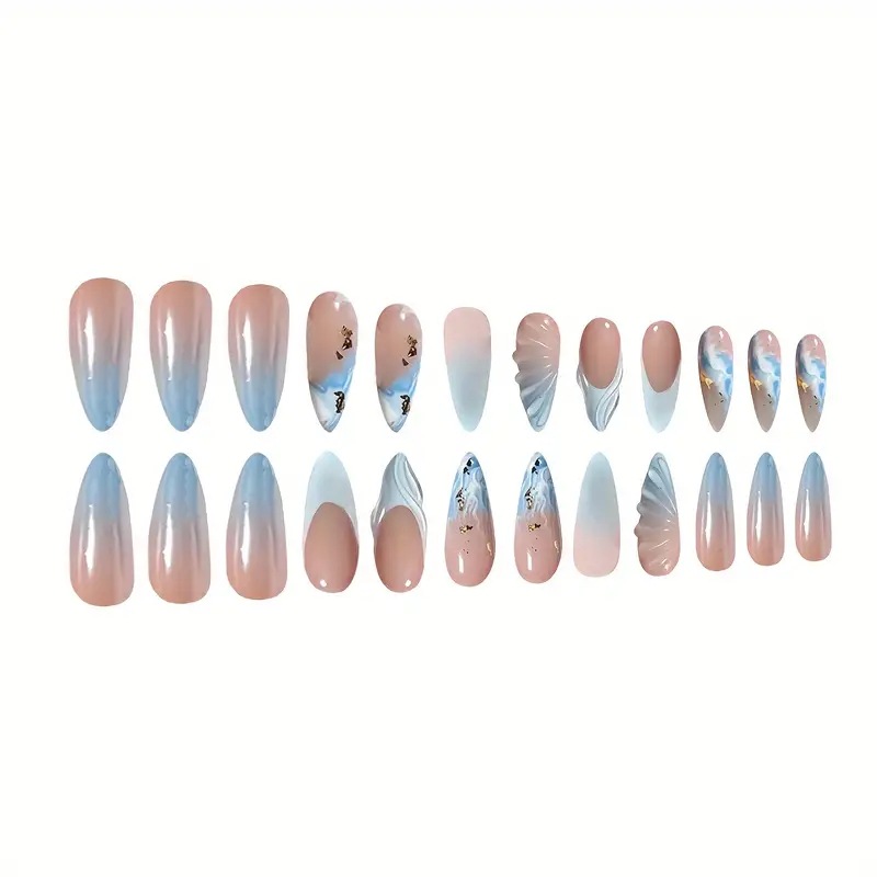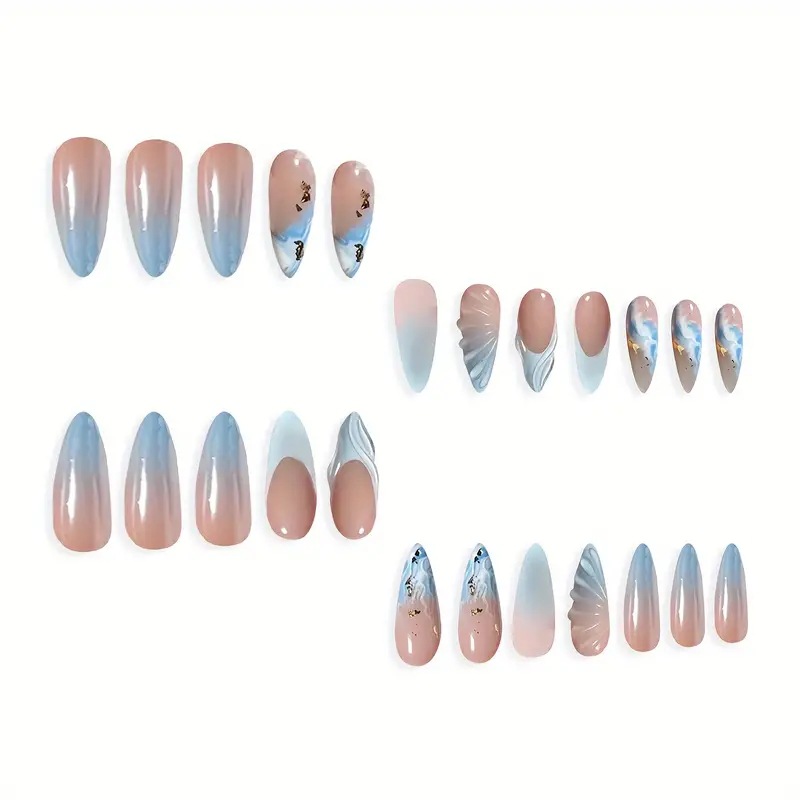 跨境外贸款穿戴甲杏仁型甲片立体贝壳欧美假指甲贴片美甲甲片24片 English | 投诉