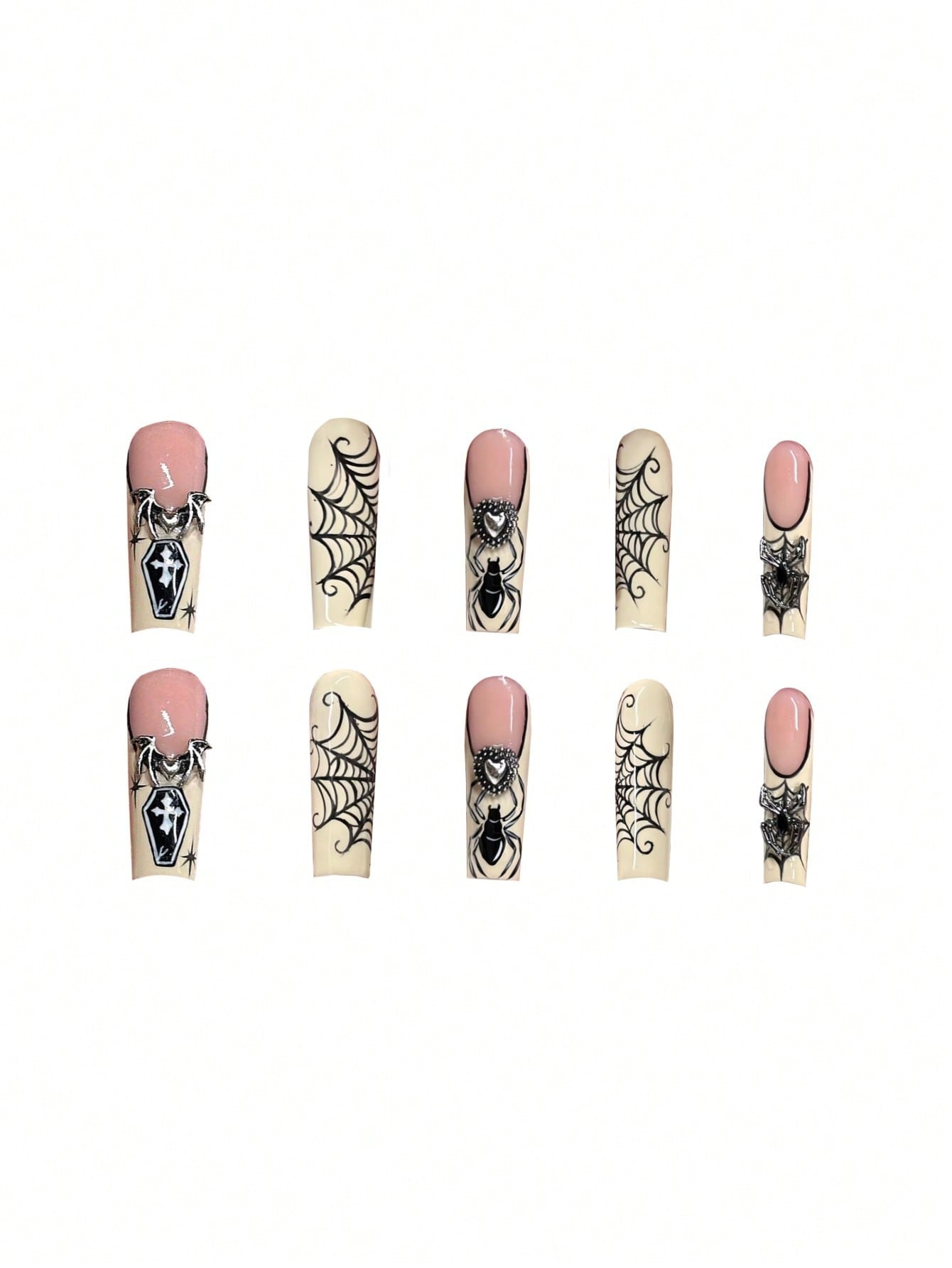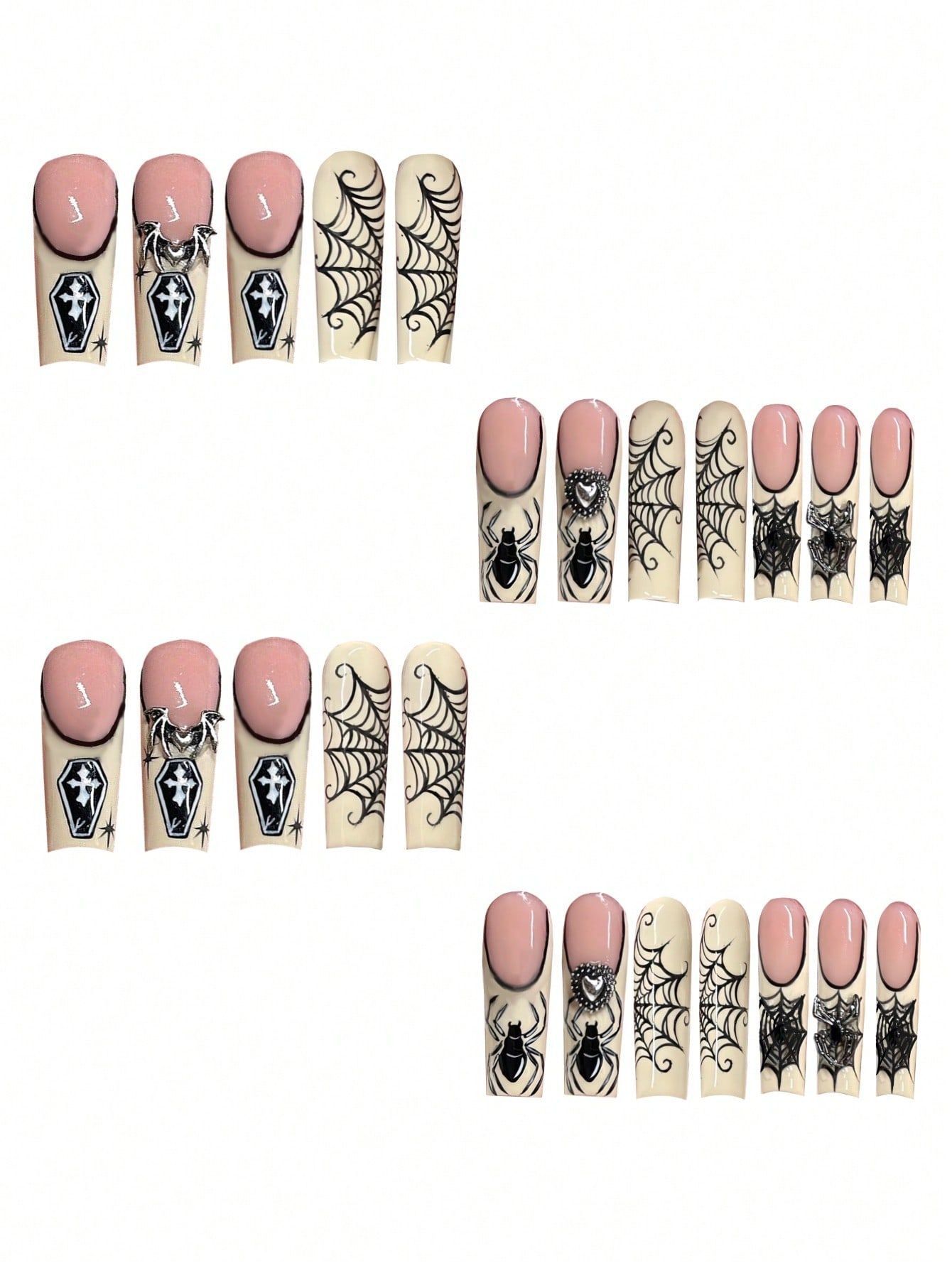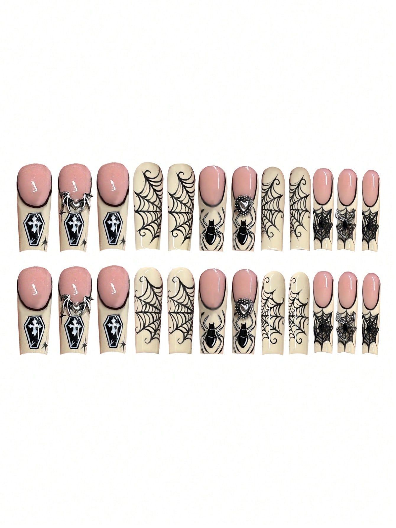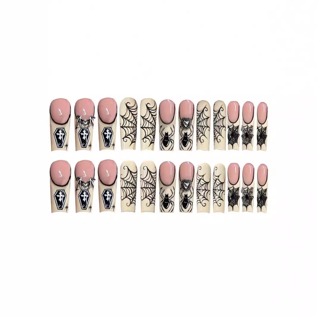 跨境热售长水滴甲甜酷蜘蛛网爆闪爱心穿戴甲可拆卸假指甲成品批发