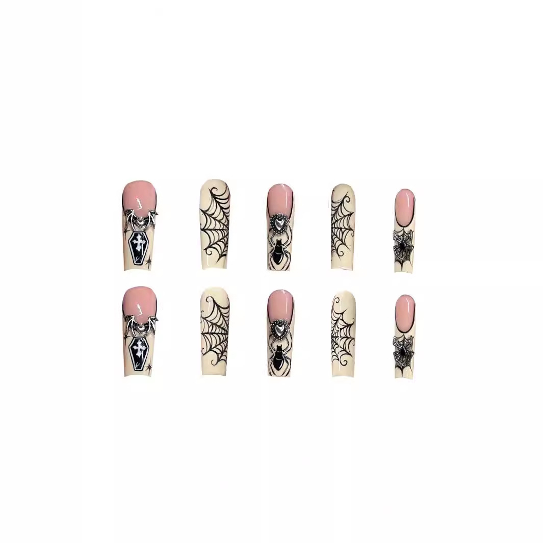 跨境热售长水滴甲甜酷蜘蛛网爆闪爱心穿戴甲可拆卸假指甲成品批发 English | 投诉