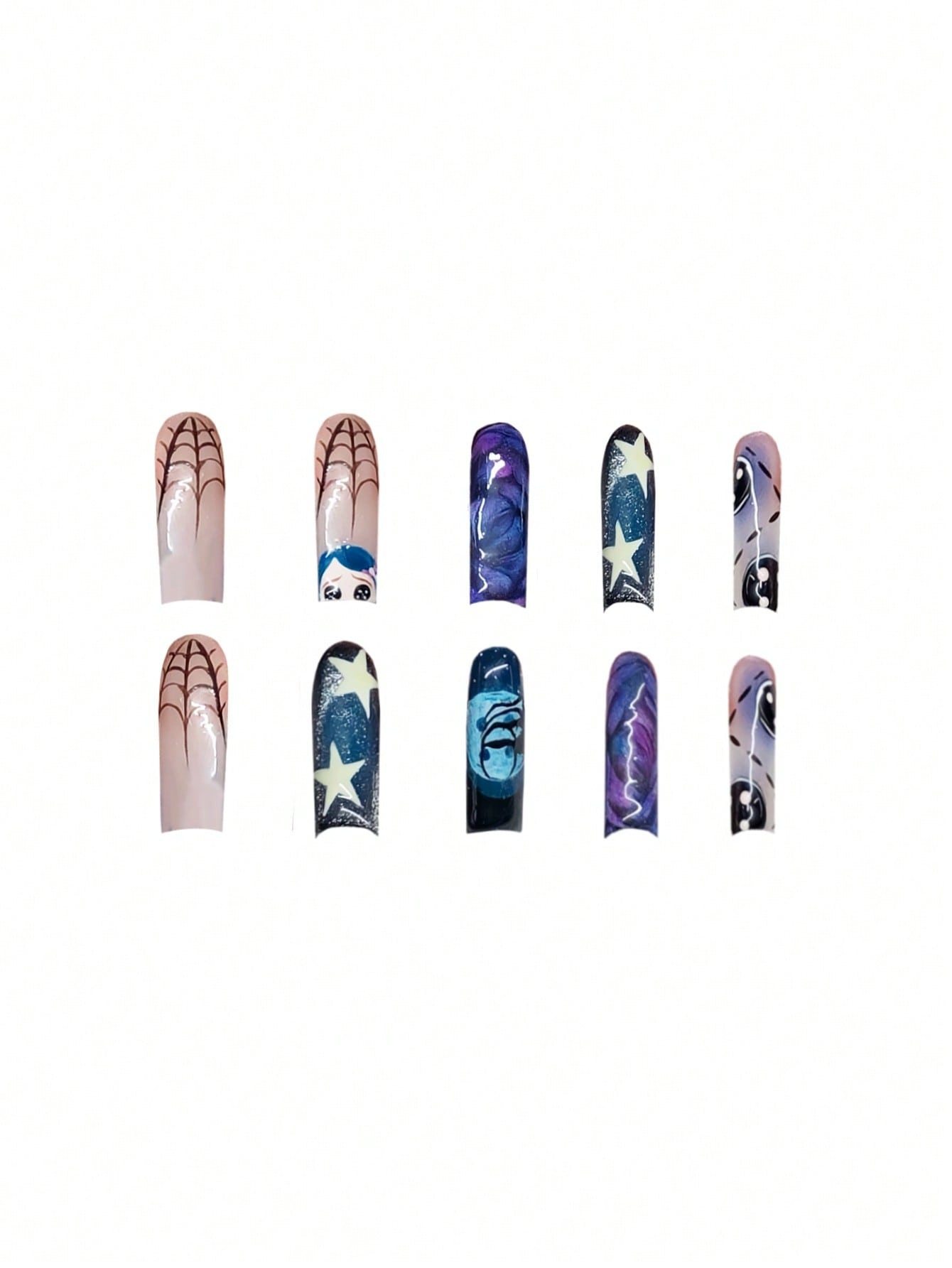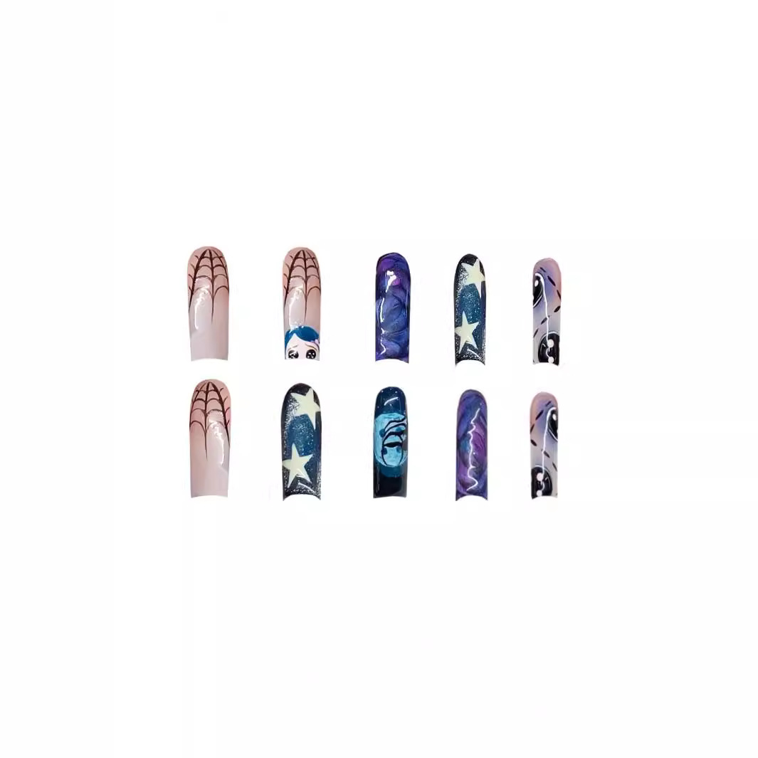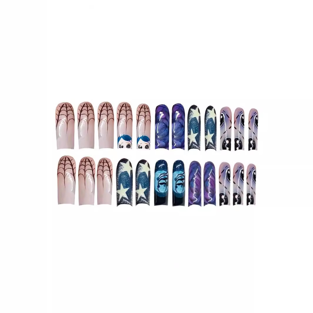 跨境热售时尚万圣节系列甜酷星星涂鸦穿戴甲可拆卸假指甲成品批发