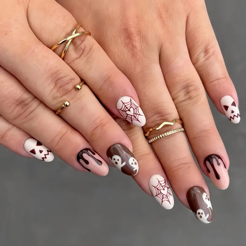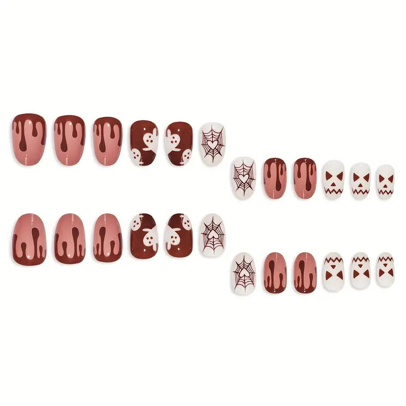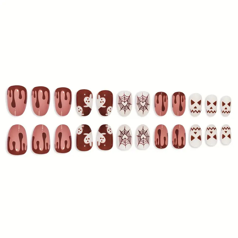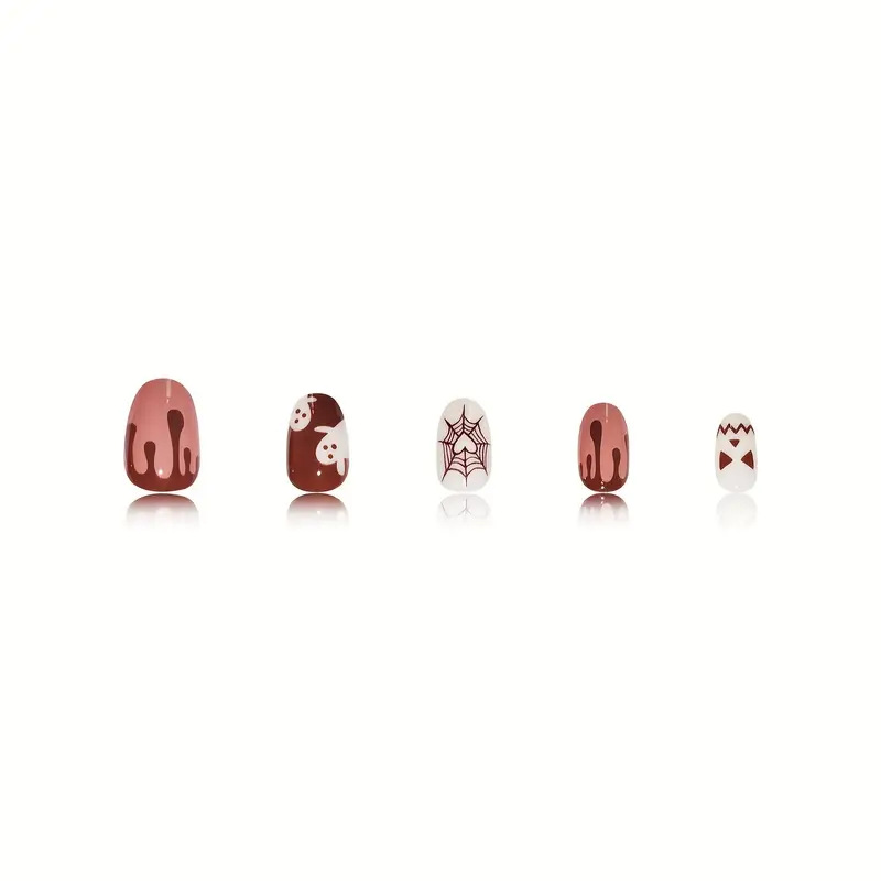 跨境热售时尚杏仁甲万圣节系列小鬼穿戴甲可拆卸假指甲成品批发