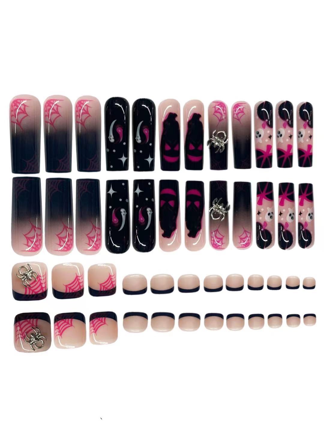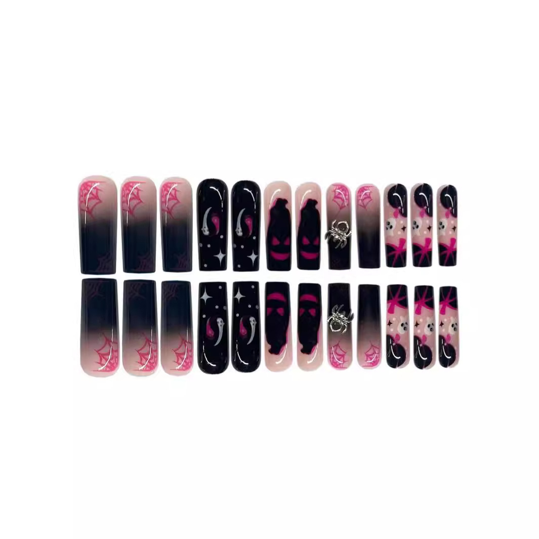 跨境热售万圣节款炫酷蜘蛛黑色小幽灵穿戴甲可拆卸假指甲成品批发
