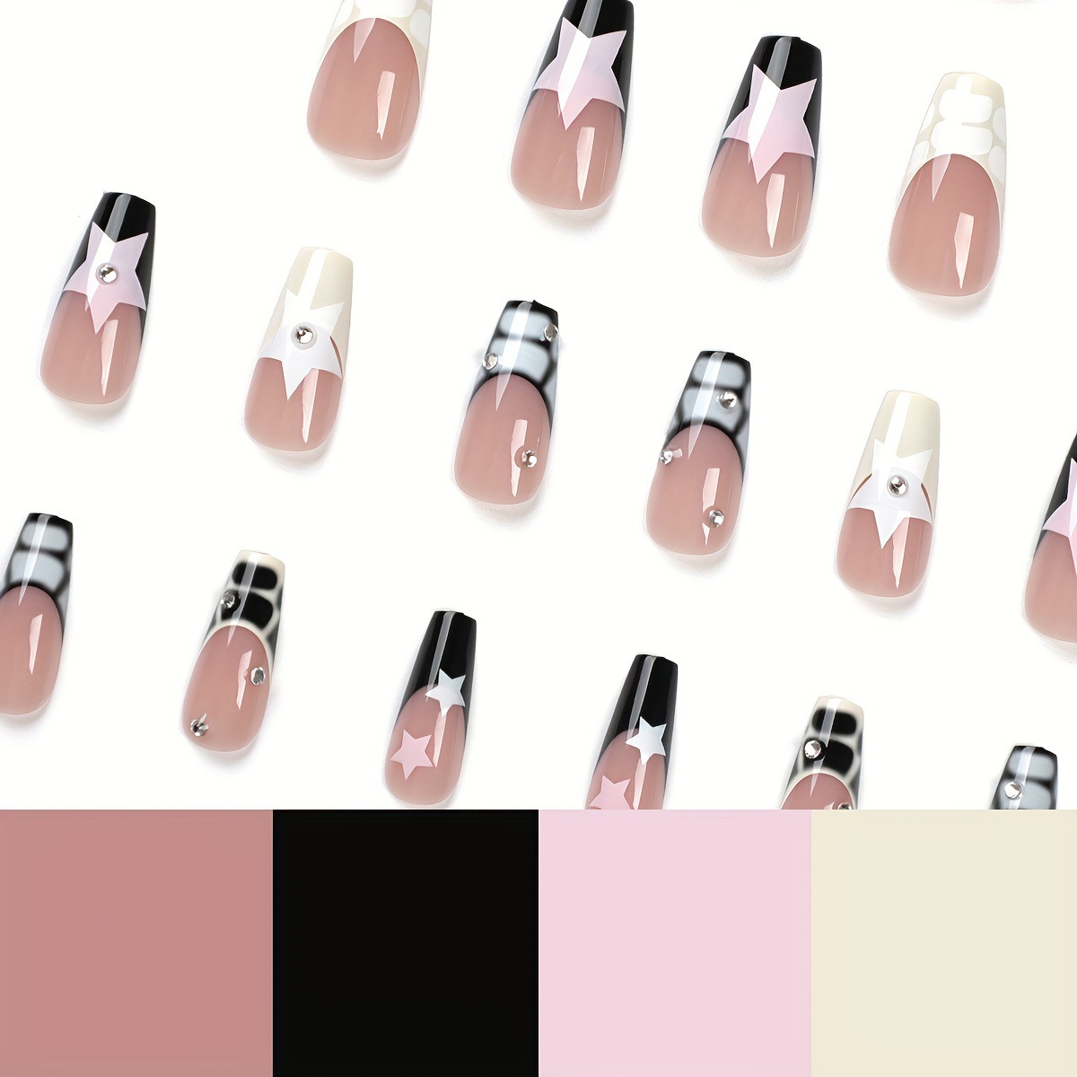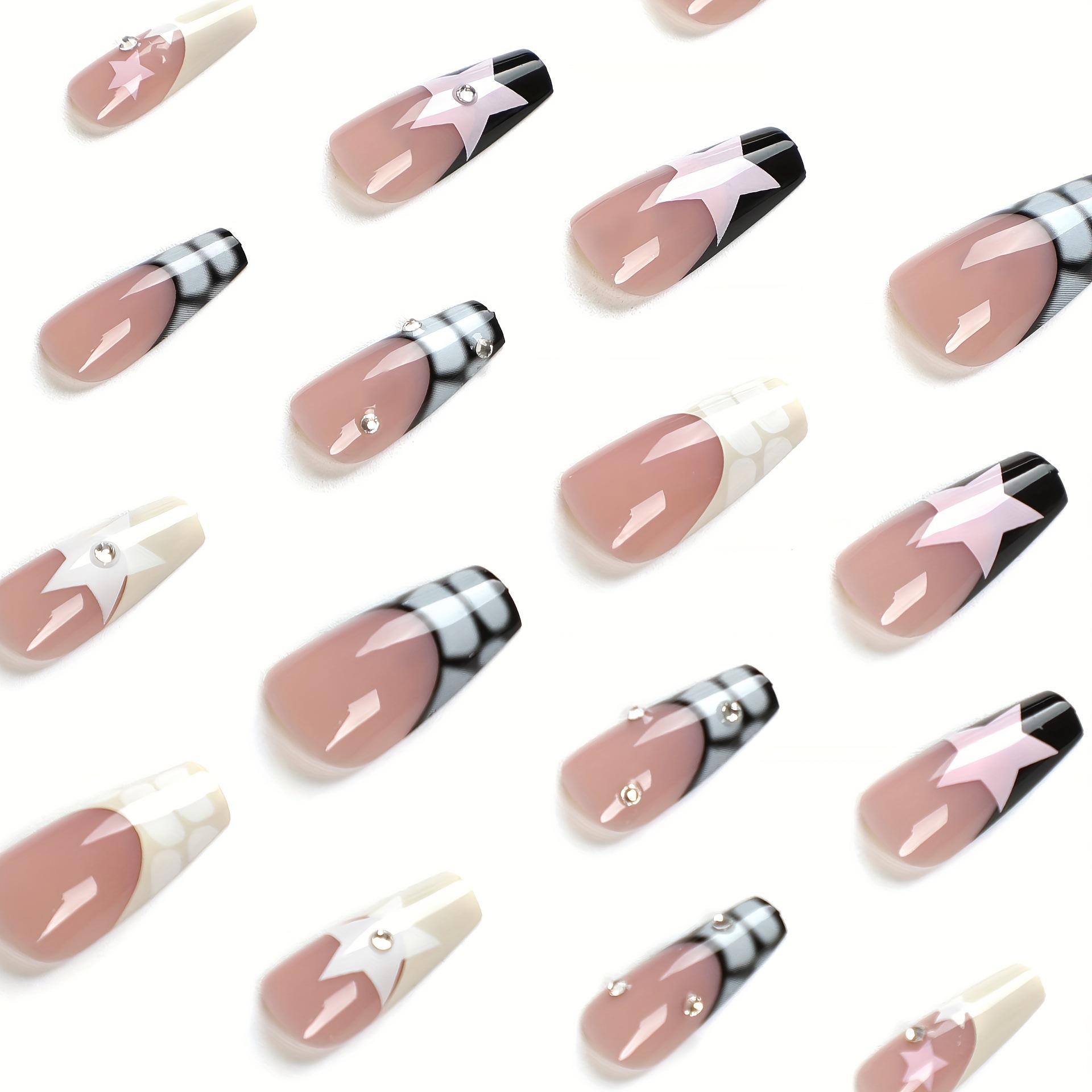 跨境热售大理石纹甜美可爱星星爆闪穿戴甲可拆卸假指甲成品批发 English | 投诉