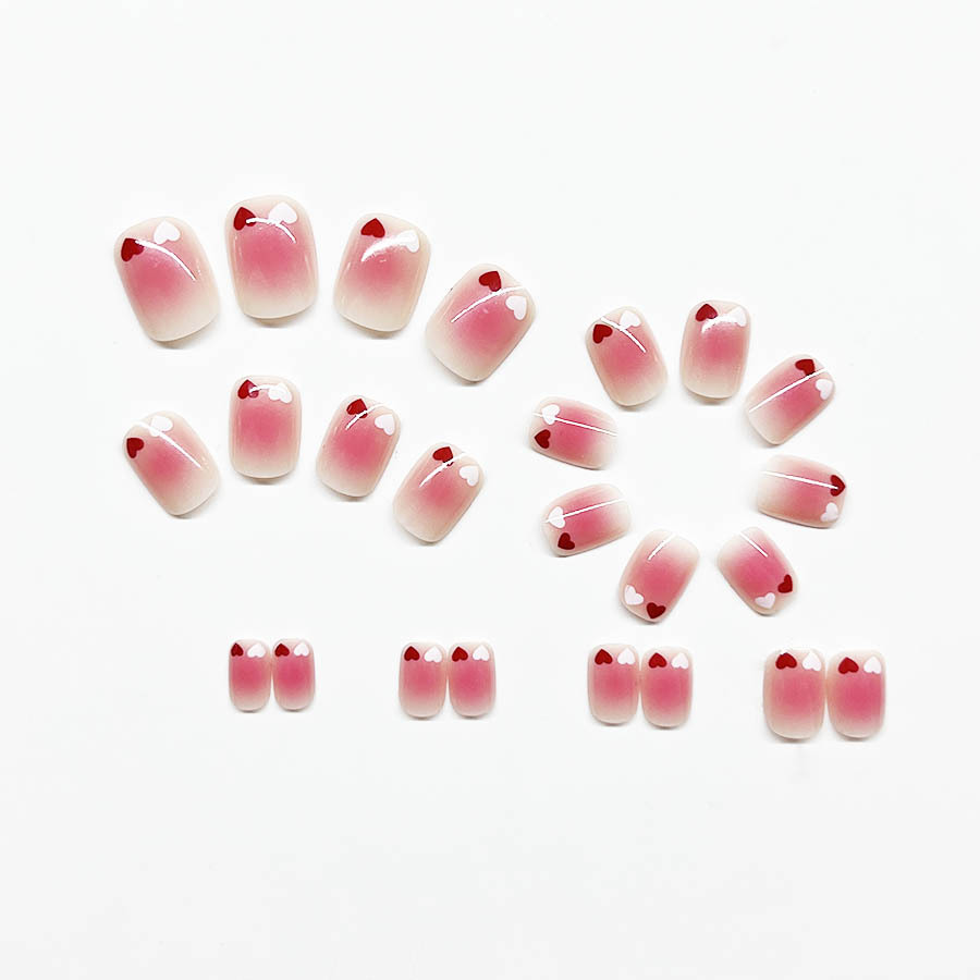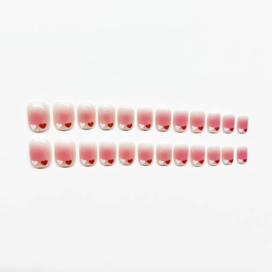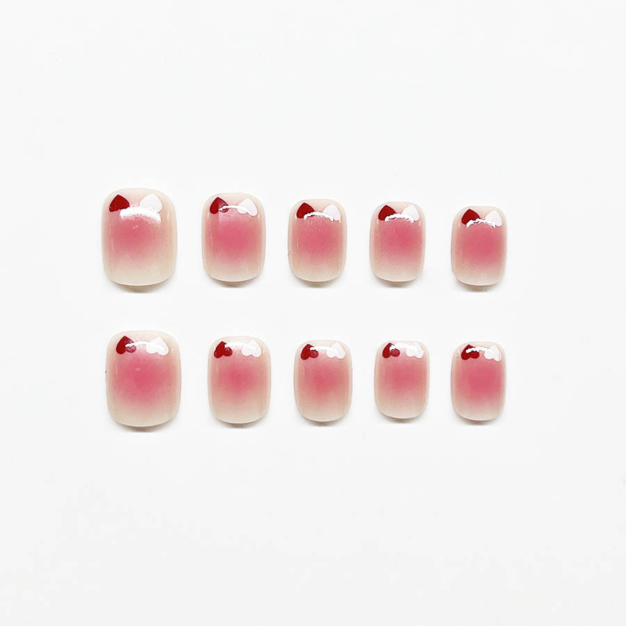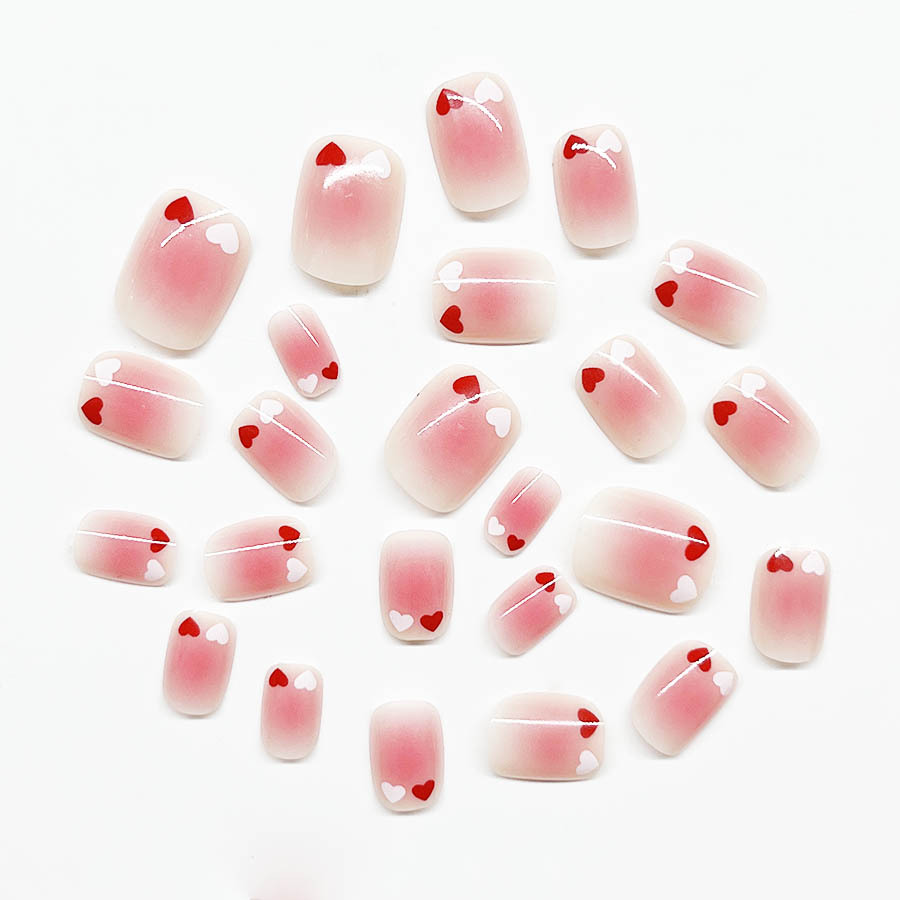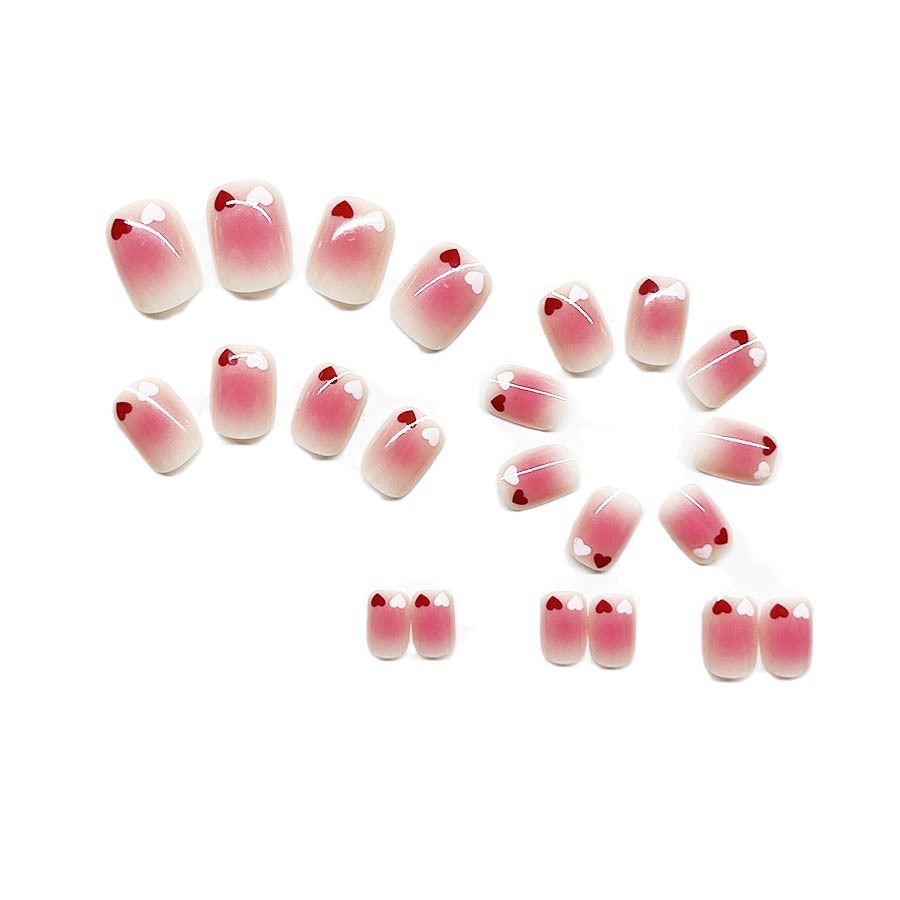 跨境热售经典短方形穿戴甲纯欲爱心穿戴甲可拆卸假指甲成品批发
