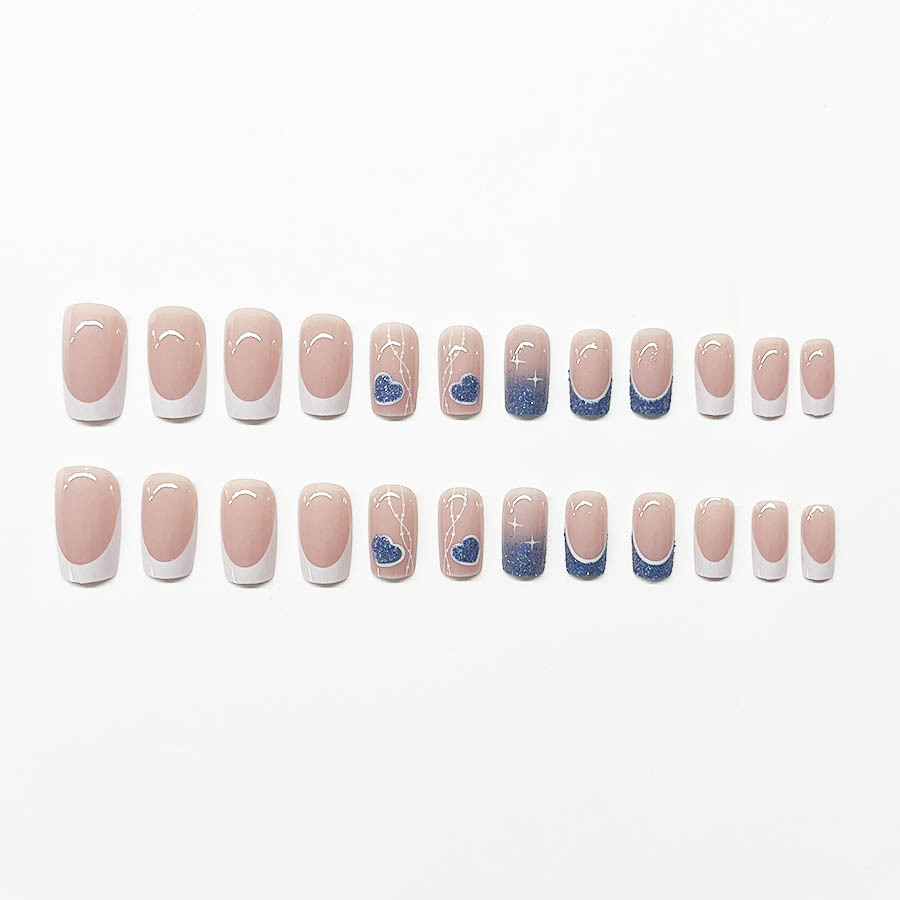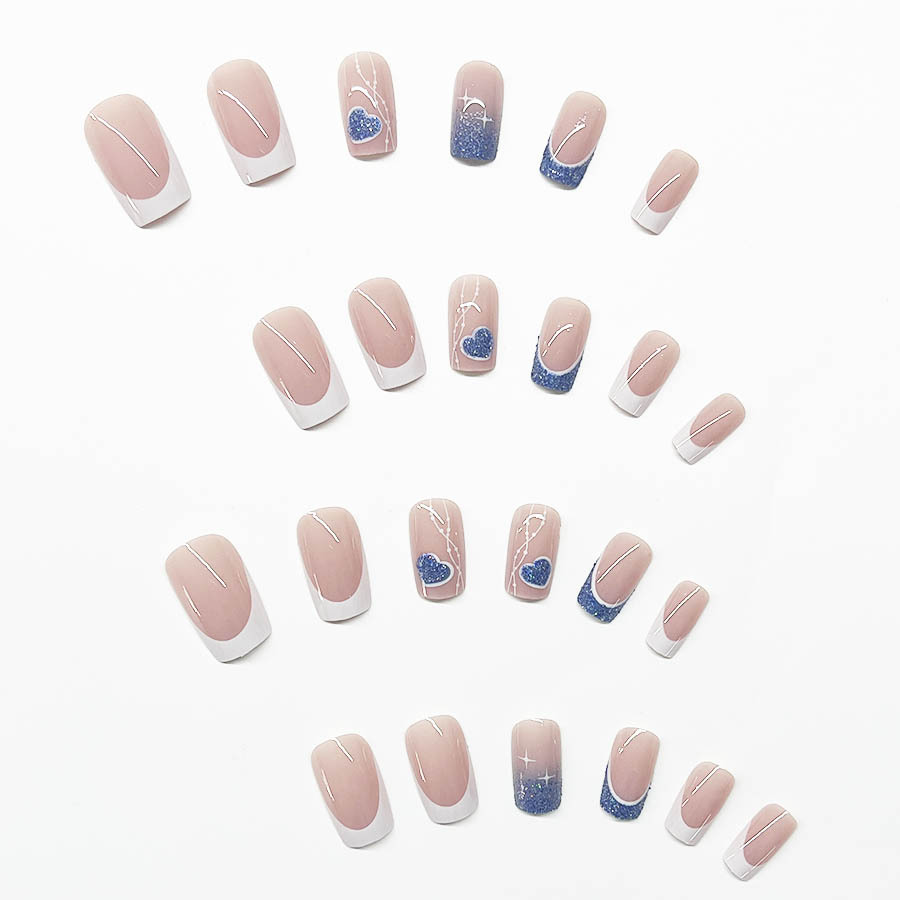 跨境热售经典白边法式甜酷爱心纯色穿戴甲可拆卸假指甲成品批发