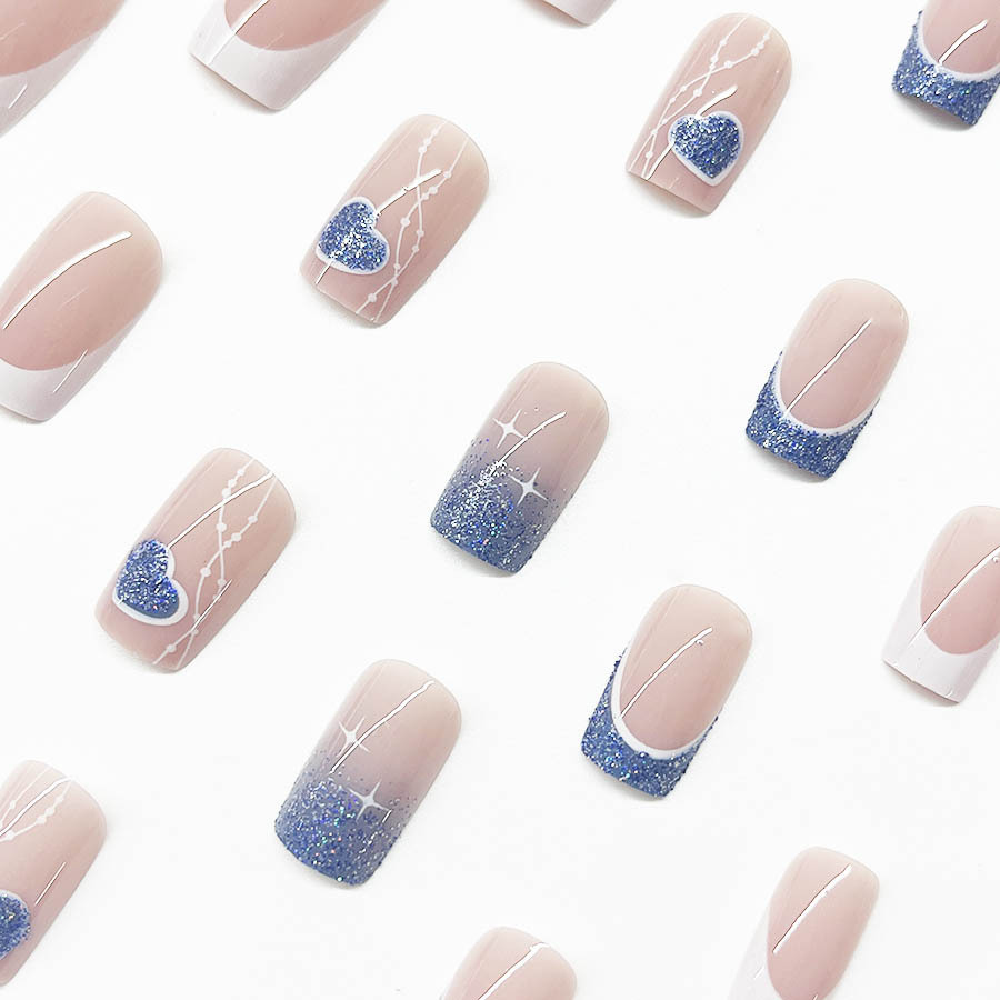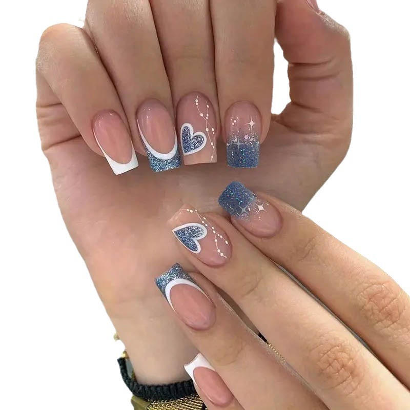 跨境热售经典白边法式甜酷爱心纯色穿戴甲可拆卸假指甲成品批发 English | 投诉