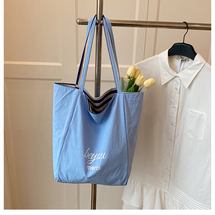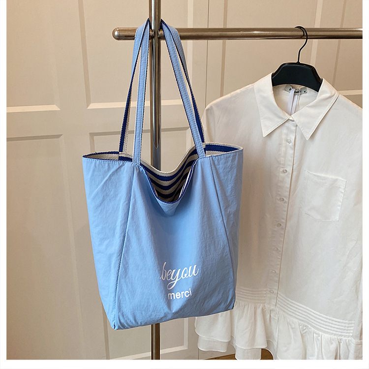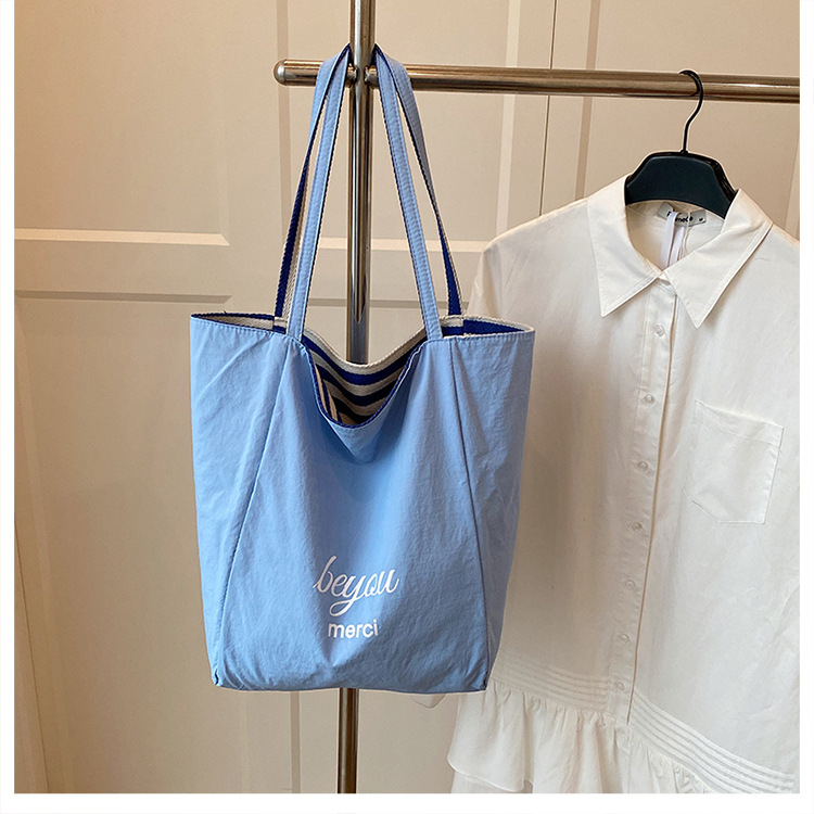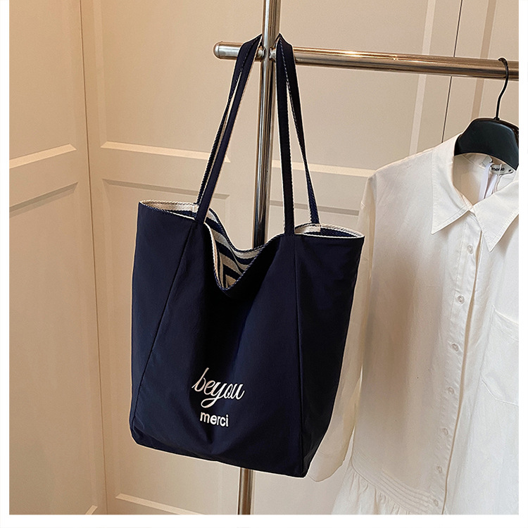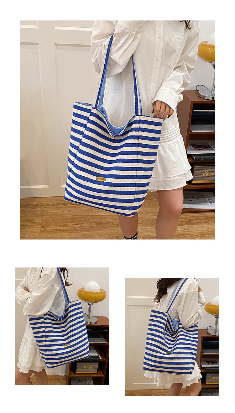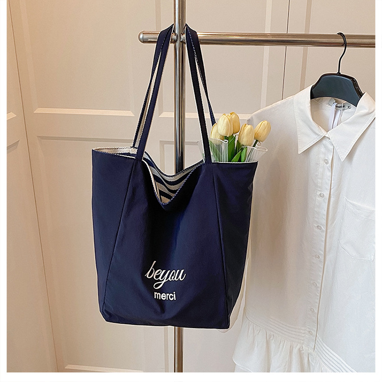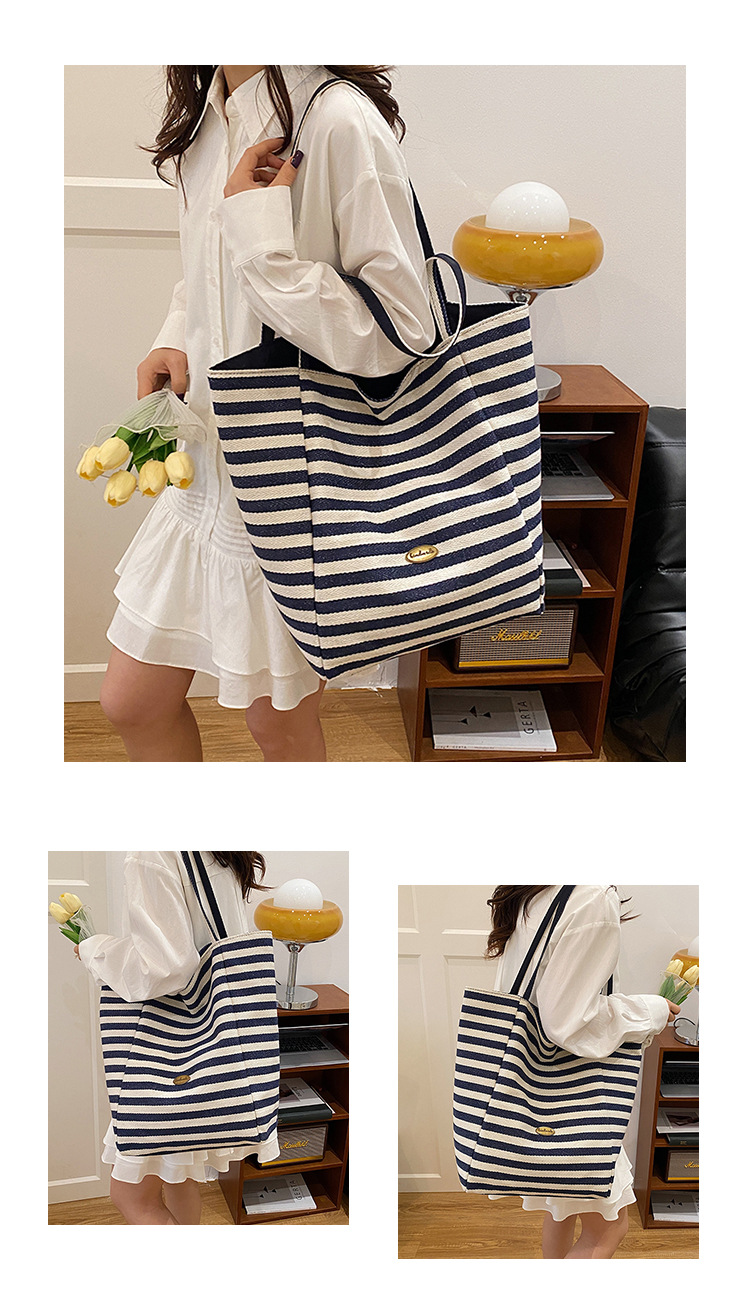 条纹帆布双面可用包新款慵懒风托特包休闲单肩大容量托特包购 English | 投诉