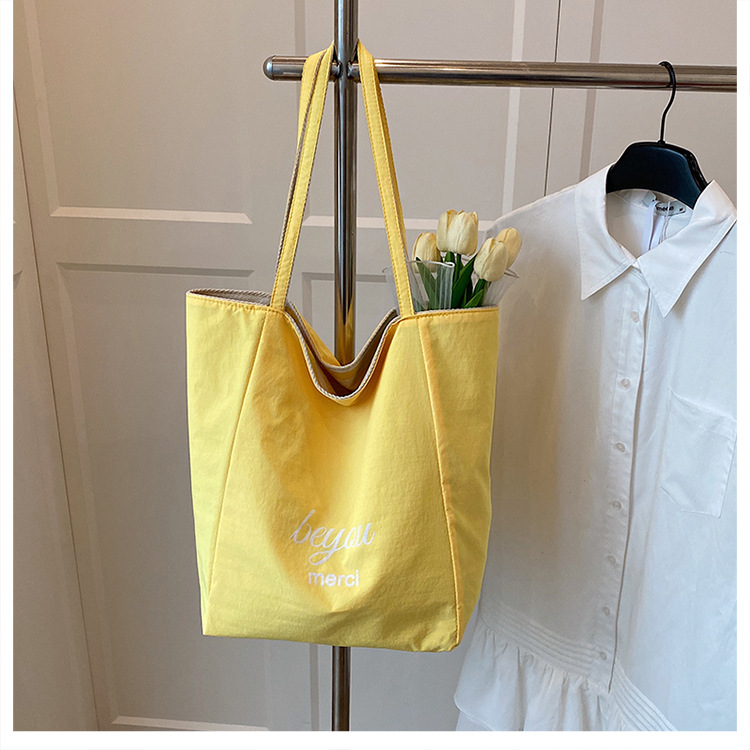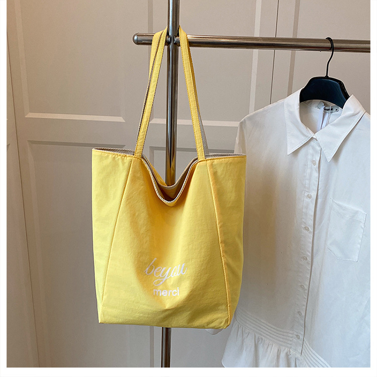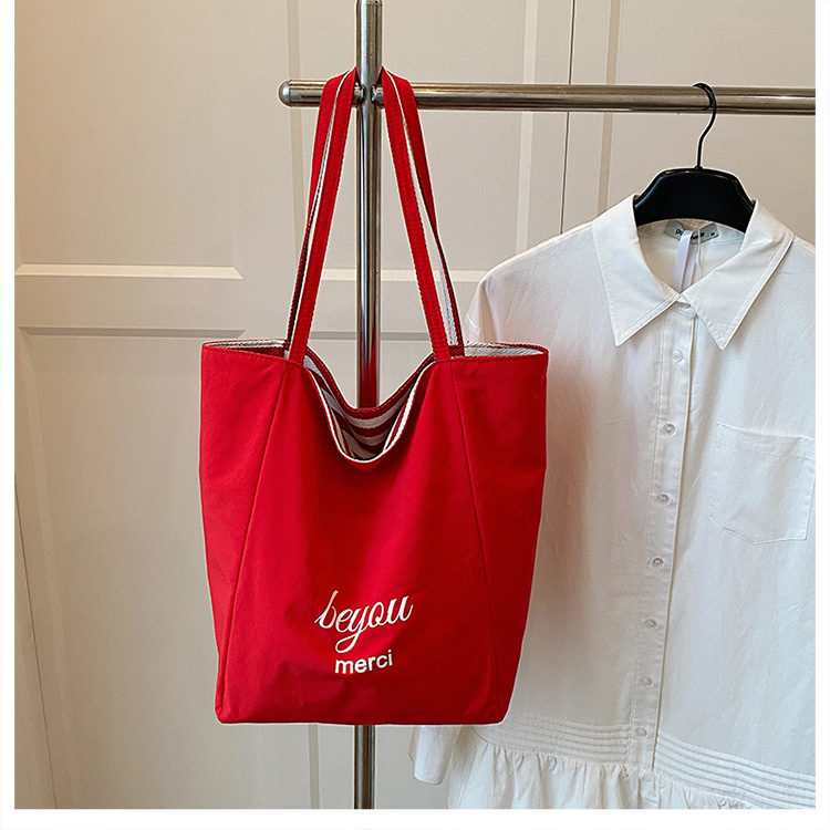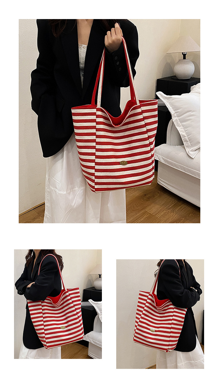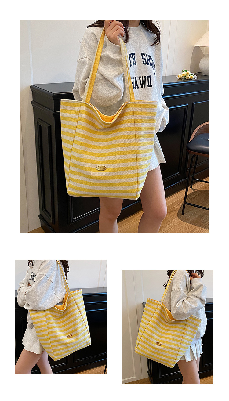 条纹帆布双面可用包新款慵懒风托特包休闲单肩大容量托特包购