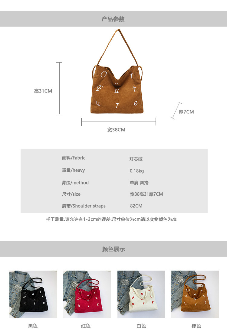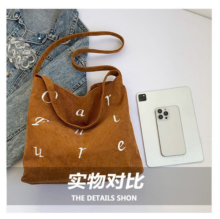 风格: 街头潮流 货号: 聚赢 7066 130 材质: 灯芯绒 箱包潮流款式: 托特包 箱包大小: 中 流行元素: 车缝线 上市年份季节: 2024年秋季 里料质地: 涤纶 箱包形状: 横款方型 开盖方式: 磁扣