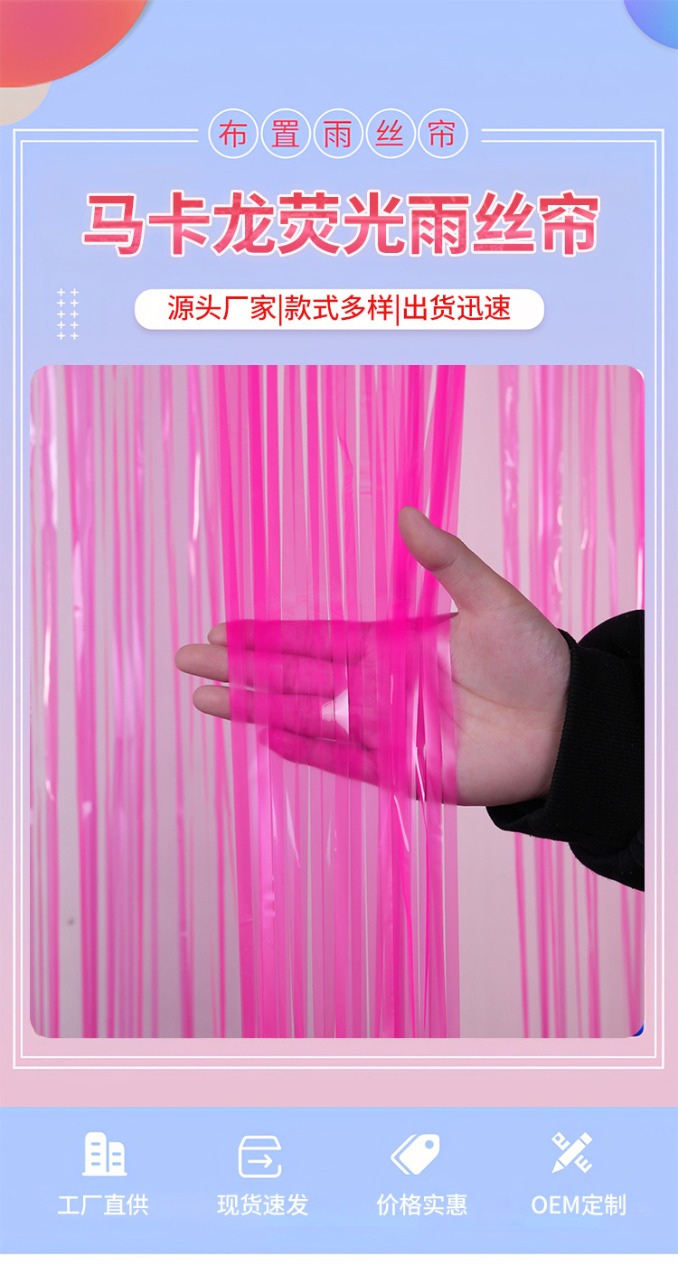 马卡龙荧光雨丝帘跨境派对装饰布置用品舞台背景装饰门帘厂家批发 English | 投诉