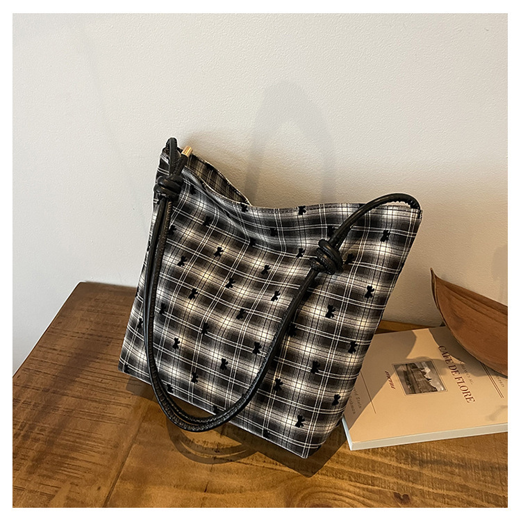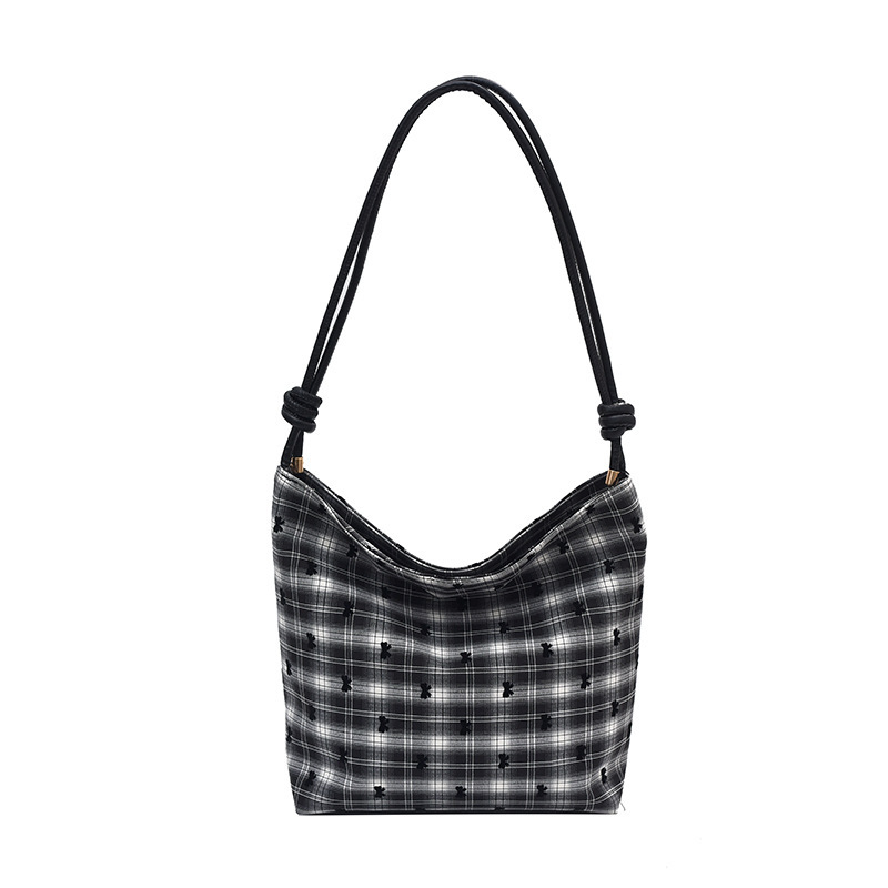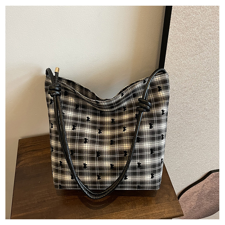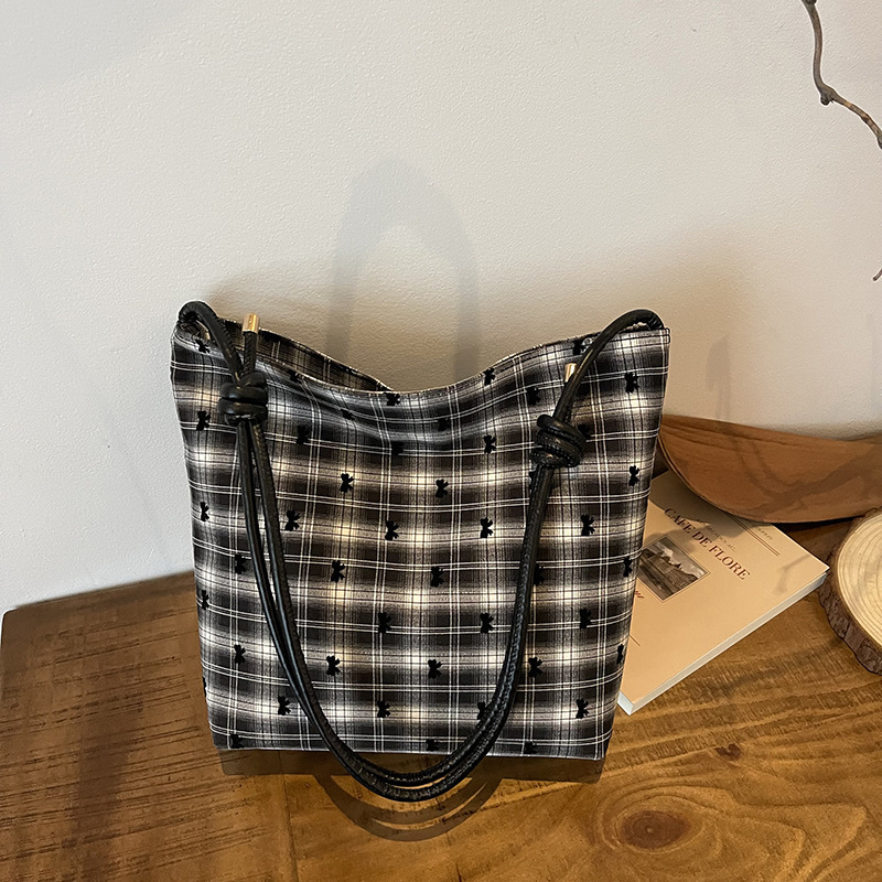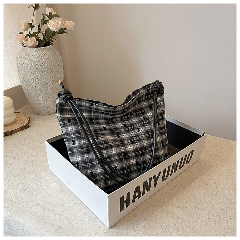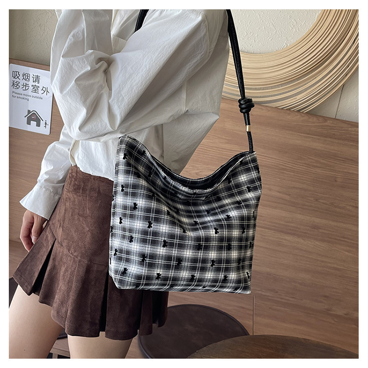 新款帆布波点印花女包蝴蝶格子大容量通勤时尚腋下托特单肩包