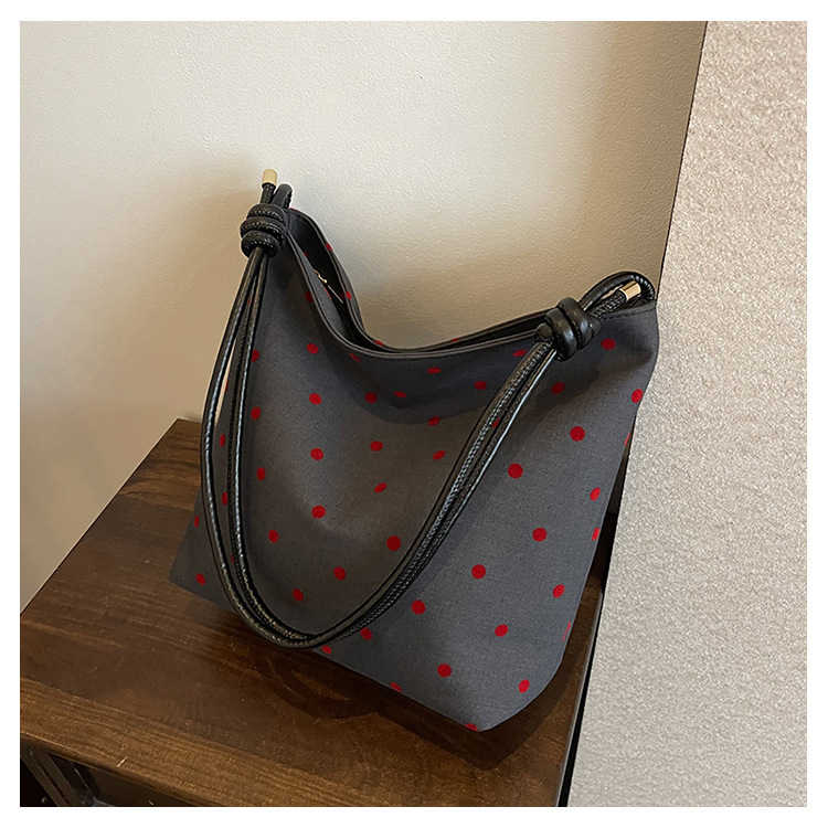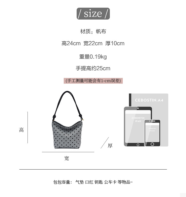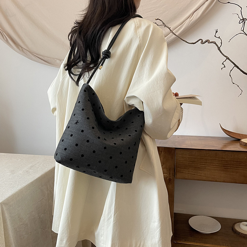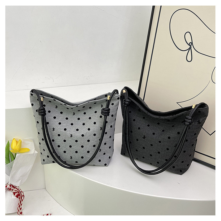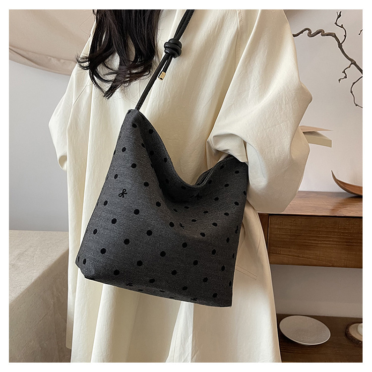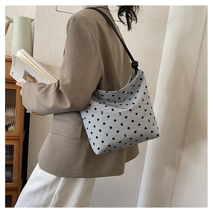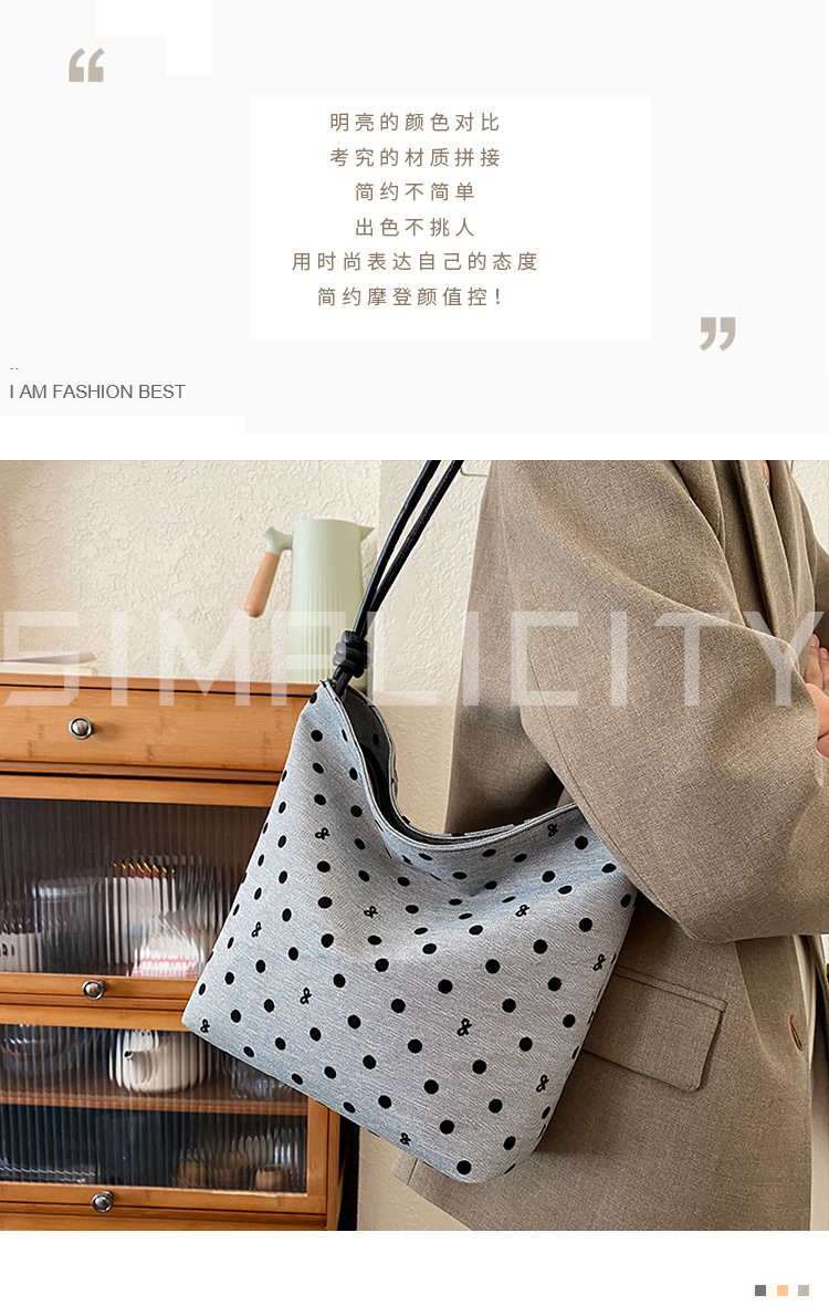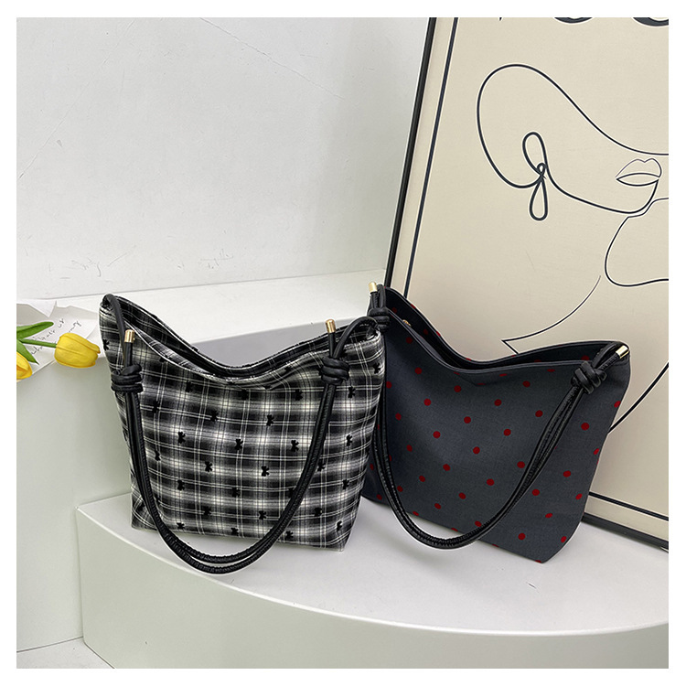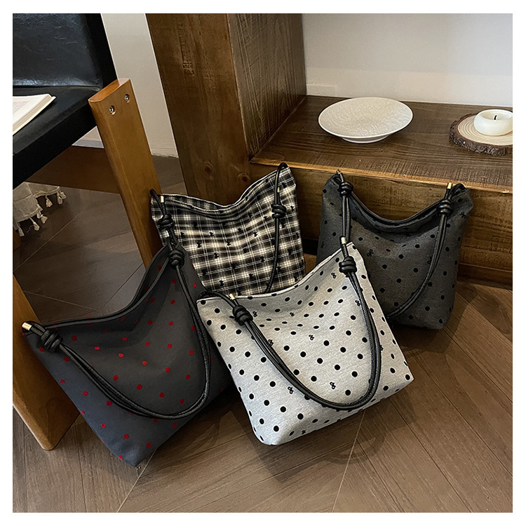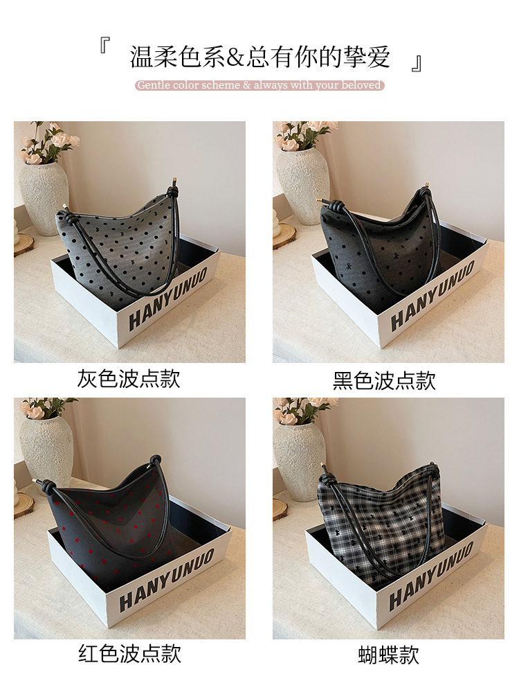 新款帆布波点印花女包蝴蝶格子大容量通勤时尚腋下托特单肩包 English | 投诉
